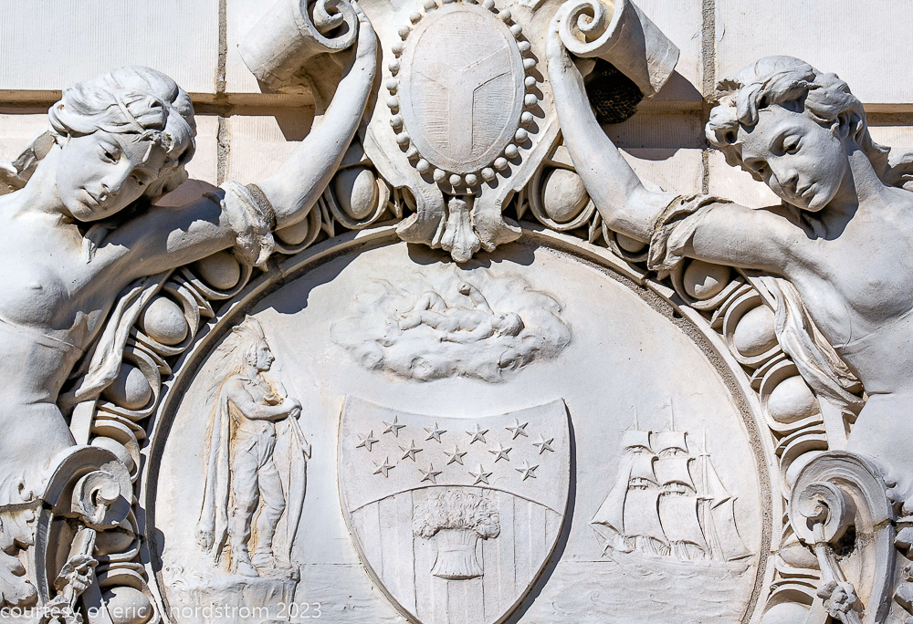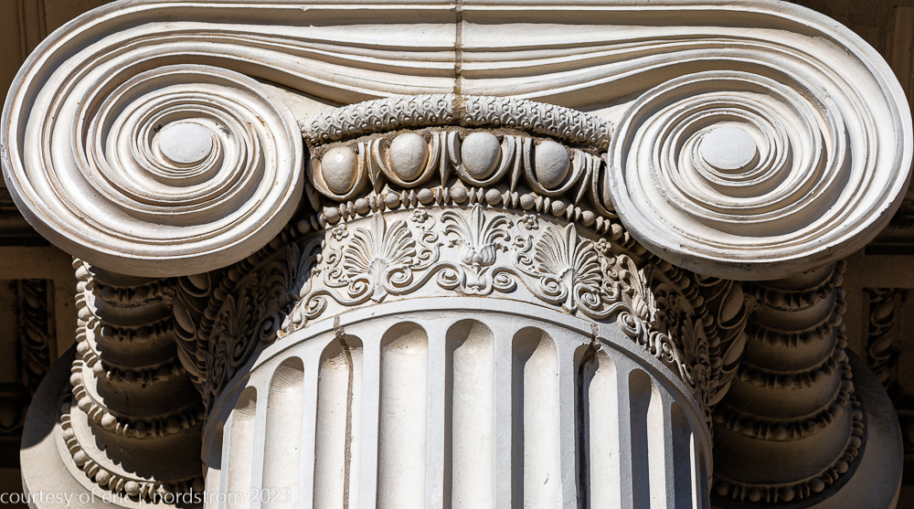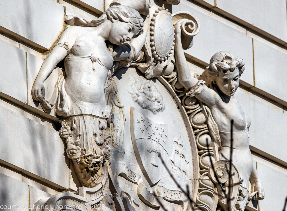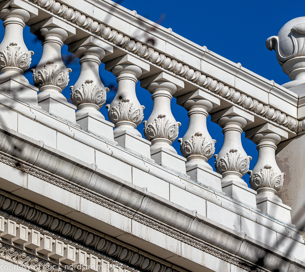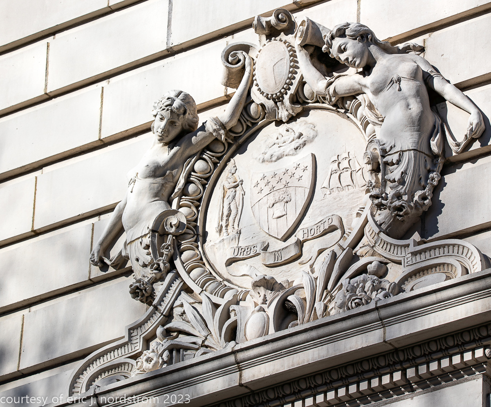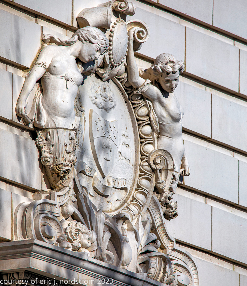series of detailed images of robert bruce watson’s white glazed terra cotta ornament on the imposing 1897 central park avenue pumping station, located on the west side of chicago, ills.