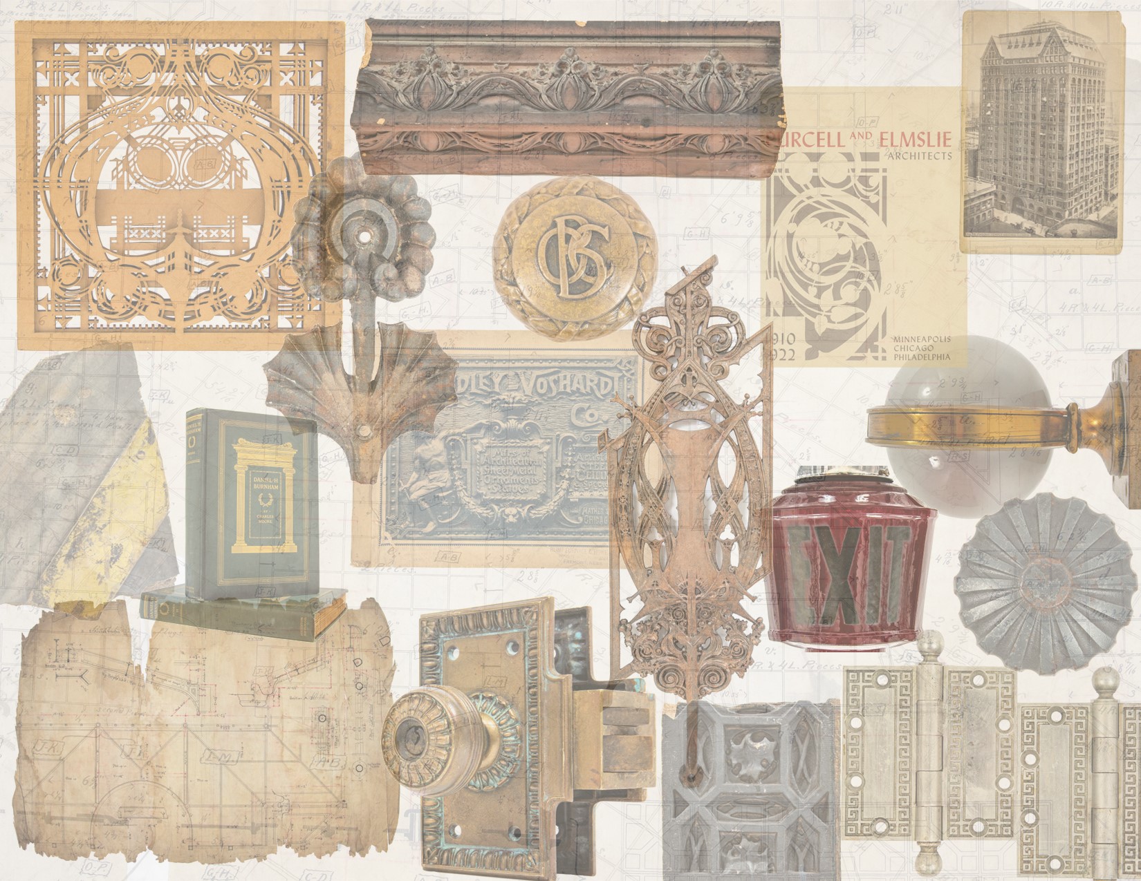 ROOKERY BUILDING BLUEPRINTS, RARE BOOKS, ORNAMENTAL TERRA COTTA, BUILDERS’ HARDWARE, AND PLYMOUTH BUILDING ARTIFACTS ADDED IN JANUARY 2023