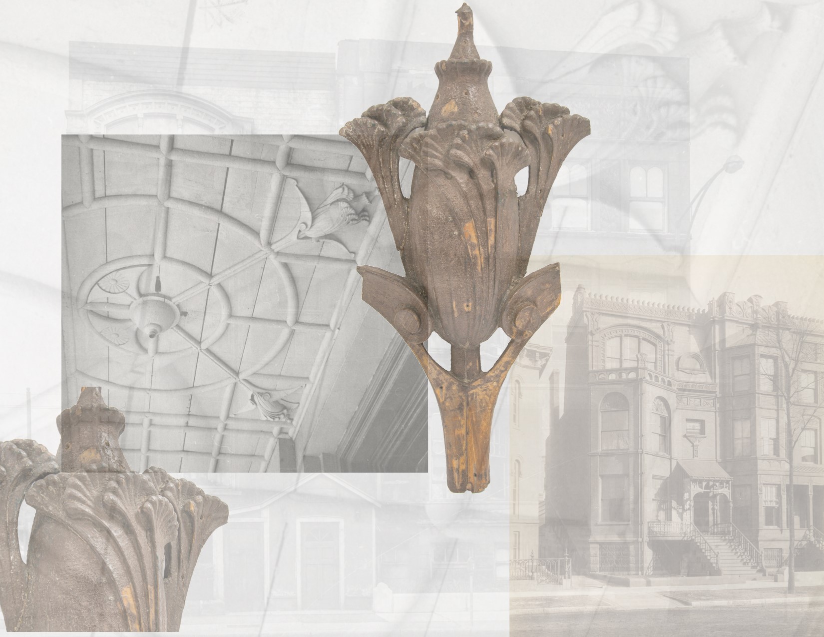 BLDG. 51 MUSEUM ACQUIRES HISTORIALLY IMPORTANT MECCA FLATS INTERIOR CAST IRON STAIRCASE BALUSTRADE AND NEWEL POST FINIAL ENDCAP