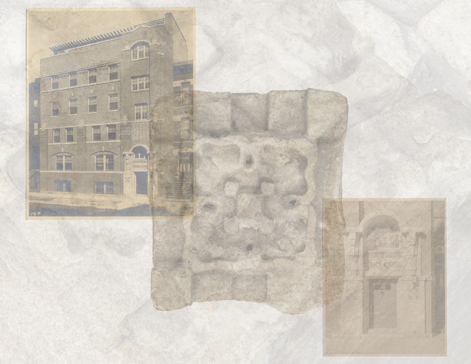 HISTORICALLY IMPORTANT CARVED SANDSTONE BLOCK FROM POND AND POND’S HOME FOR SELF-SUPPORTING WOMEN JOINS BLDG. 51 MUSEUM