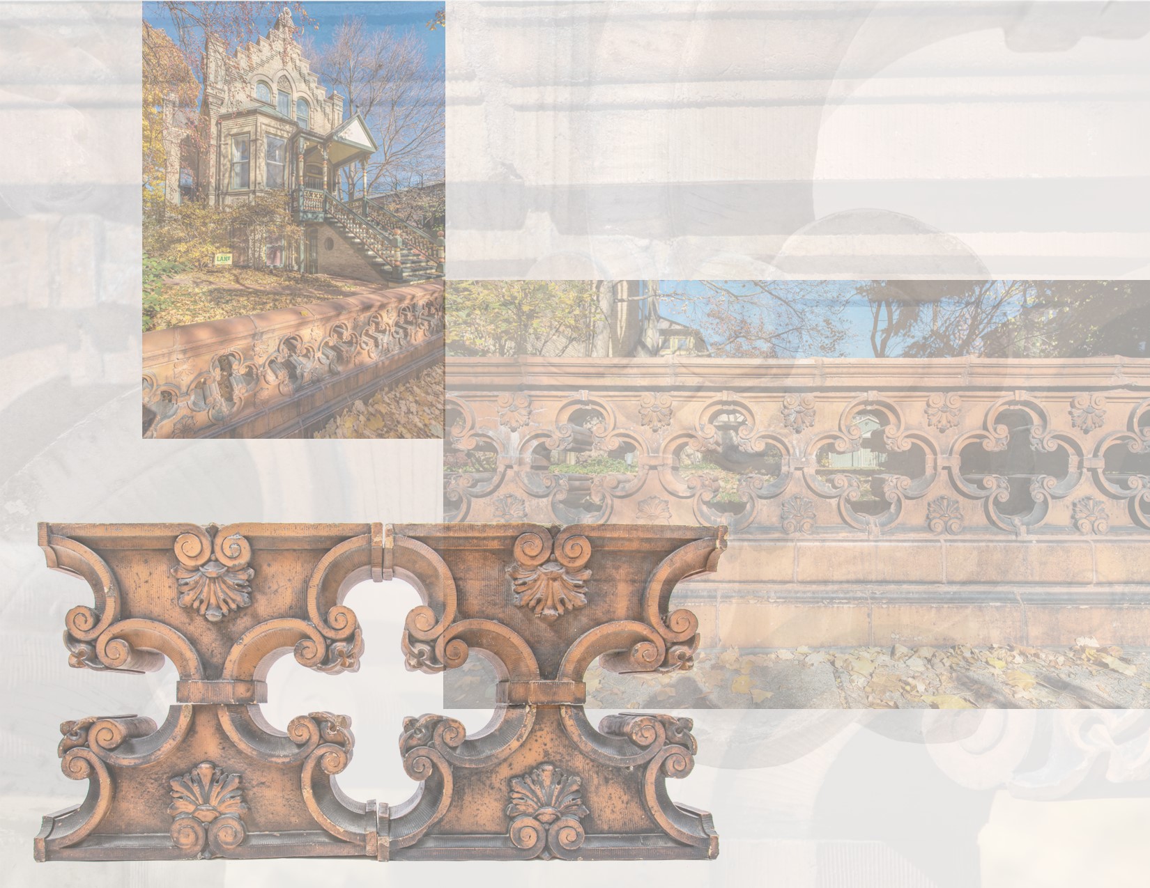 HISTORICALLY IMPORTANT GOTHIC STYLE EXTERIOR HENRY ROHKAM RESIDENCE TERRA COTTA FENCE SEGMENTS JOIN BLDG. 51 MUSEUM ARCHIVE
