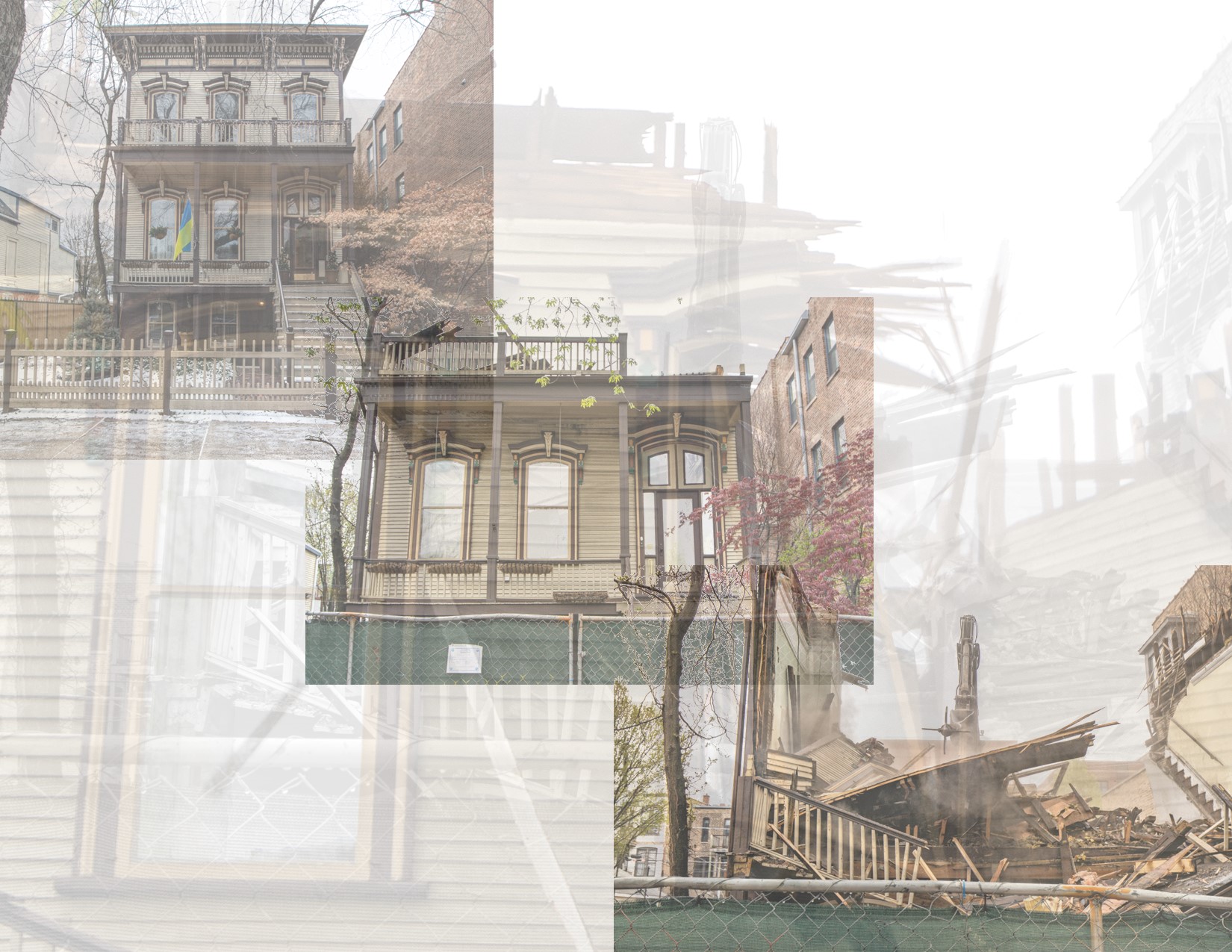 MID-1870S POST-CHICAGO FIRE ITALINATE STYLE WOOD-FRAMED HOUSE ON BURLING BROUGHT DOWN AFTER FAILED ATTEMPTS TO SAVE IT