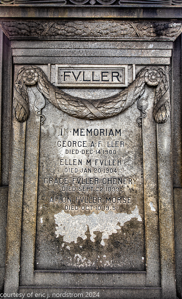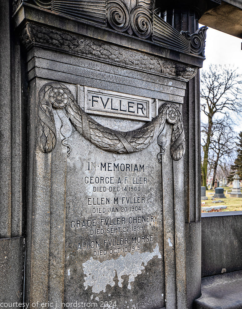 Fuller died suddenly on December 14, 1900, from amyotrophic lateral sclerosis, leaving an estate valued at $3 million. His tomb at Oak Woods Cemetery in Chicago, designed by New York architect Bruce Price, is one of the largest in the cemetery.