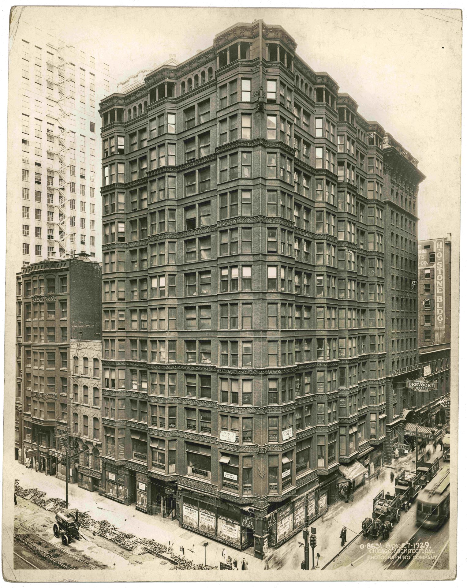 Fuller’s firm built the Tacoma Building in Chicago designed by Holabird & Roche and completed in 1889, which was the first skyscraper with non load bearing curtain walls. By using Bessemer steel beams, Fuller created steel cages that supported all the building’s weight.