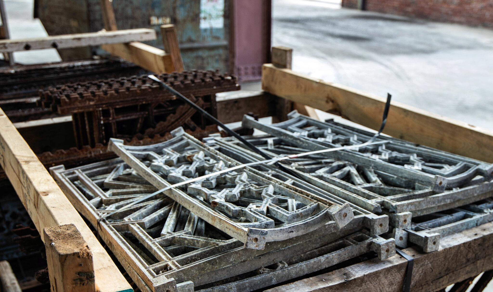 images of john wellborn root-designed combination bower-barff and copper-plated cast iron staircase removed from the adams street entrance of burnham and root’s rookery building (1888) in the 1990s (if i recall correctly).