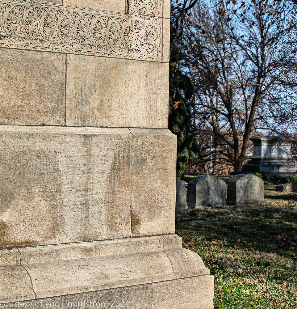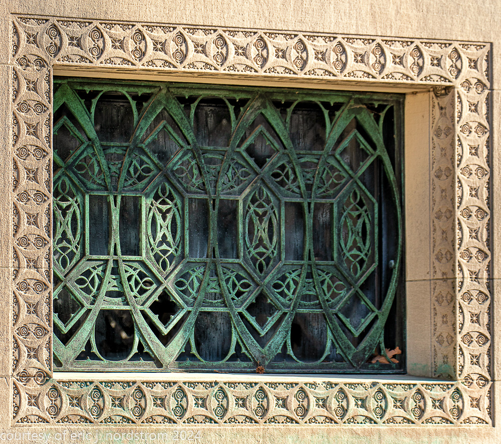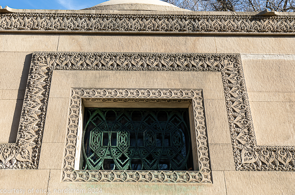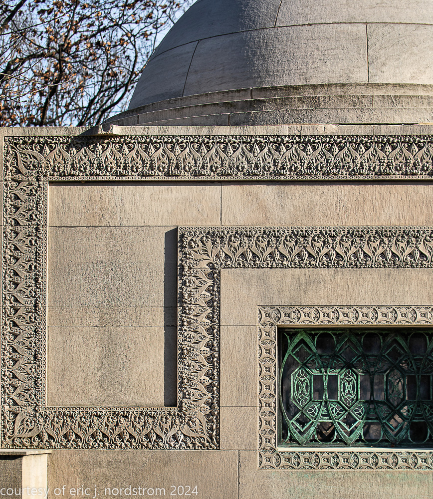 2024 photographic survey of adler & sullivan’s wainwright tomb, located in bellefontaine cemetery st. louis. the bedford limestone and bronze etom was originally constructed for charlotte dickson wainwright, the wife of ellis wainwright, who’s building was designed by the same firm a year before the tomb was completed in 1892.