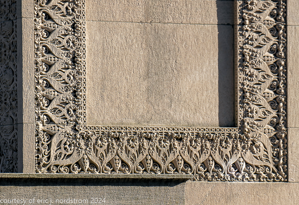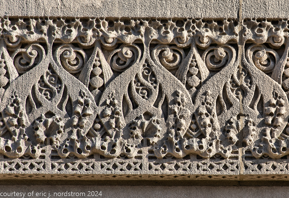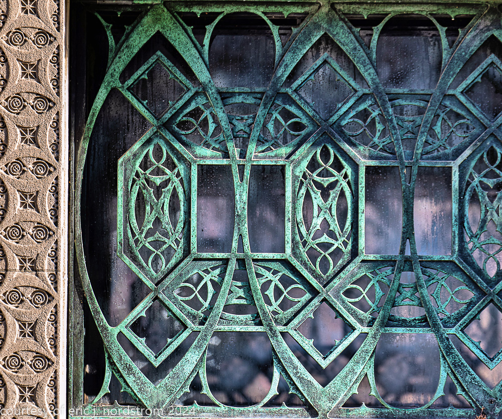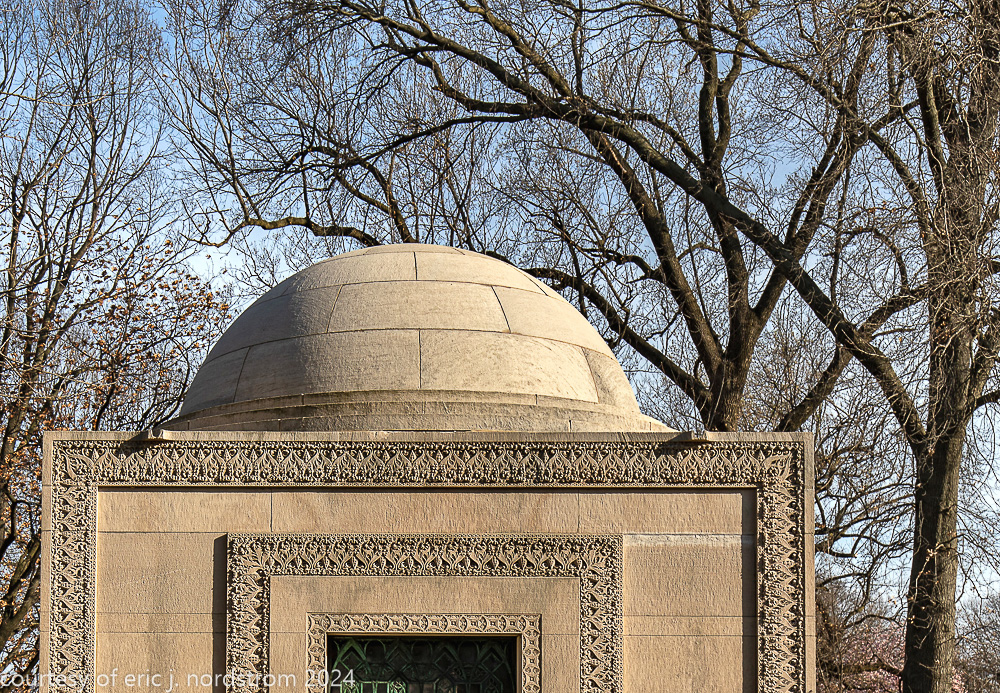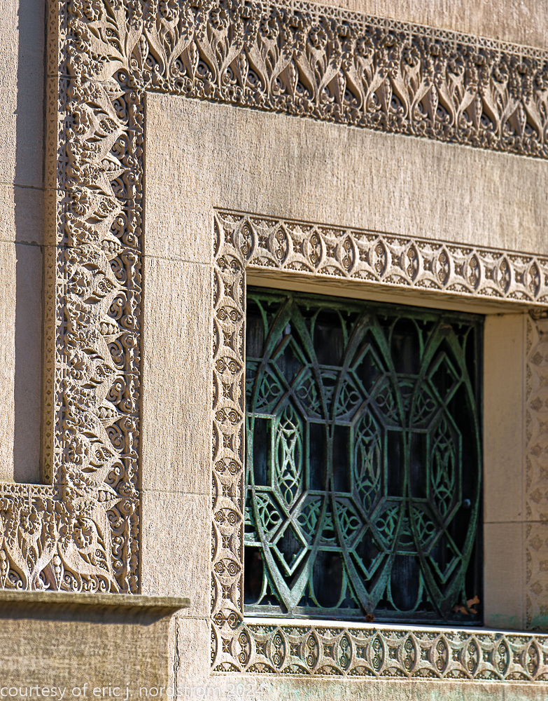 2024 photographic survey of adler & sullivan’s wainwright tomb, located in bellefontaine cemetery st. louis. the bedford limestone and bronze etom was originally constructed for charlotte dickson wainwright, the wife of ellis wainwright, who’s building was designed by the same firm a year before the tomb was completed in 1892.