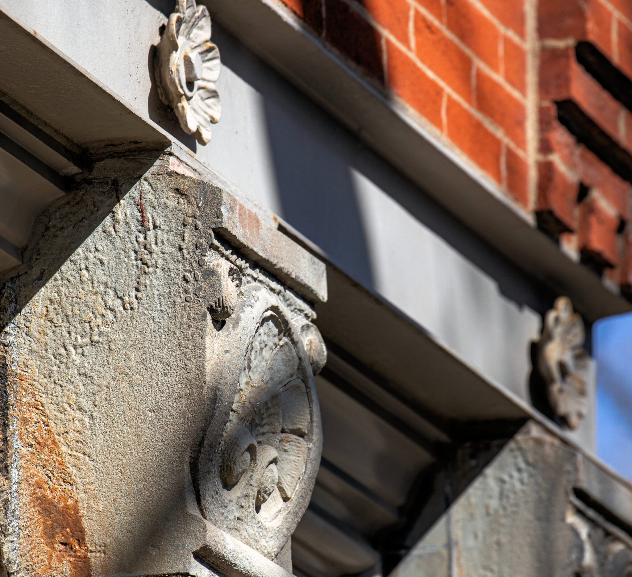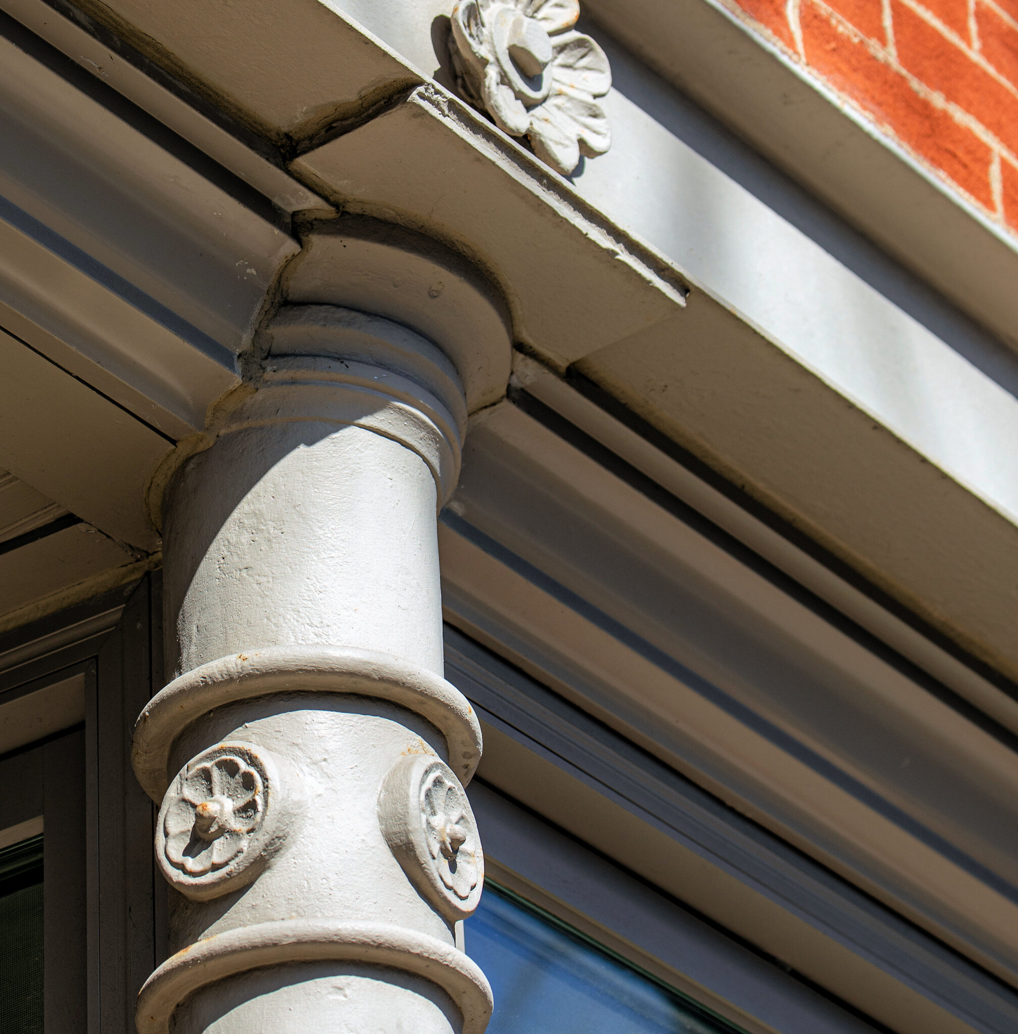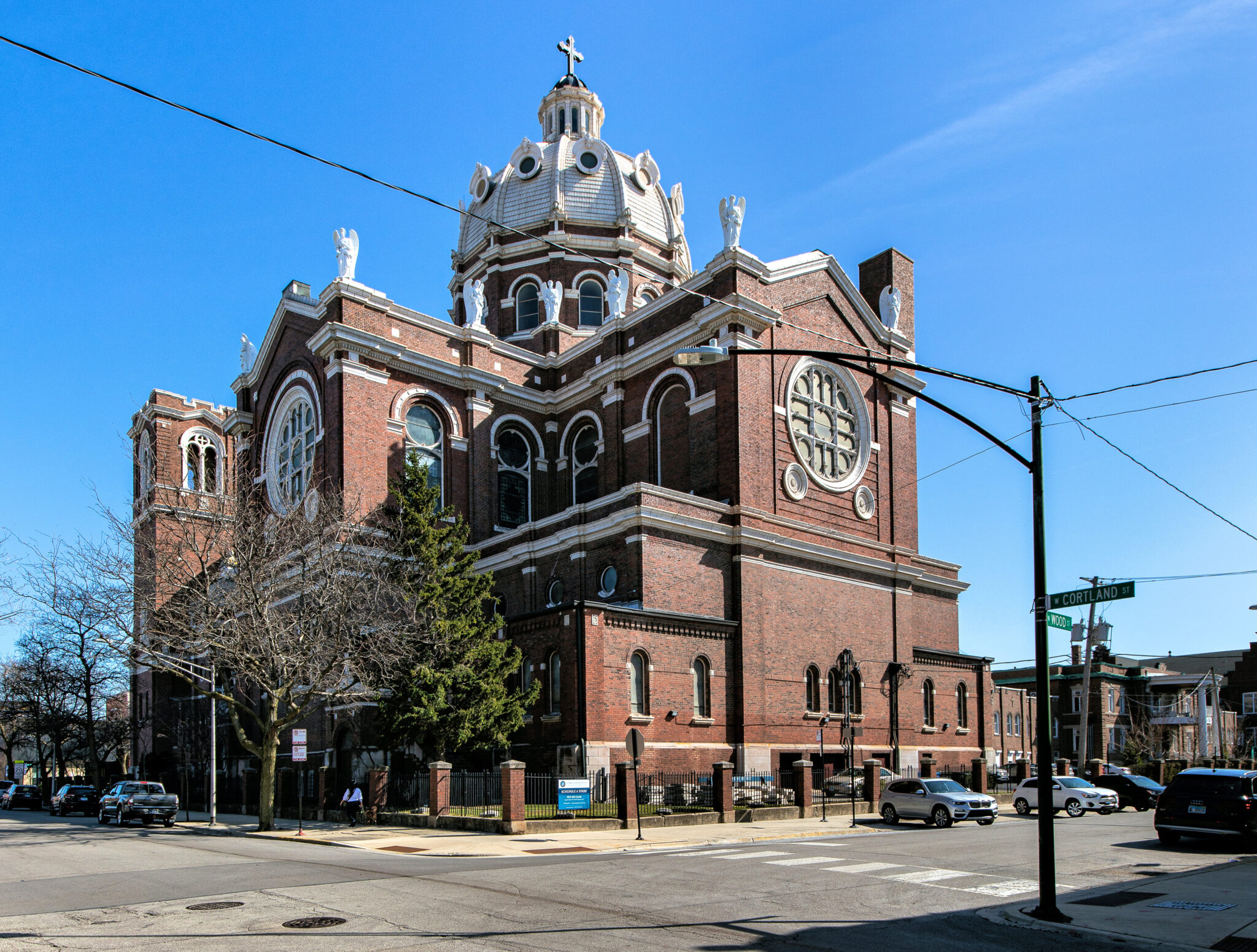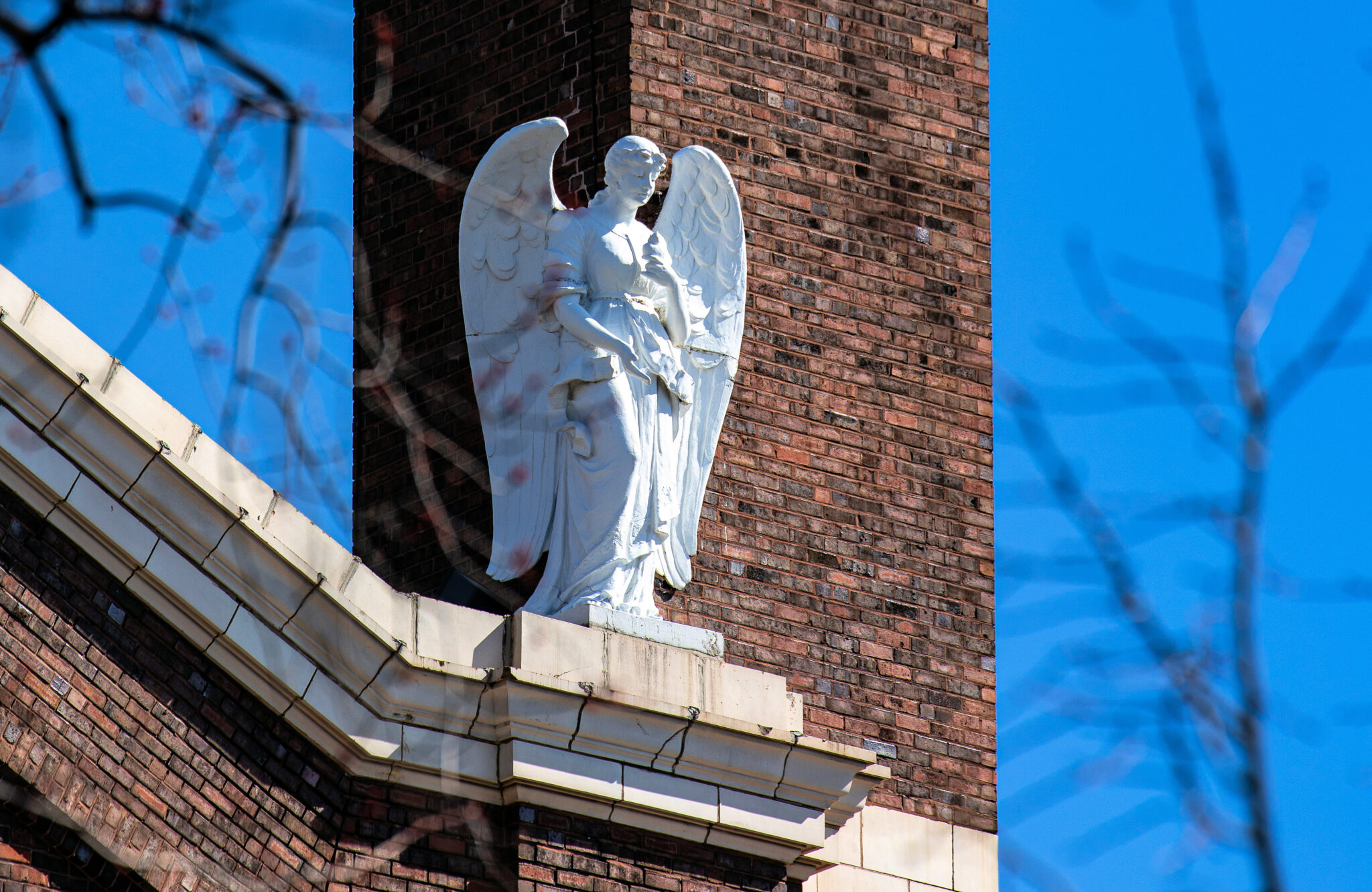 he admired the neighboring towering stamped tin full-figured winged angels along the roofline of st. mary of angels (1899) looking down on his building.