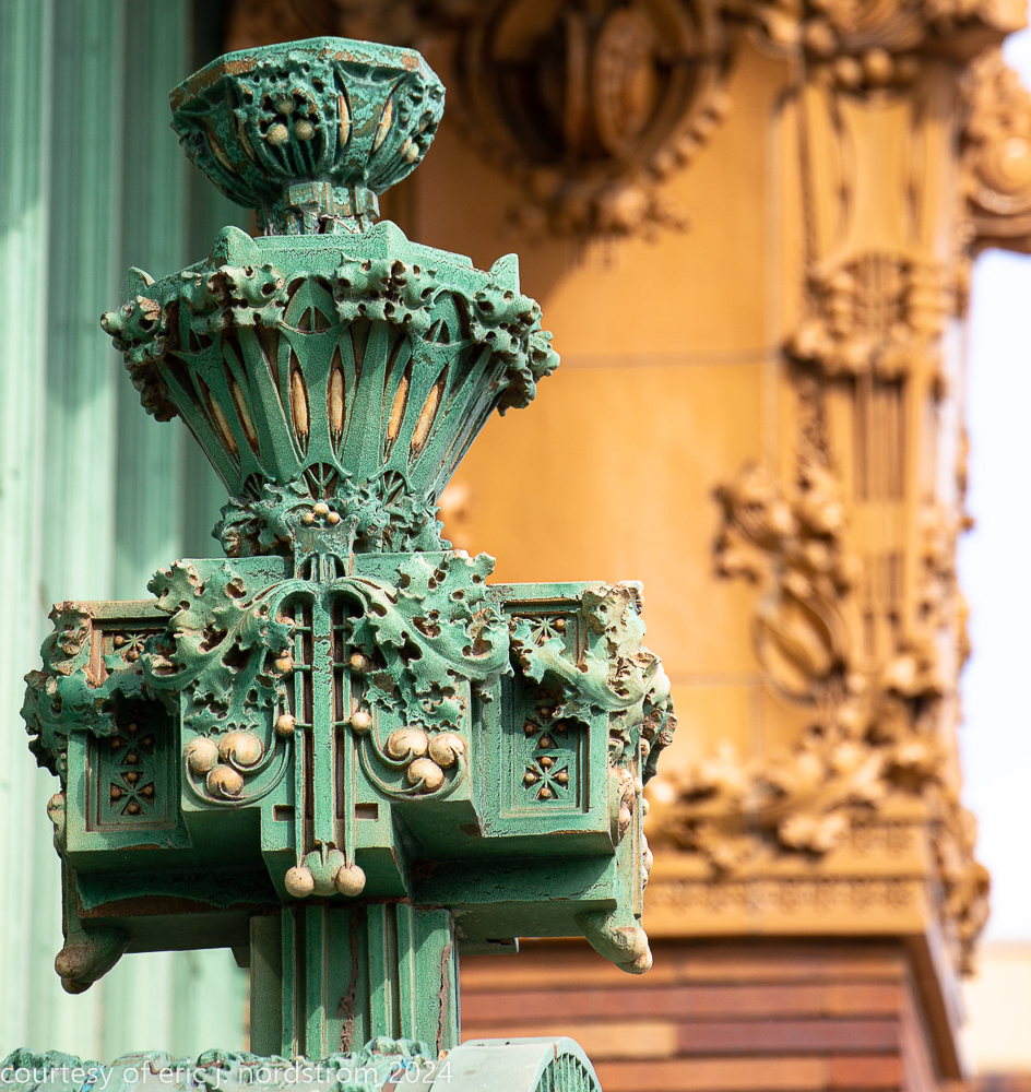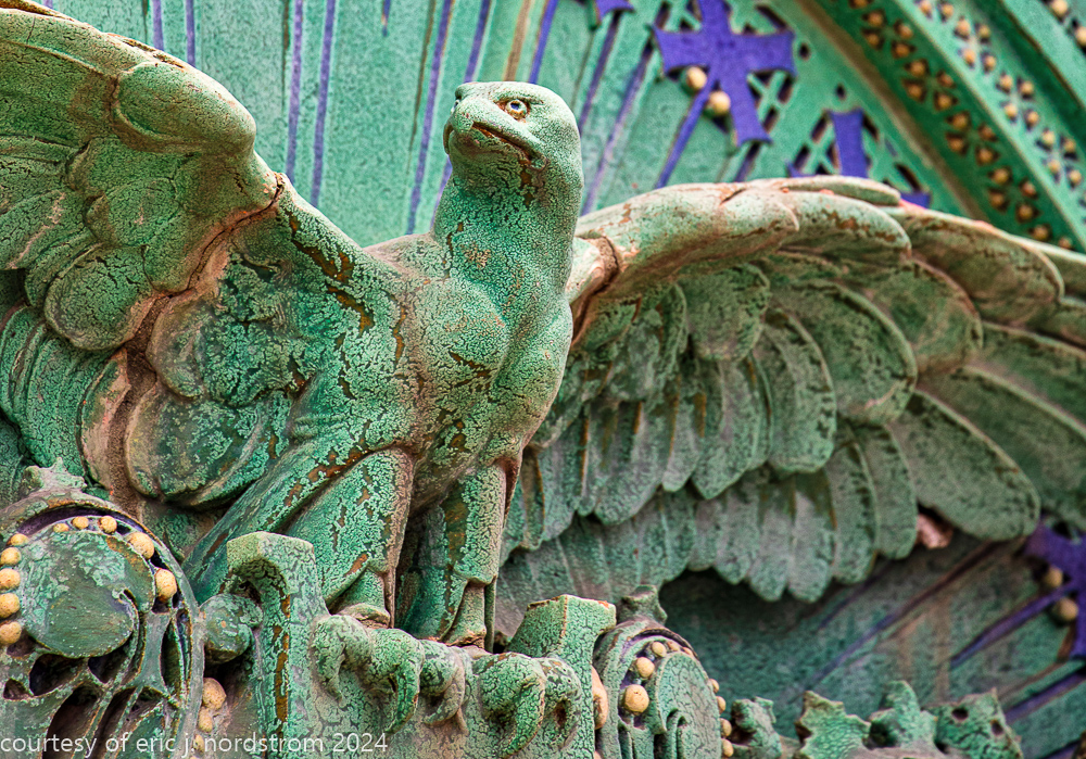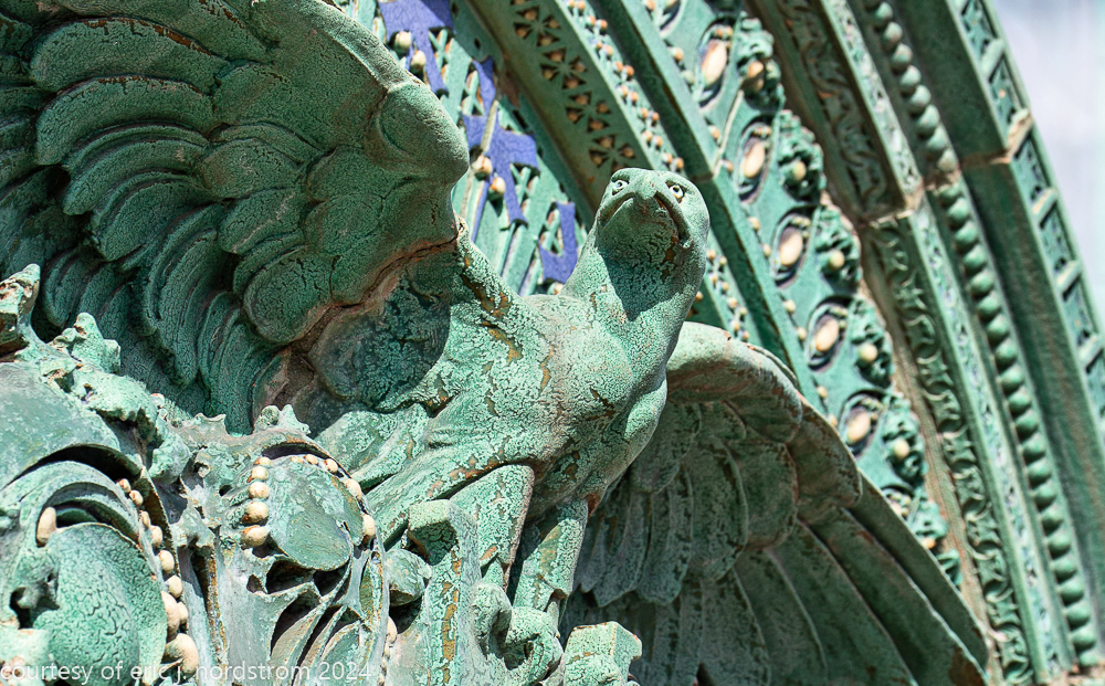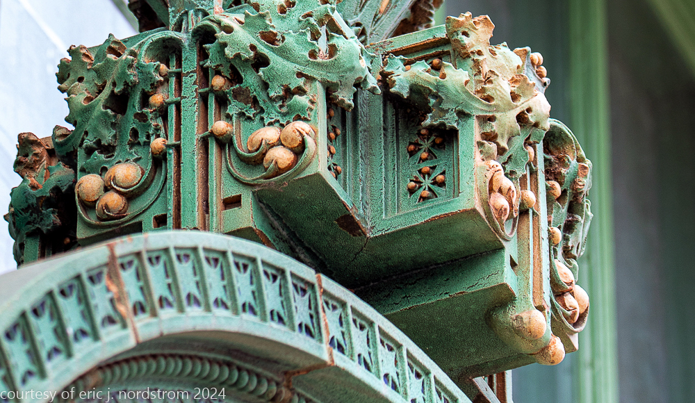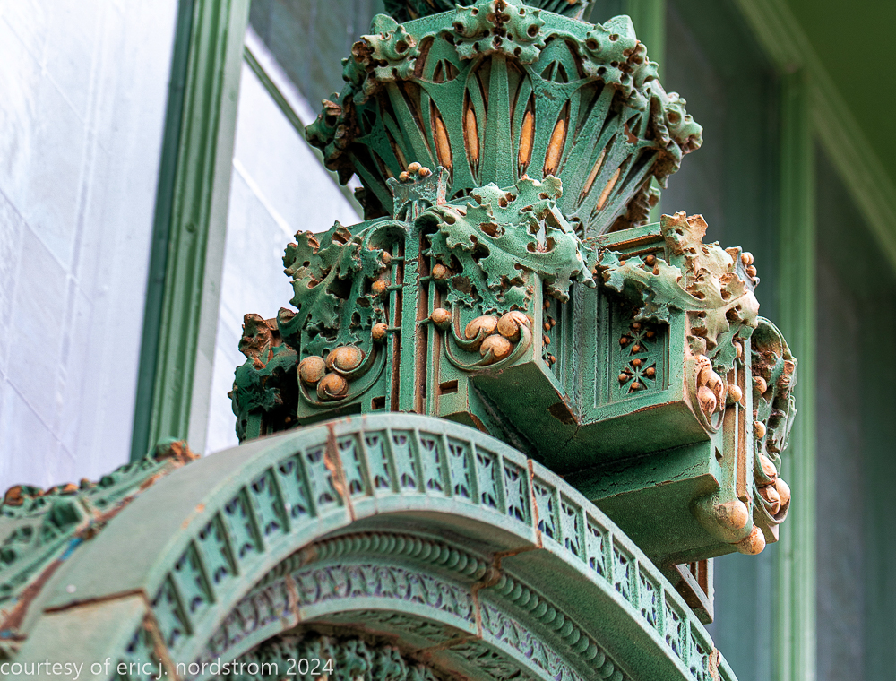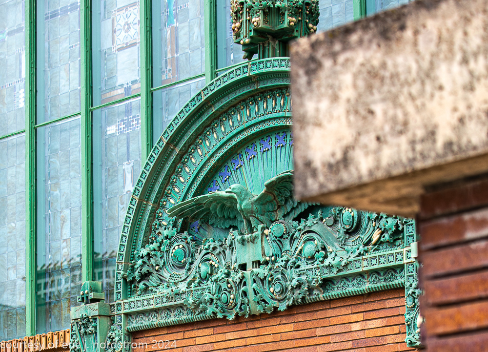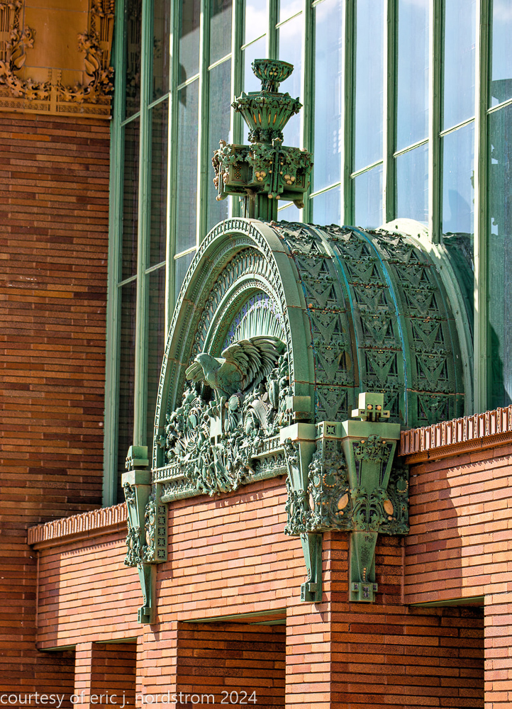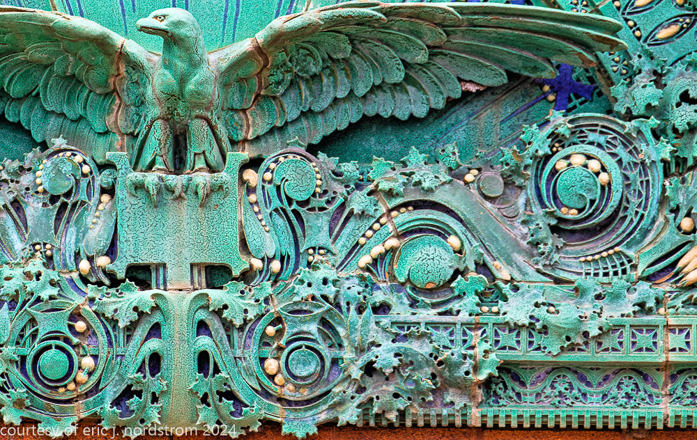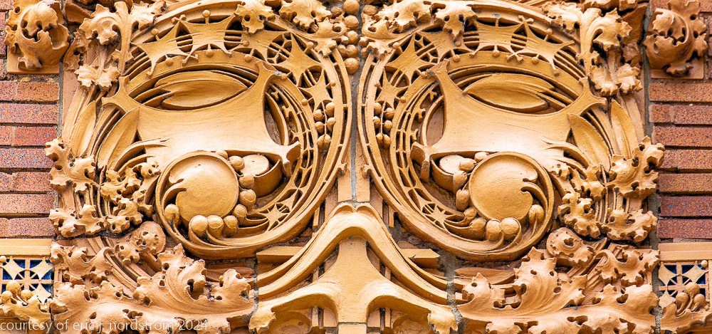 2024 exterior photographic survery of terra cotta ornament on purcell, feick, and elmslie’s merchants national bank