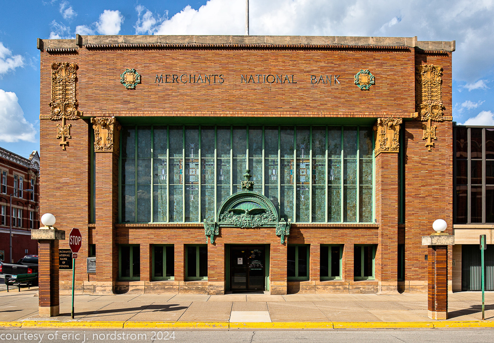 2024 exterior detail of merchants national bank (1912) located in winona, mn. the early 20th century bank building was designed by purcell, feick, and elmslie.