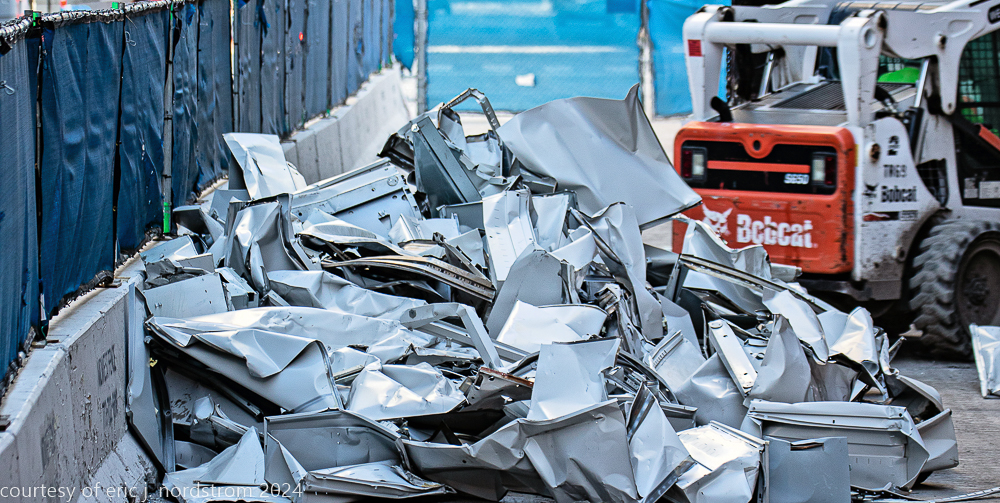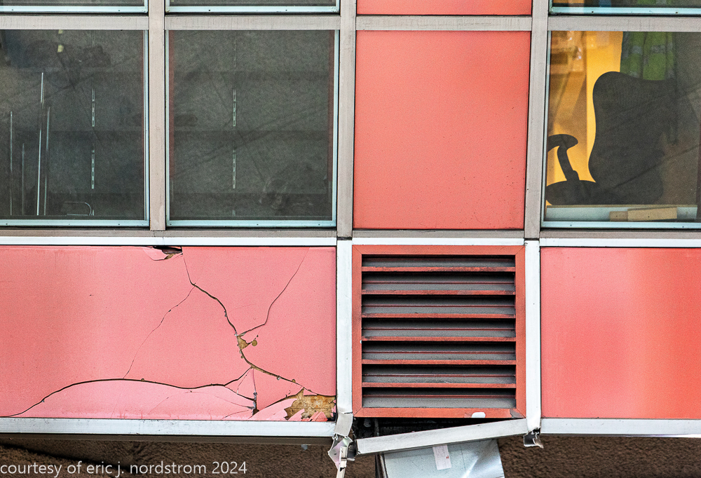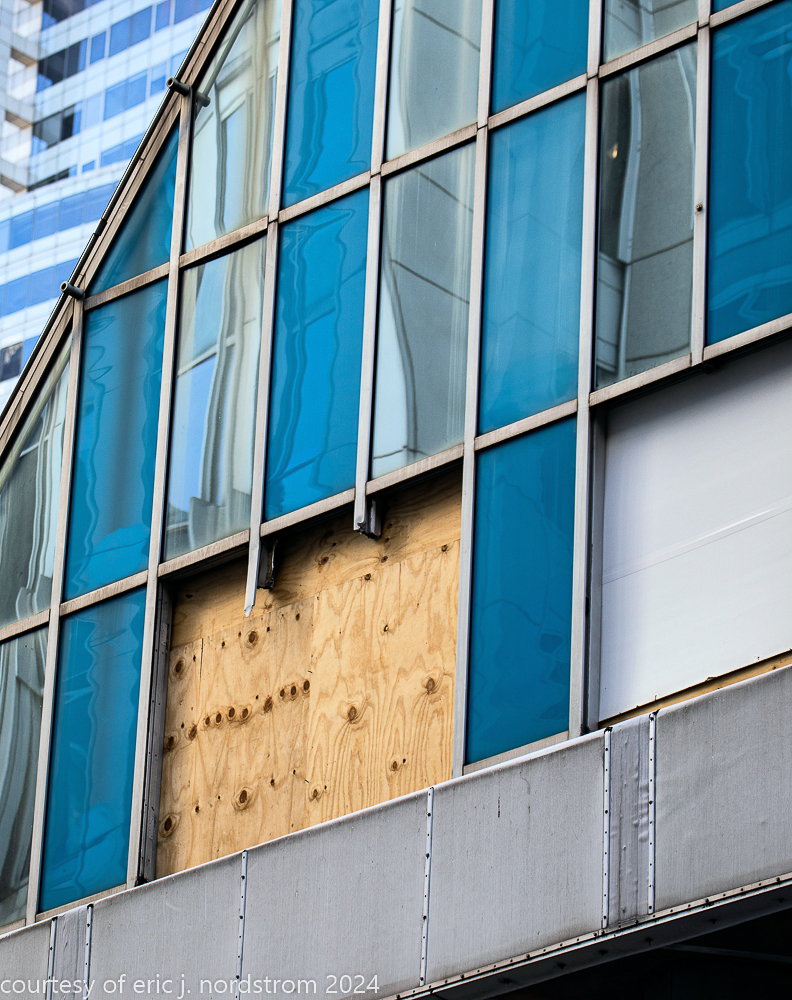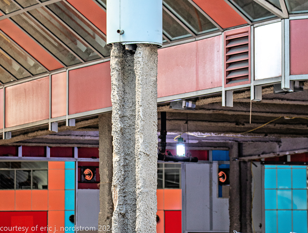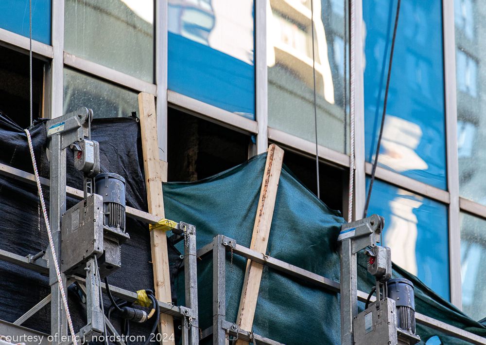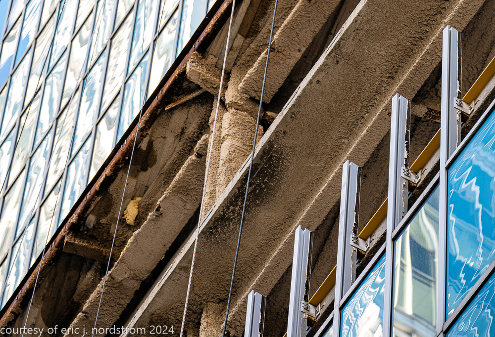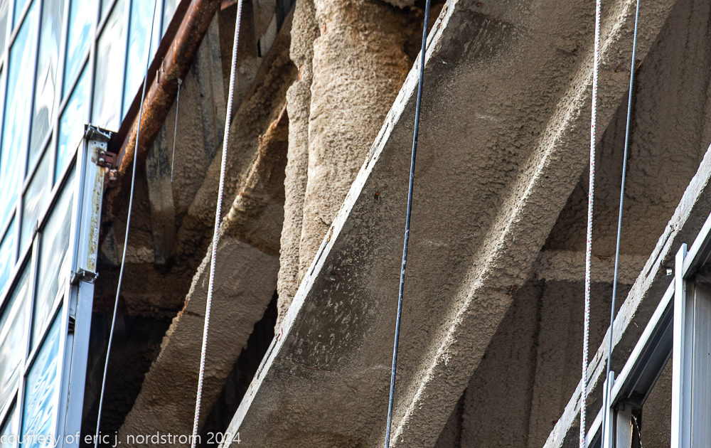 transformation of thompson center gains momentum as more and more glass modules and aluminum mullions are plucked from the curtain wall, exposing the building’s structural components for the first time since its completion in 1983.