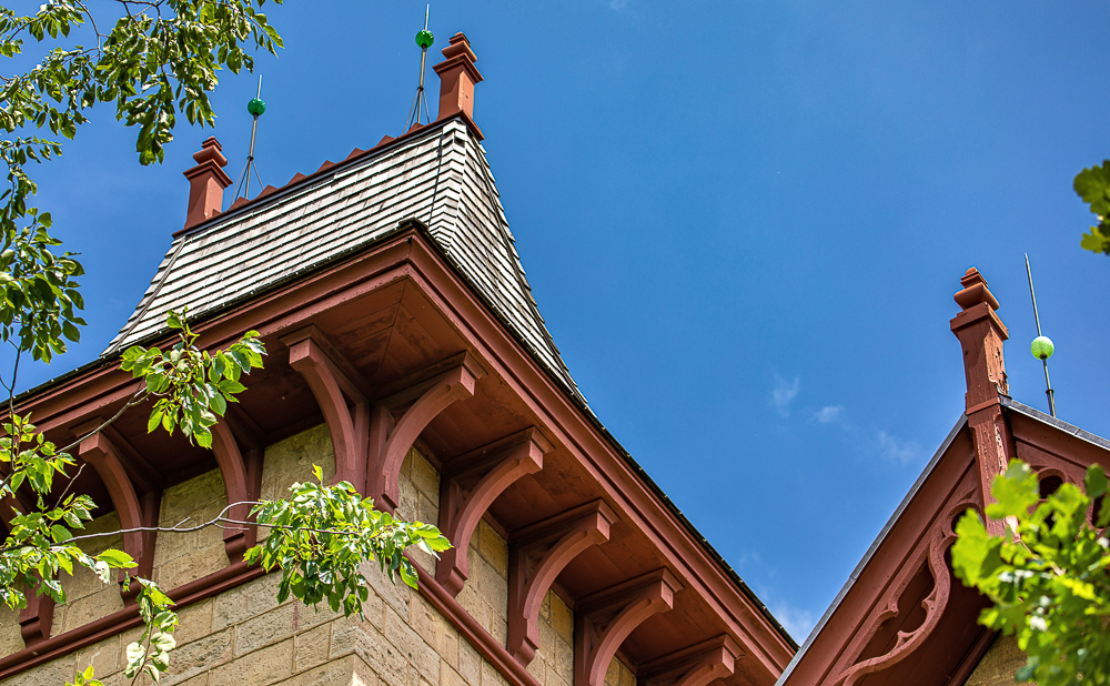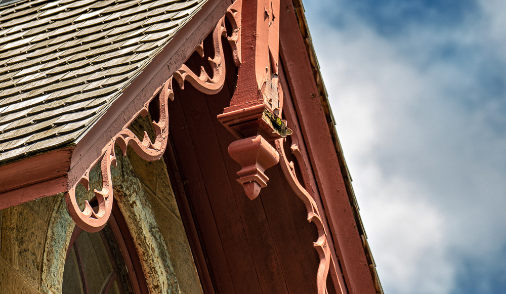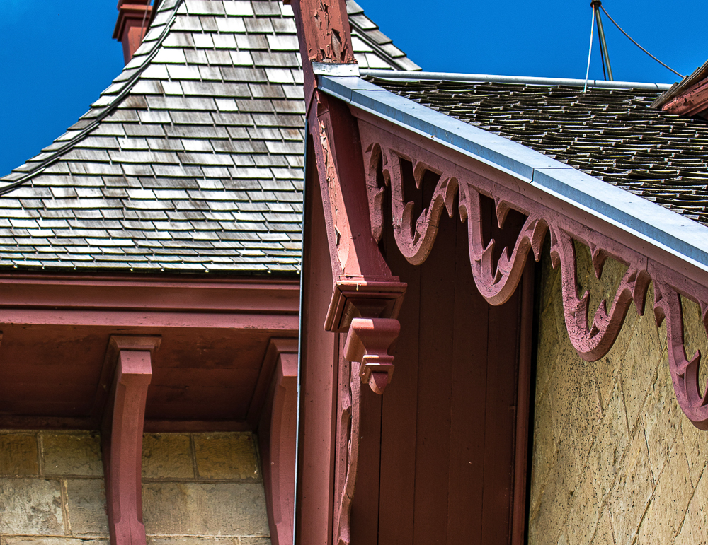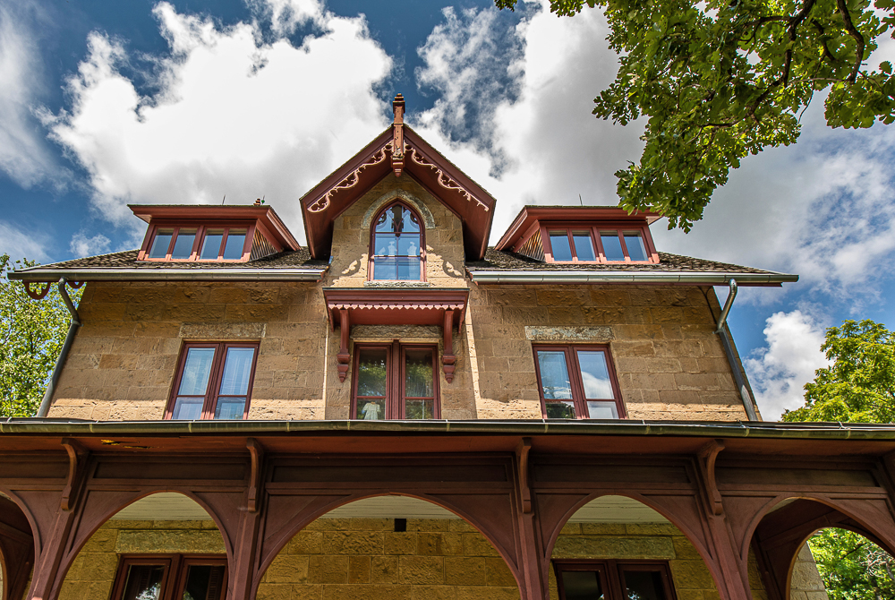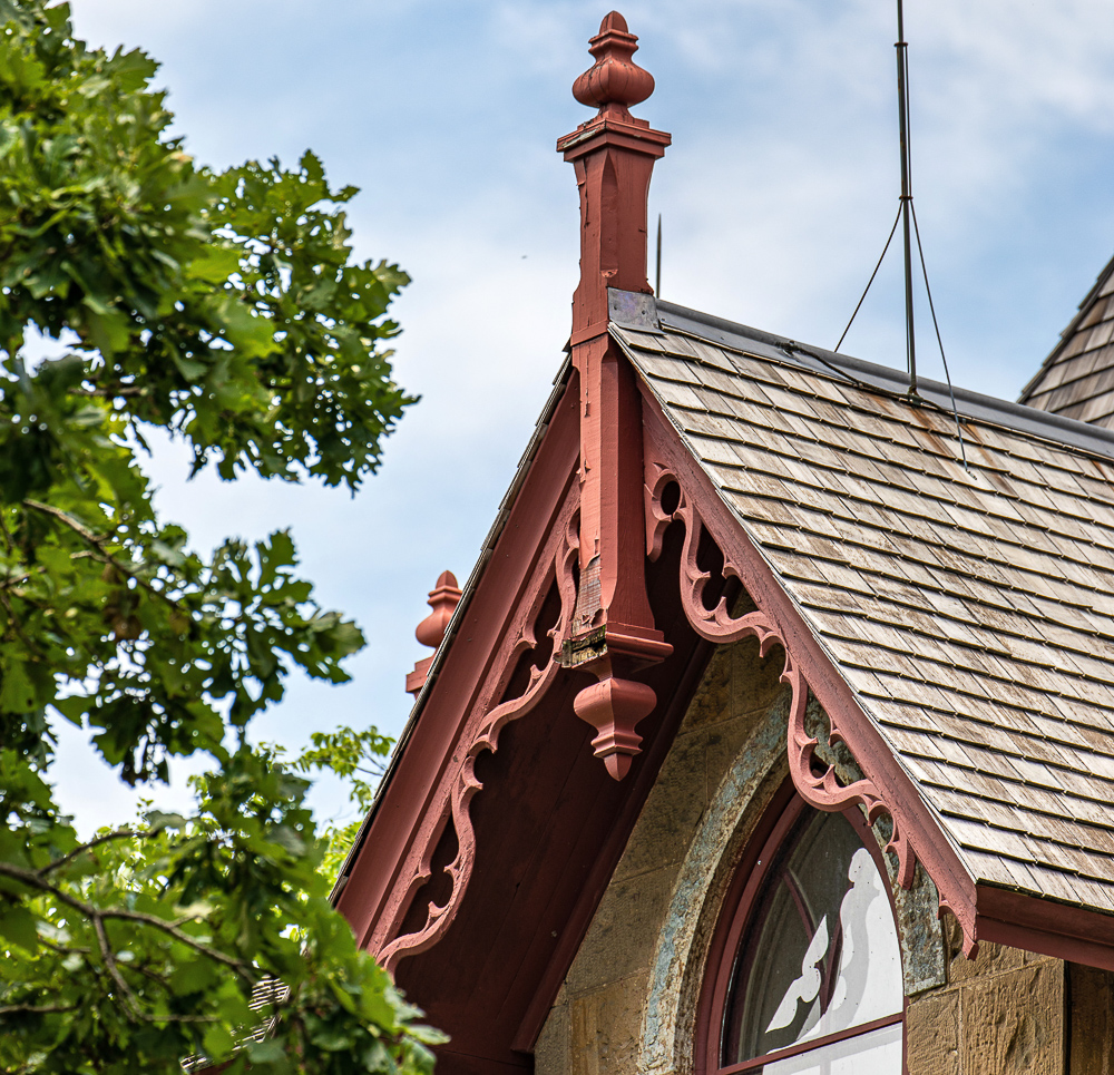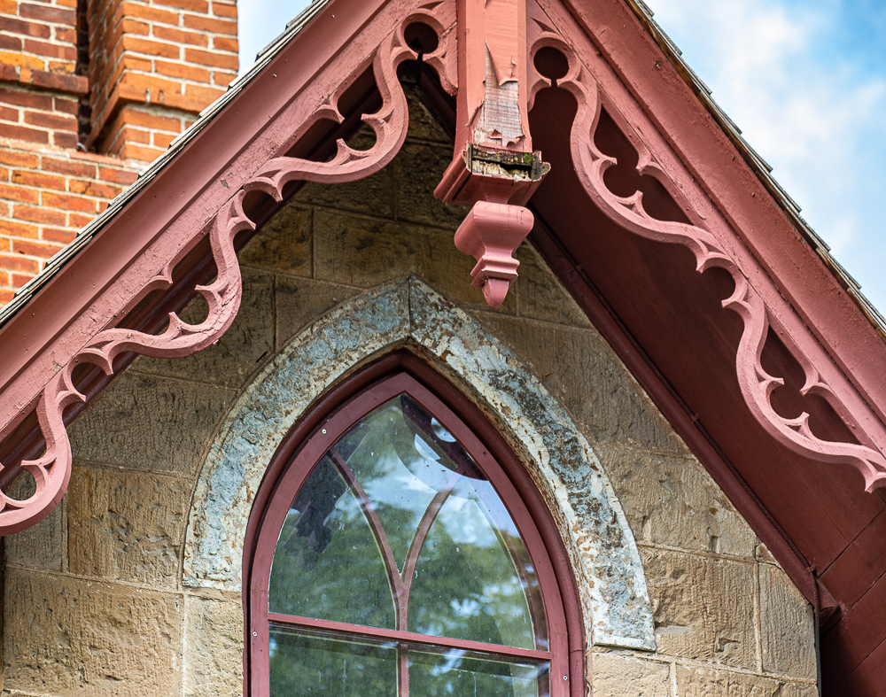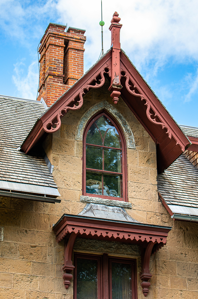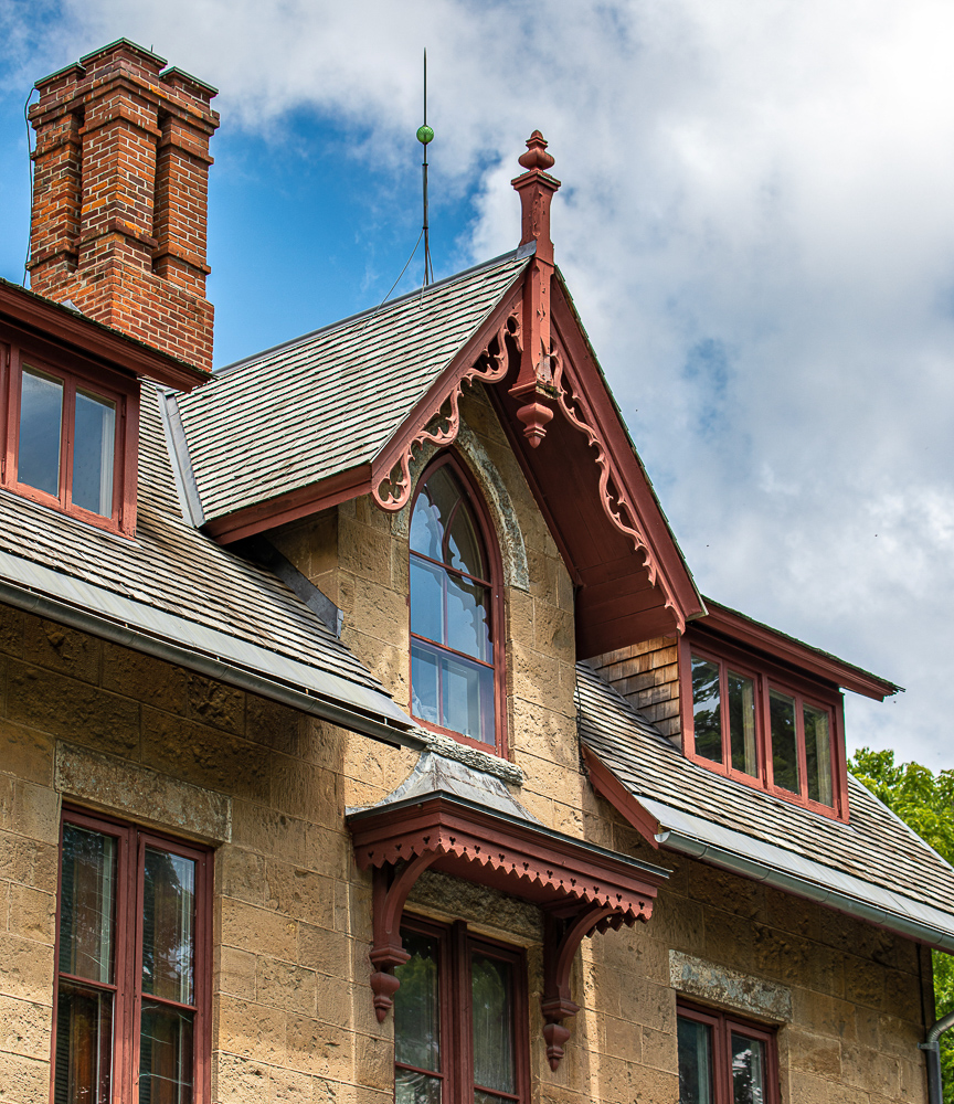 the overall design and execution of the gothic style house and outbuildings was sourced from mid-19th century house pattern books, including designs found in andrew jackson downing’s 1853 edition of “cottage residences.”