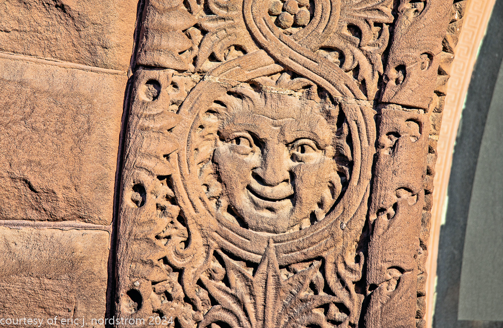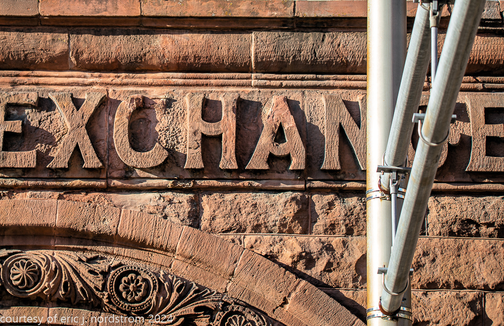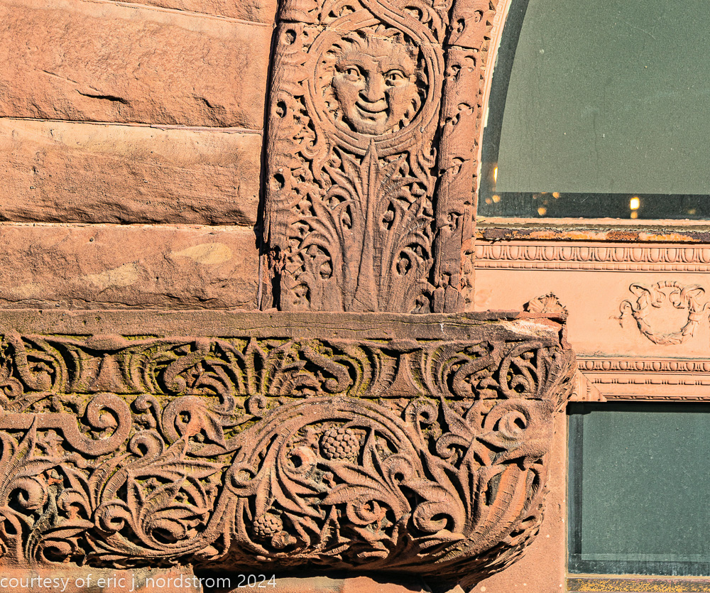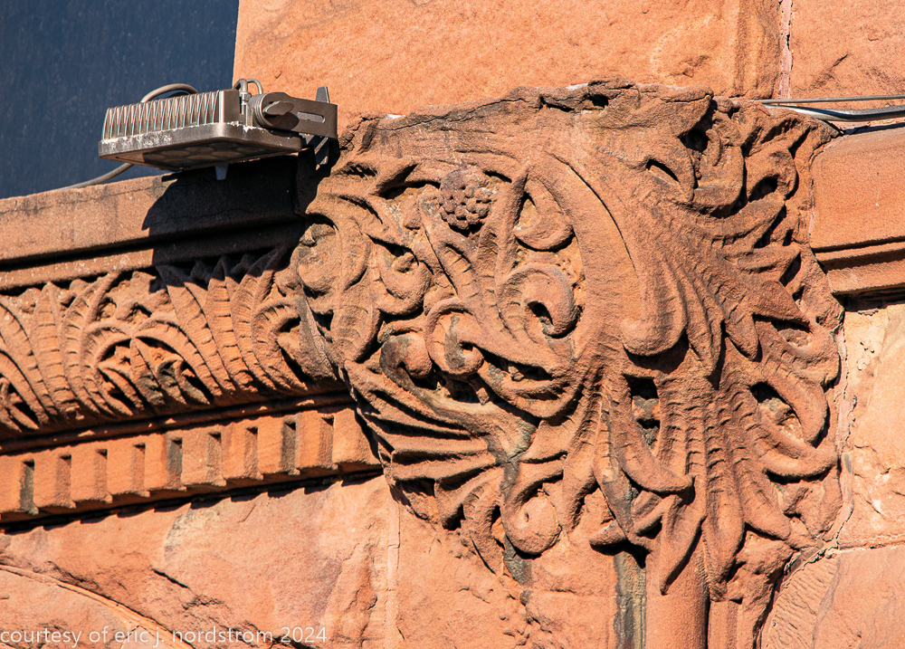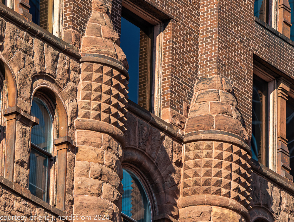 the building’s facade is comprised of pink kasota stone, quarried from mankato, mn.
