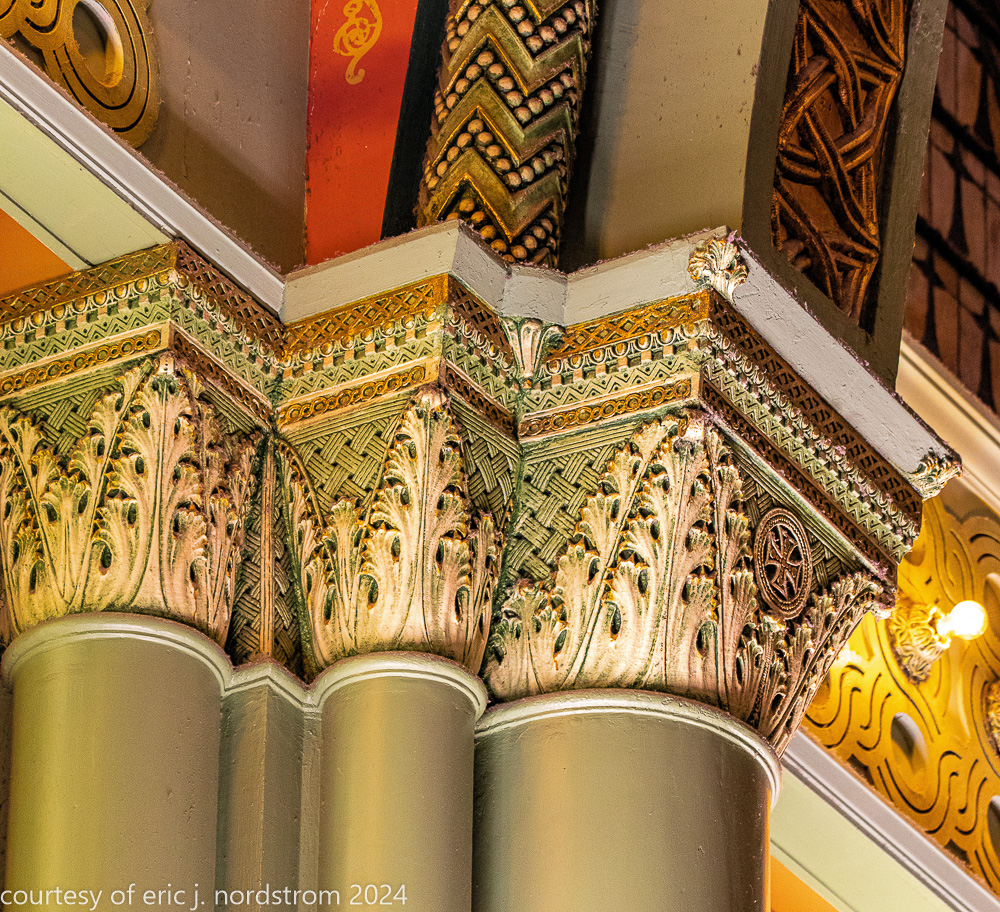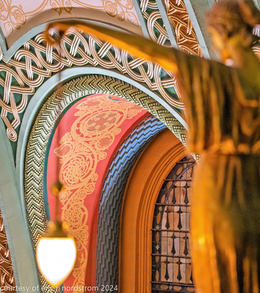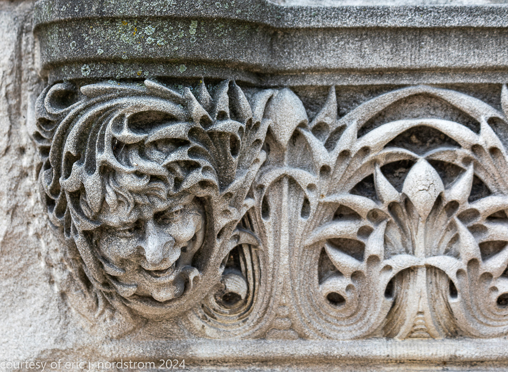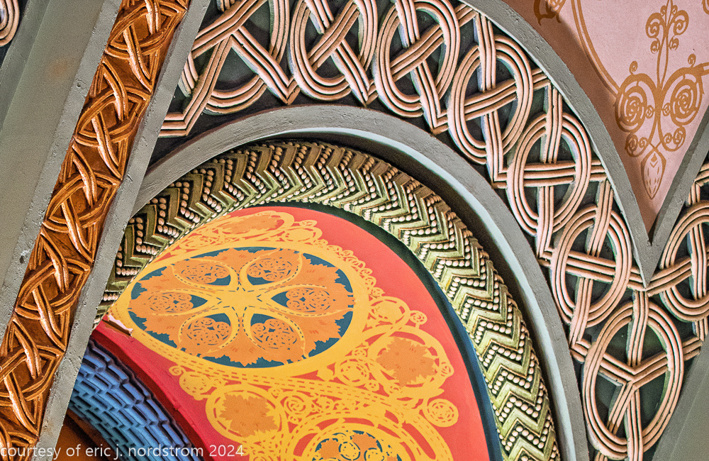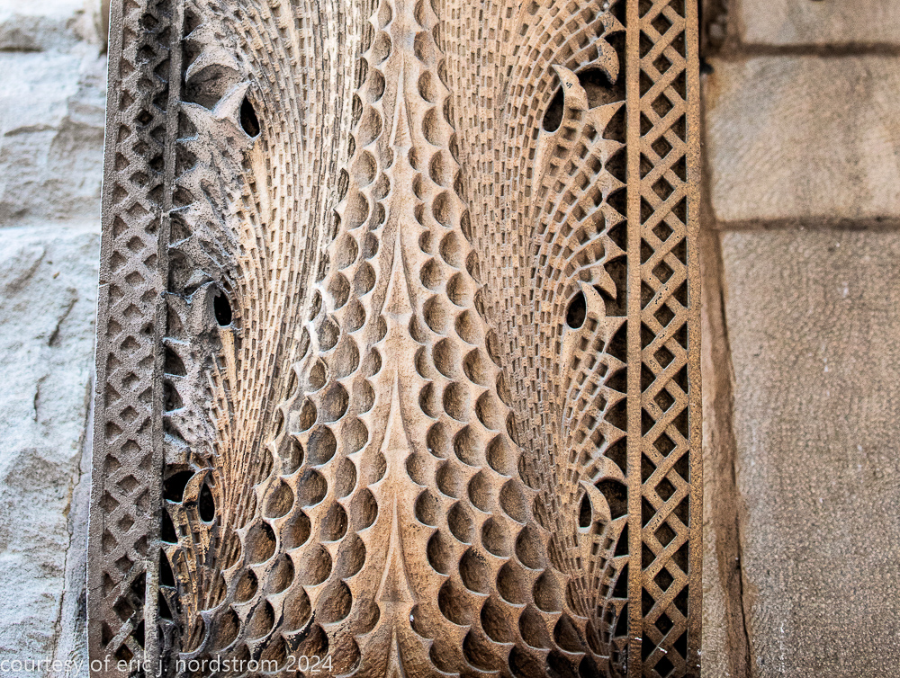 the station’s distinctive interior and exterior design program was handled by edmund cameron, who worked for h.h. richardson, where he oversaw construction of richardson’s glessner house (1887) and marshall field warehouse (1887-1930). he also greatly admired the work of harvey ellis and was well-versed in ellis’s architectural ornament.