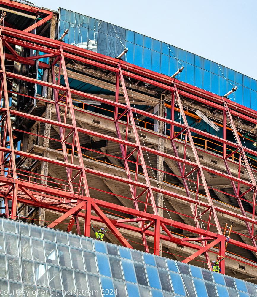 26 Aug as deconstruction continues at brisk pace, helmut jahn’s thompson center is showing more of its skeletal construction August 26, 2024 in Bldg. 51, Events & Announcements, Featured Posts, Miscellaneous by Eric Share latest deconstruction images of helmut jahn’s thompson center (1985) taken over the last two weeks of august. images courtesy of eric j. nordstrom and the bldg. 51 archive. all rights reserved. 2024.