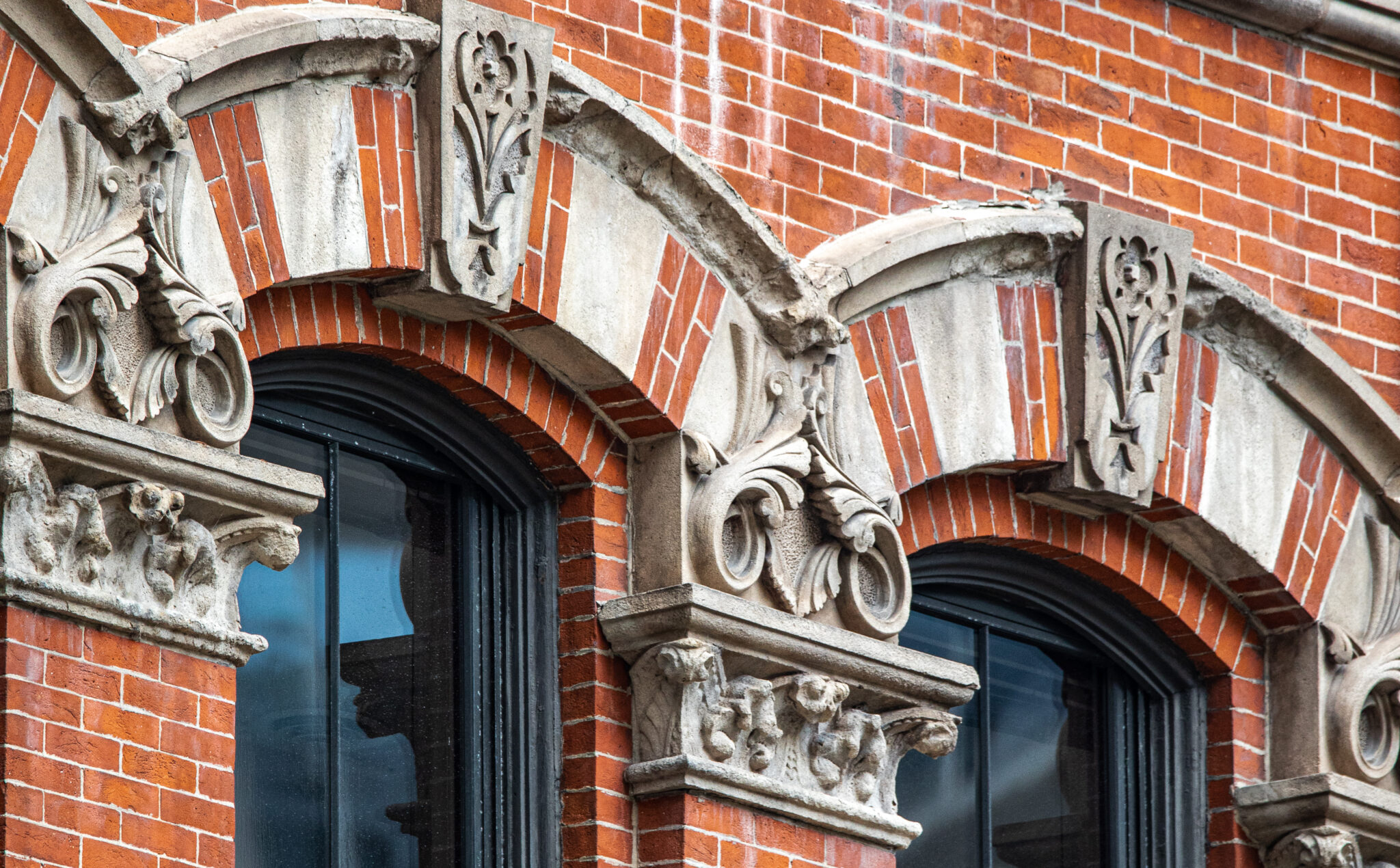 recent detailed photographic images of hand-carved “gray body” terra cotta panels sculpted by isaac elwood scott for the chicago terra cotta company. the custom-designed panels and “stock” terra cotta blocks punctuate the facade of asa lyon’s luther mcconell house (1877) located at 1401 north dearborn street, chicago, il.