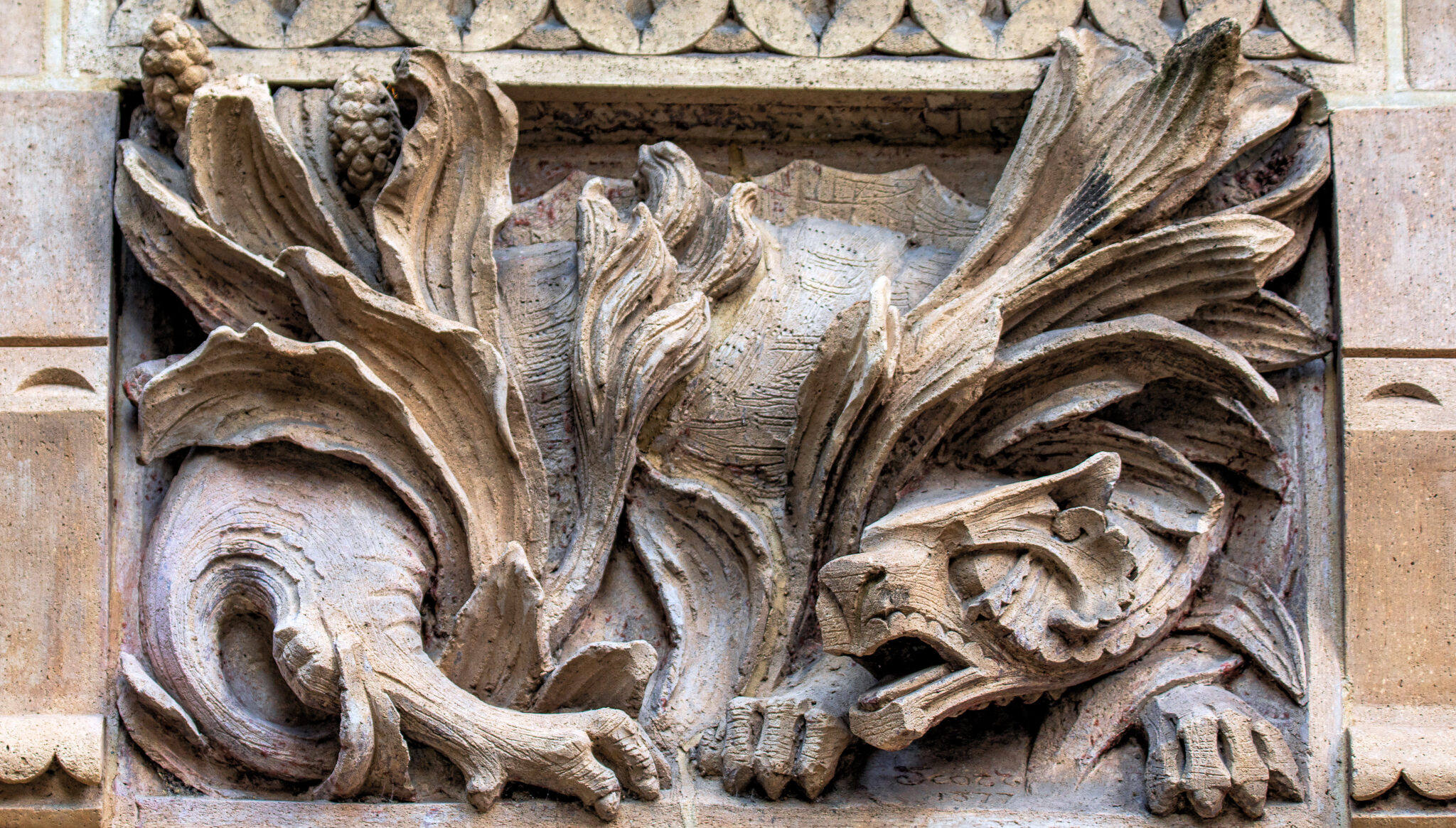 note: the ornament i photographed is original to the house. the other design elements that look similar were recreated – either in cast concrete or stone.