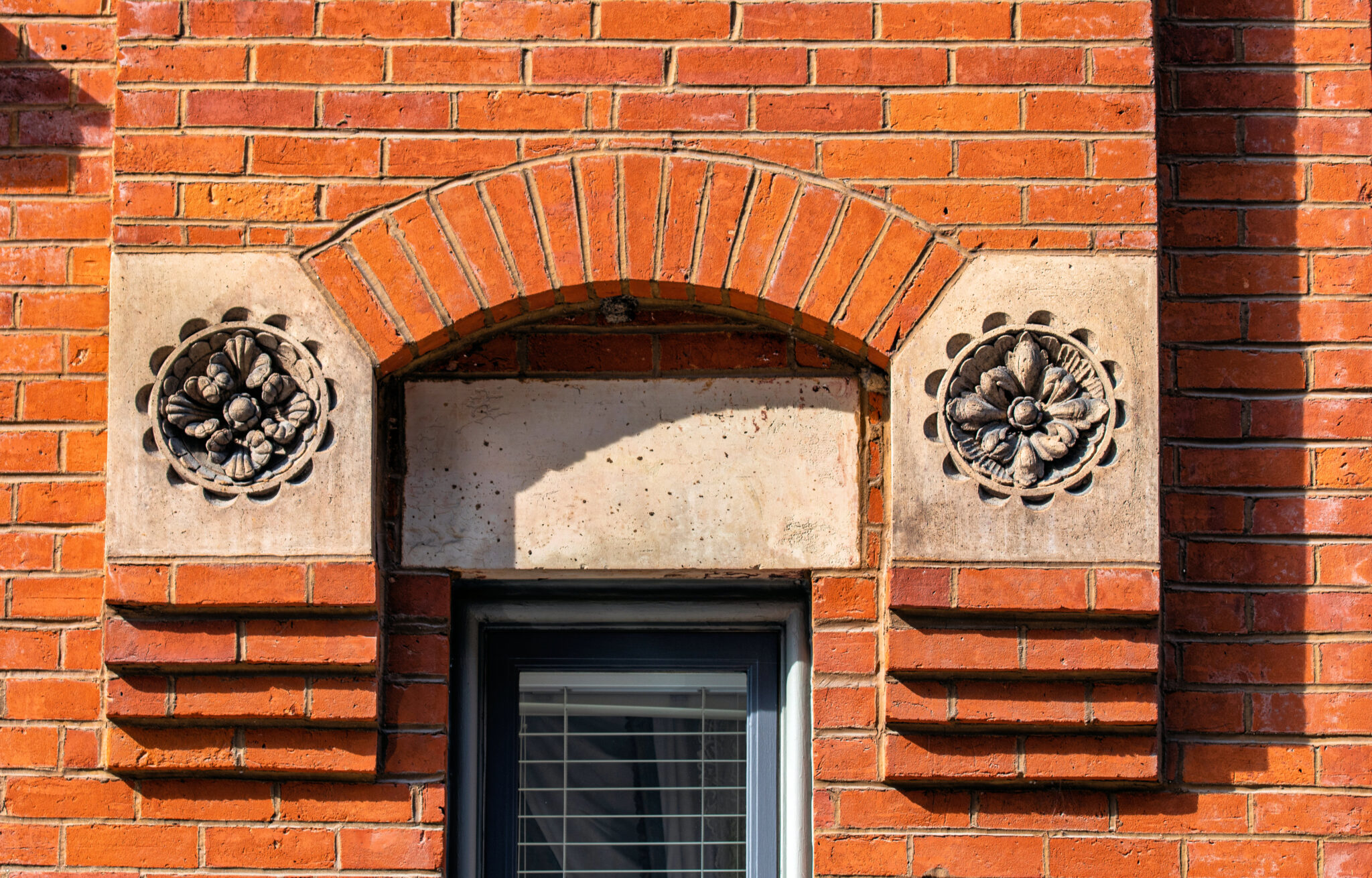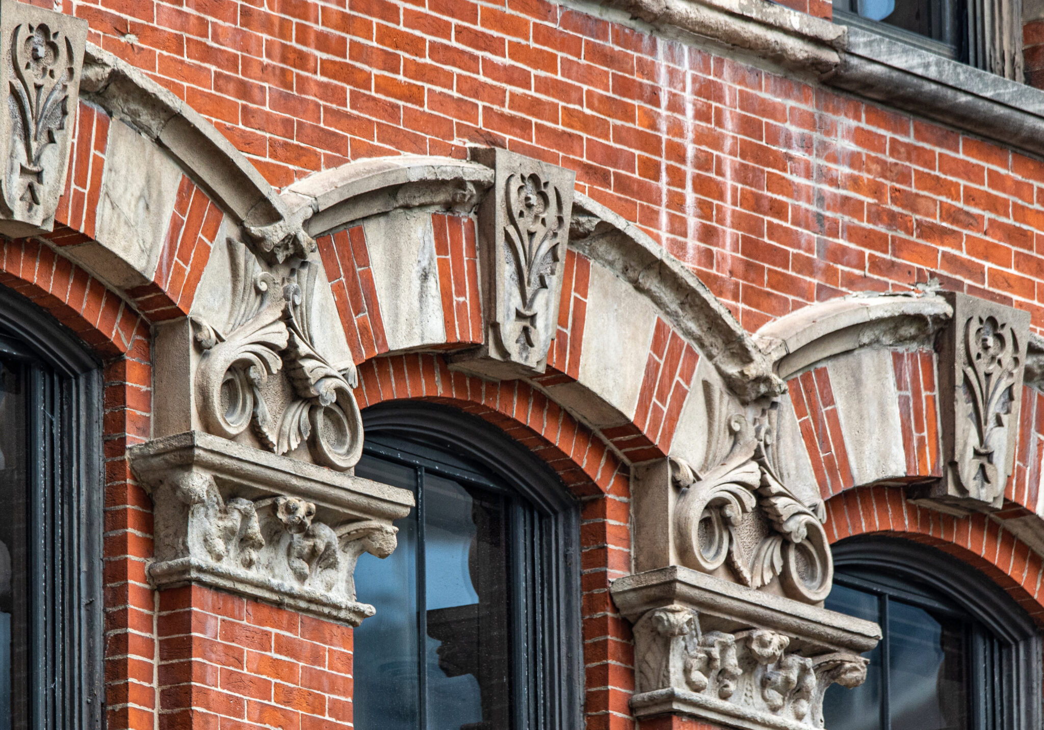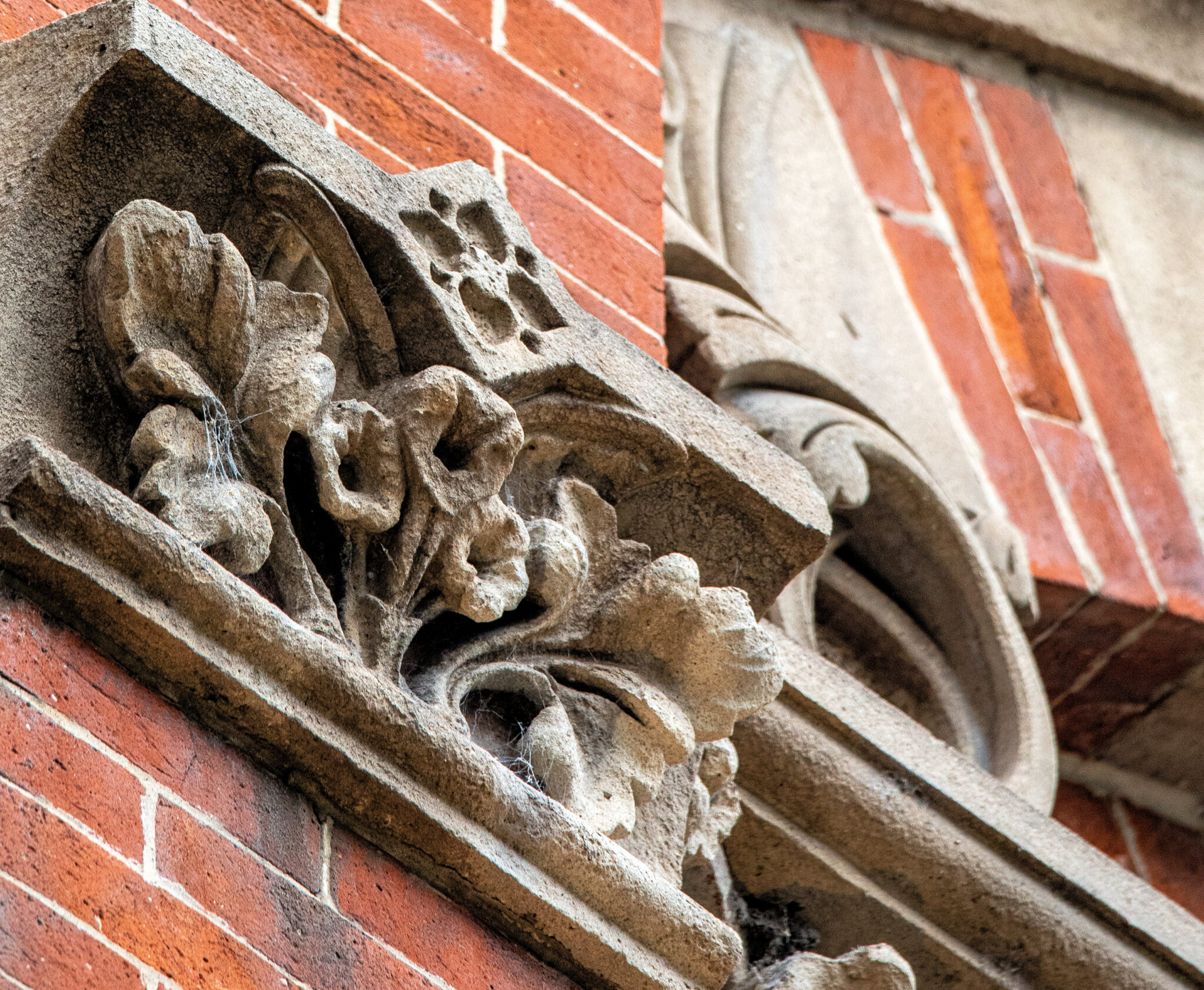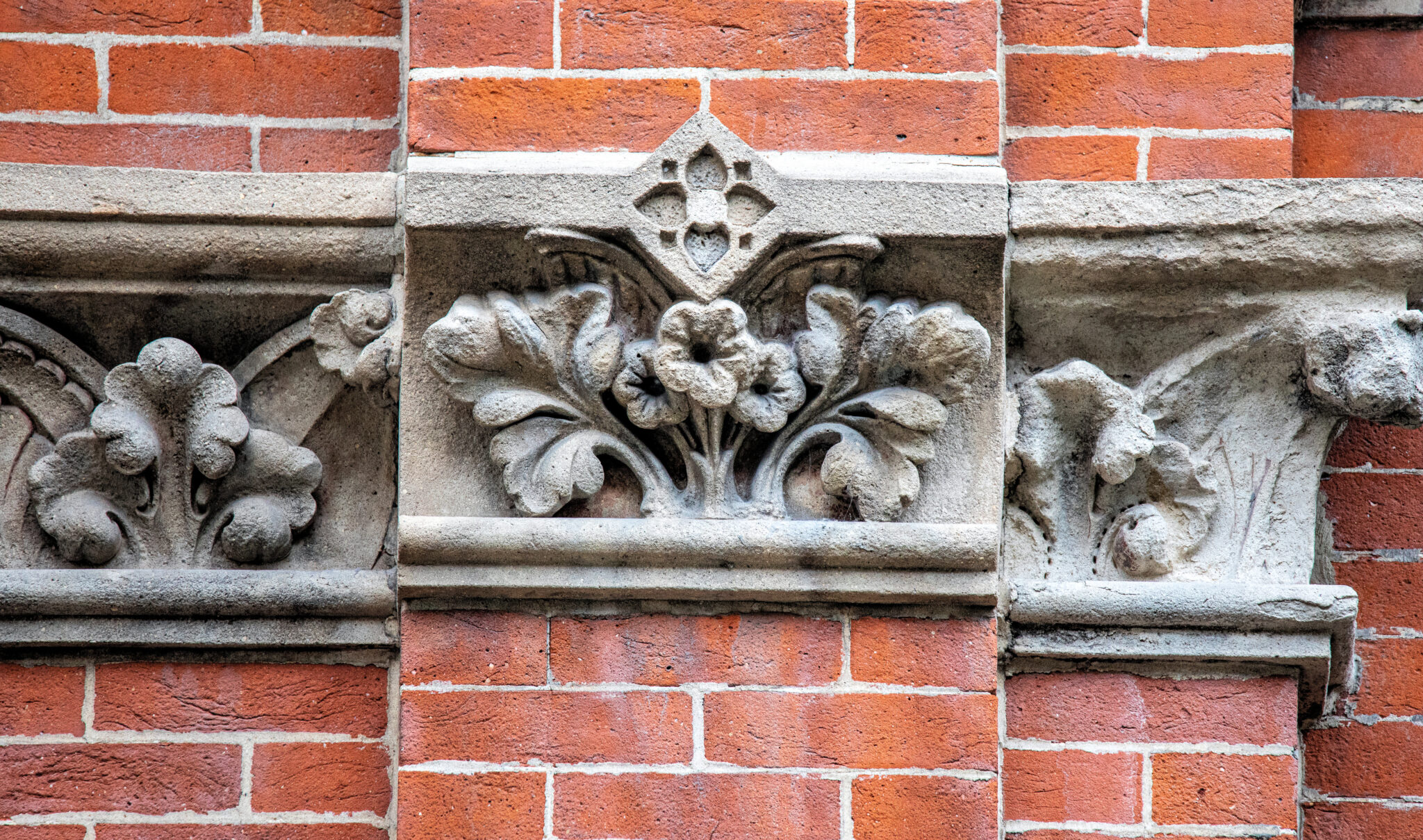recent detailed photographic images of hand-carved “gray body” terra cotta panels sculpted by isaac elwood scott for the chicago terra cotta company. the custom-designed panels and “stock” terra cotta blocks punctuate the facade of asa lyon’s luther mcconell house (1877) located at 1401 north dearborn street, chicago, il.