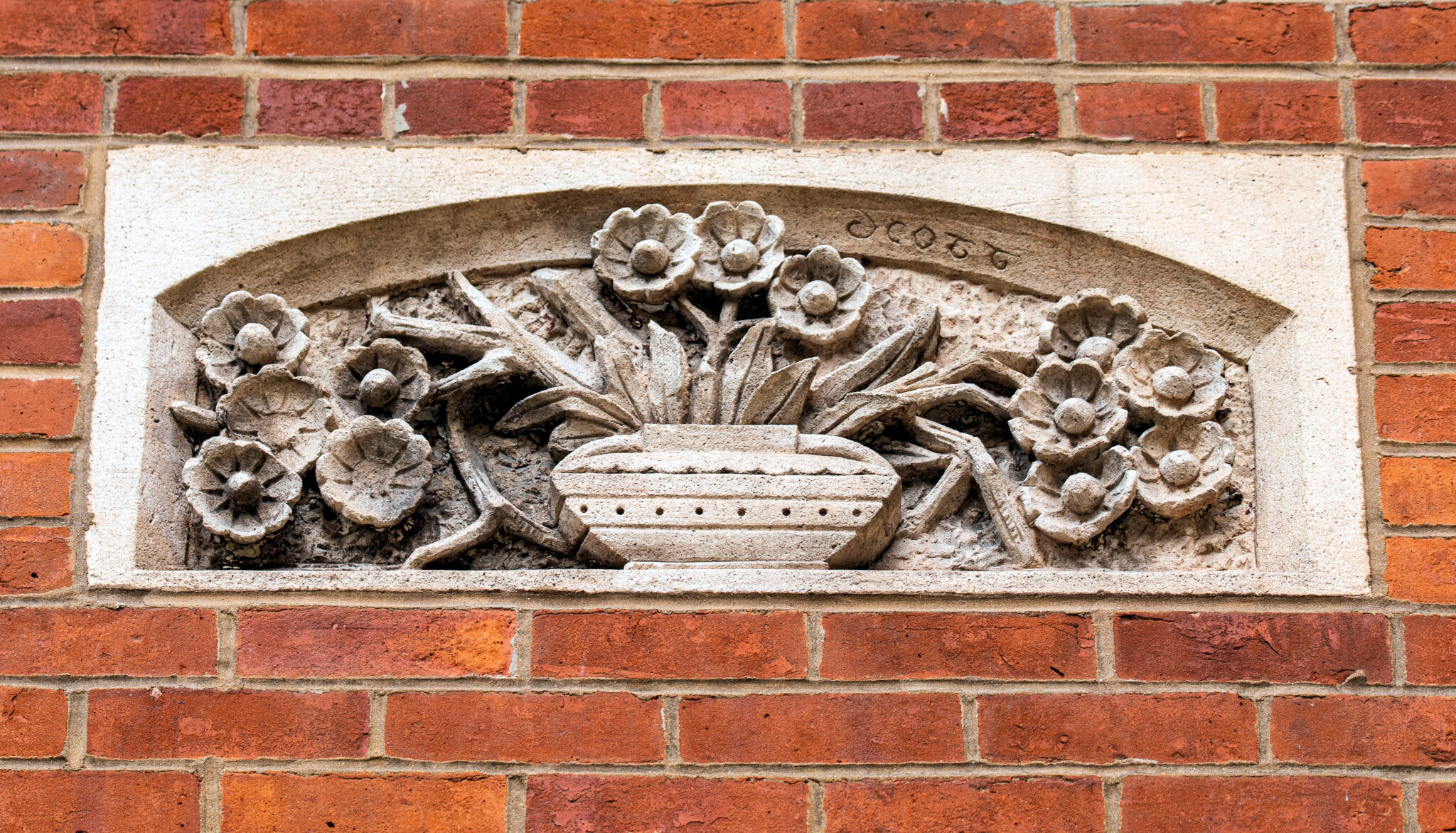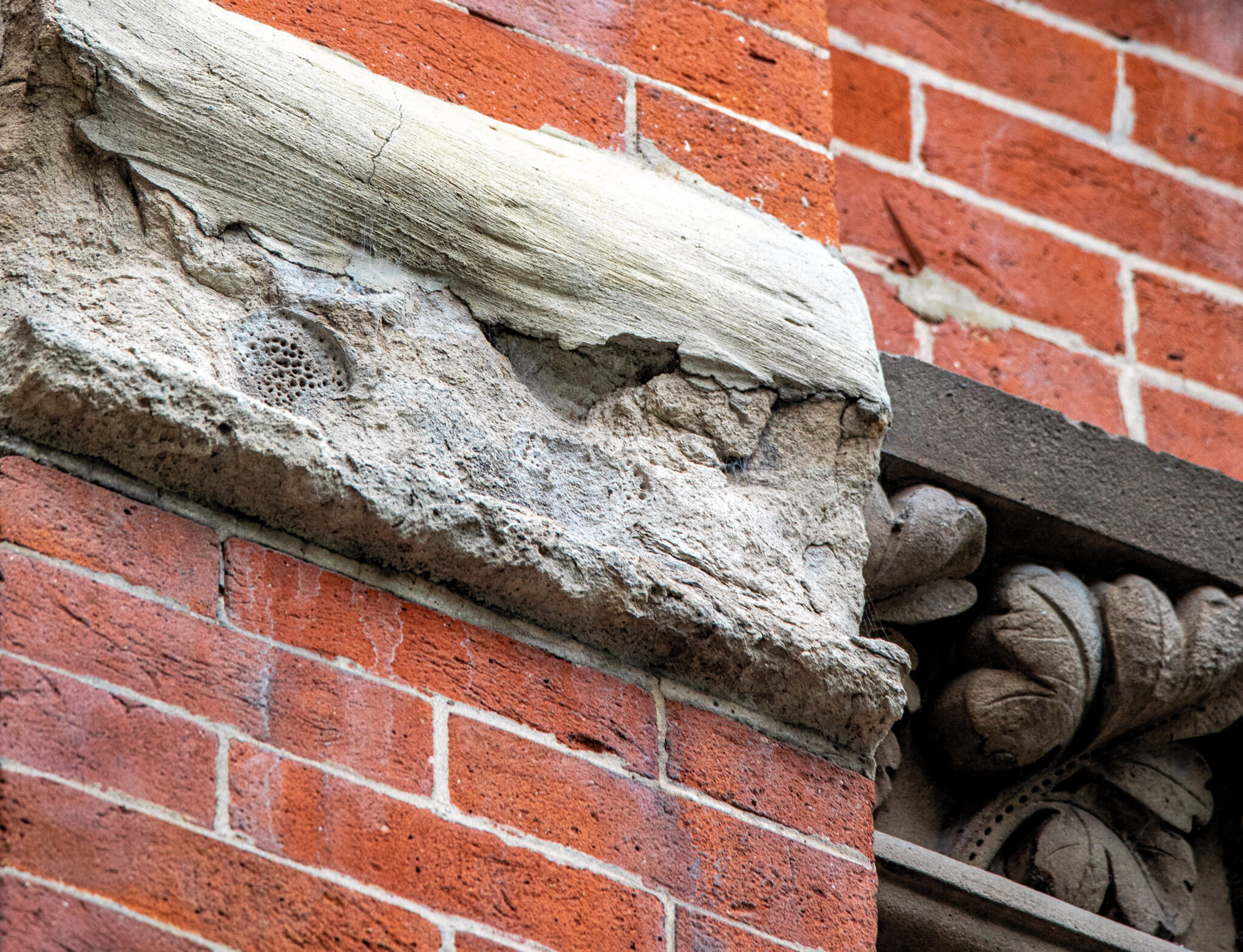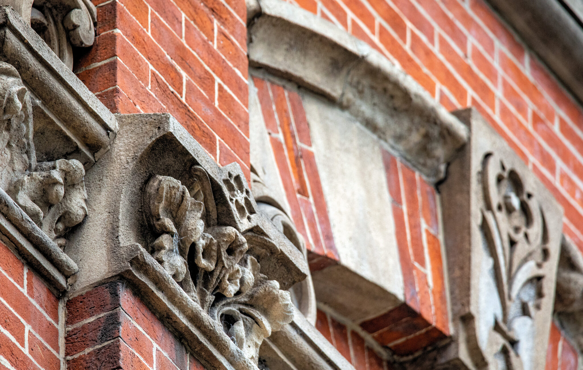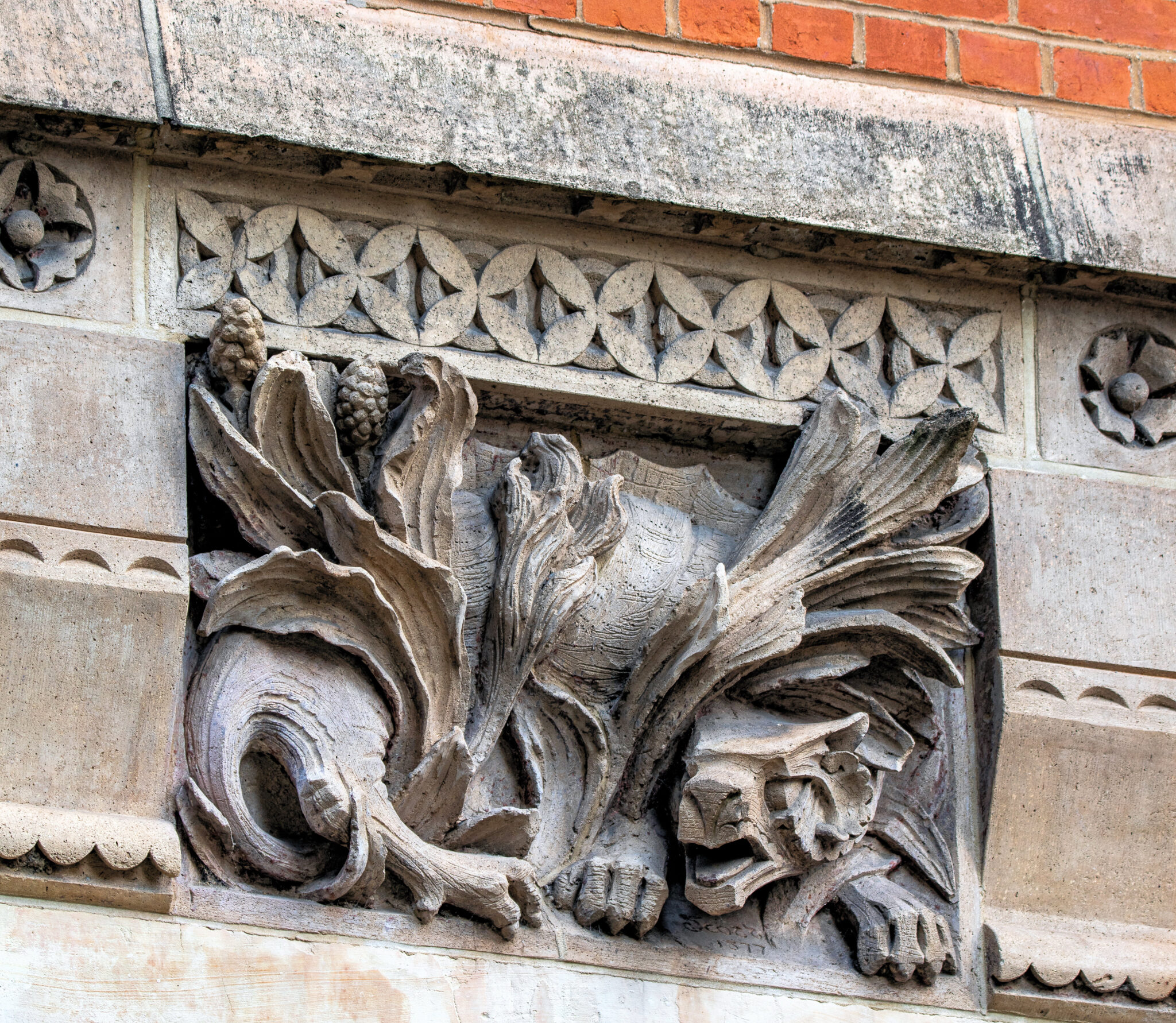 recent detailed photographic images of hand-carved “gray body” terra cotta panels sculpted by isaac elwood scott for the chicago terra cotta company. the custom-designed panels and “stock” terra cotta blocks punctuate the facade of asa lyon’s luther mcconell house (1877) located at 1401 north dearborn street, chicago, il.