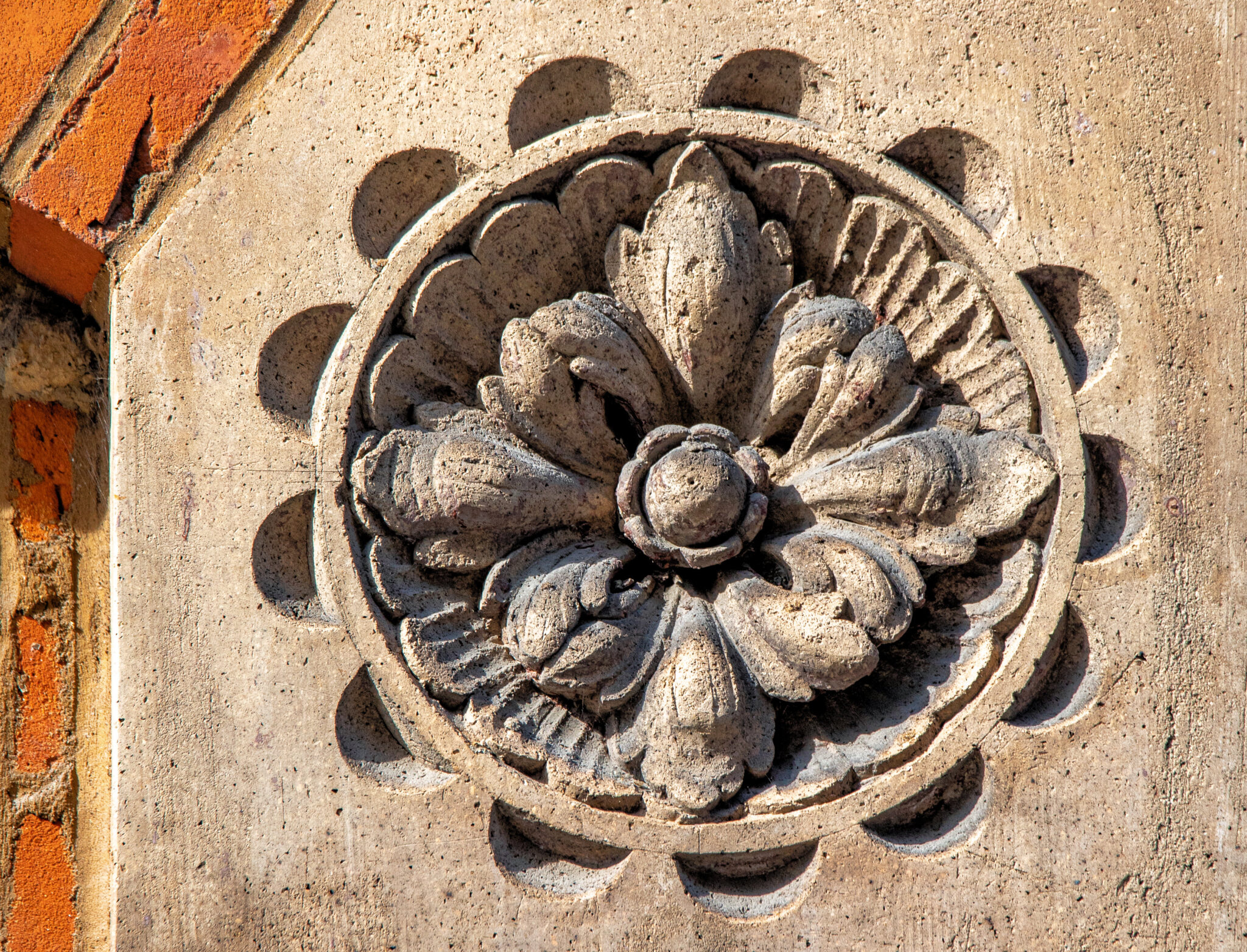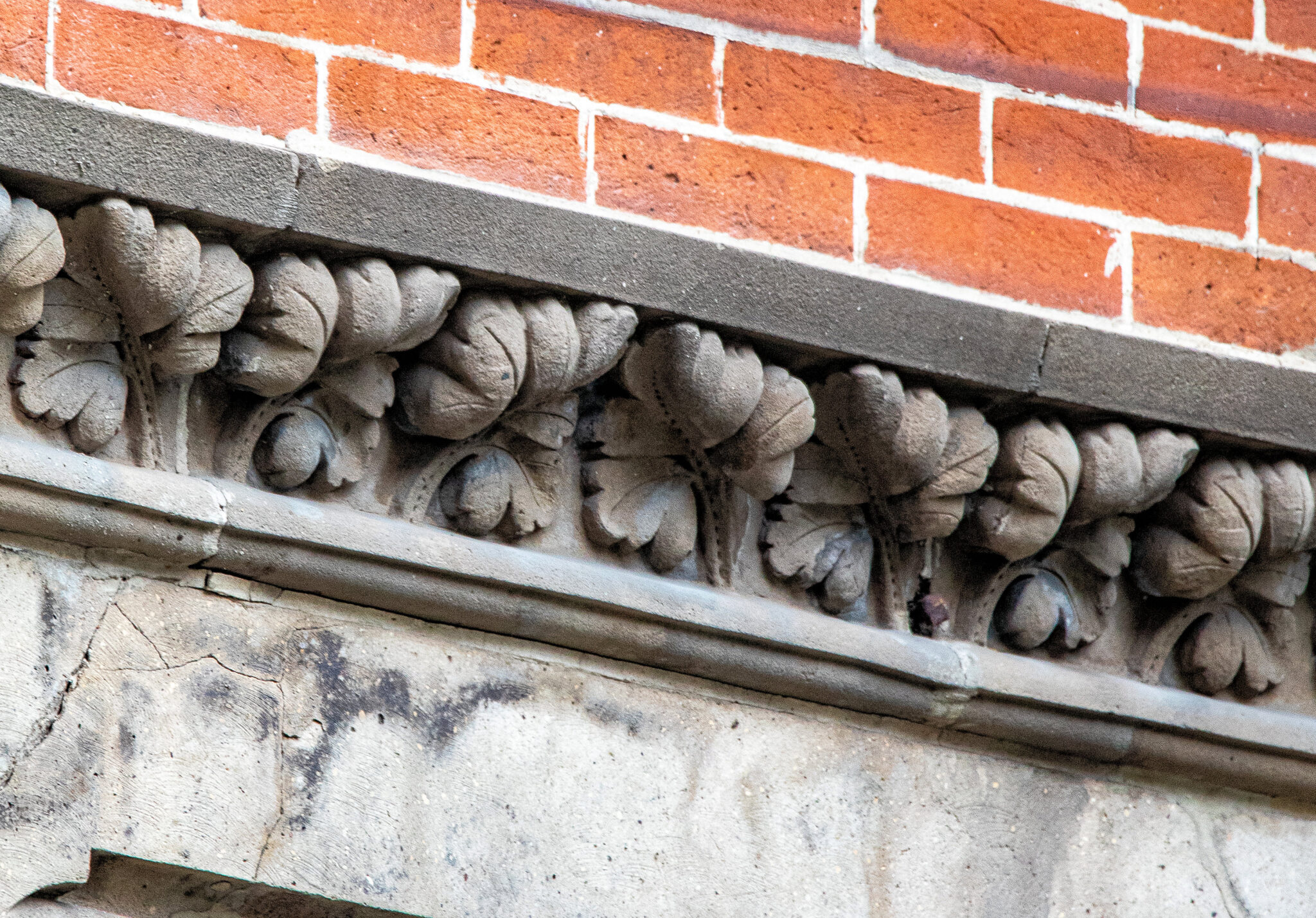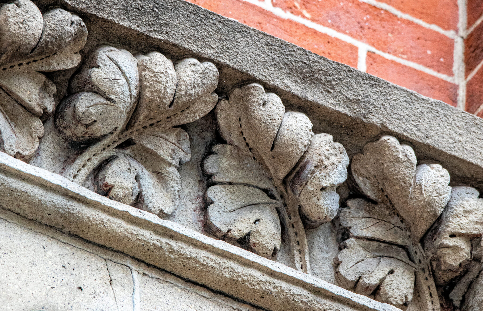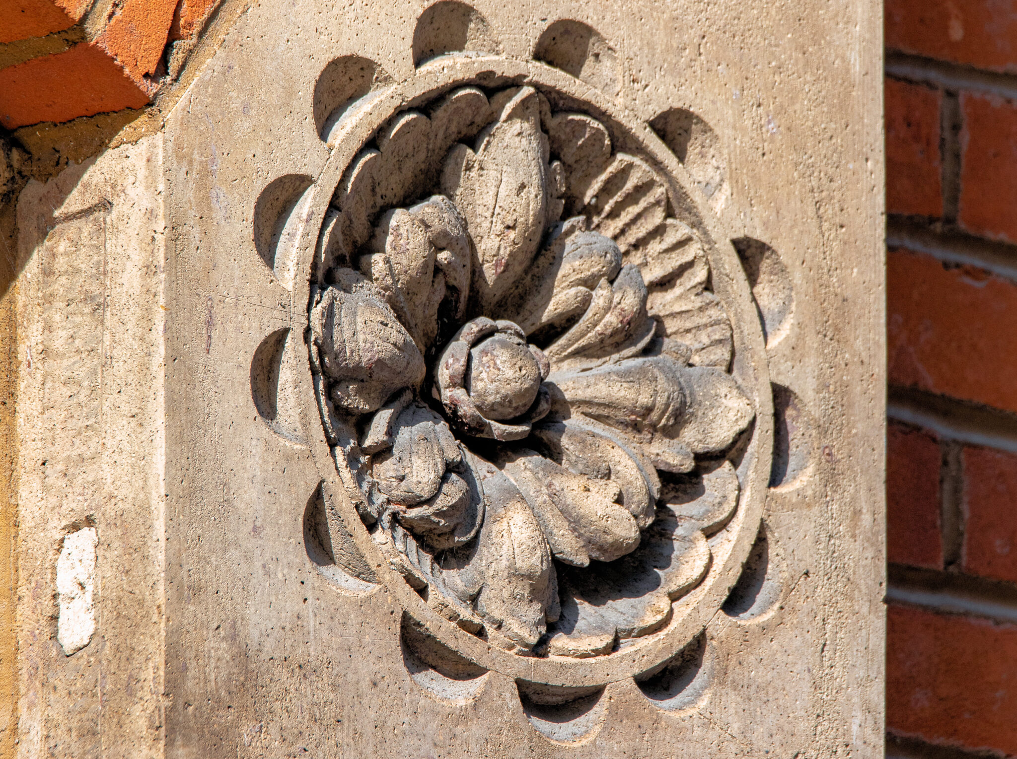 note: the ornament i photographed is original to the house. the other design elements that look similar were recreated – either in cast concrete or stone.