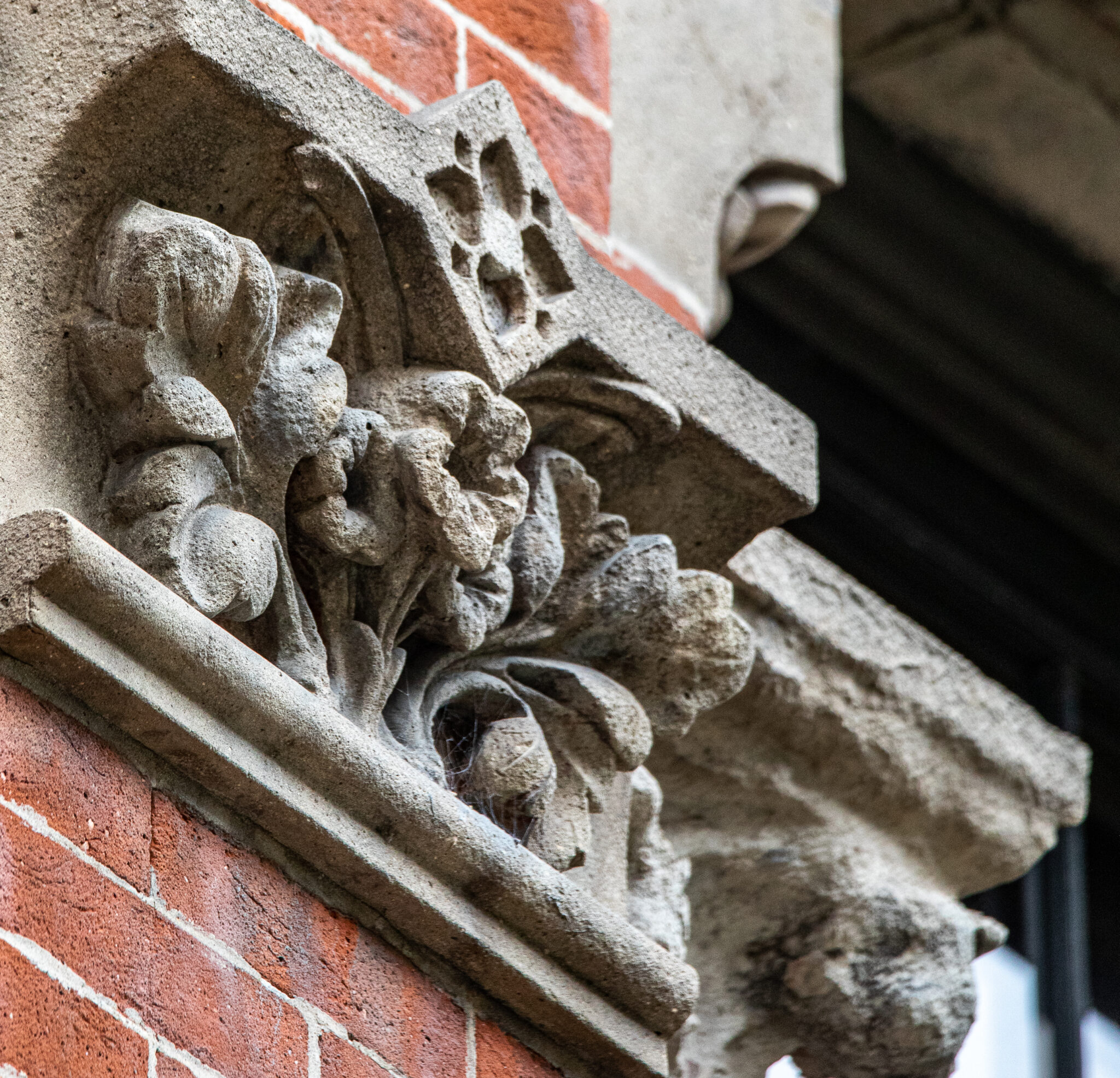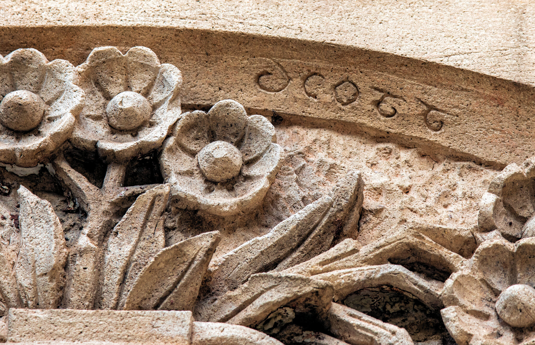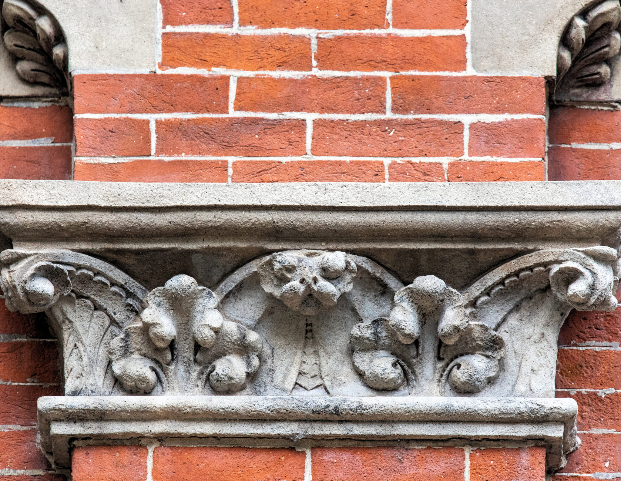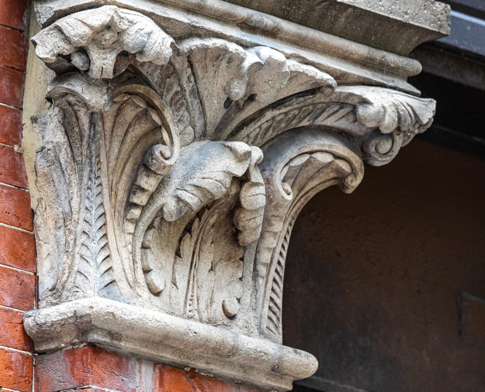 note: the ornament i photographed is original to the house. the other design elements that look similar were recreated – either in cast concrete or stone.