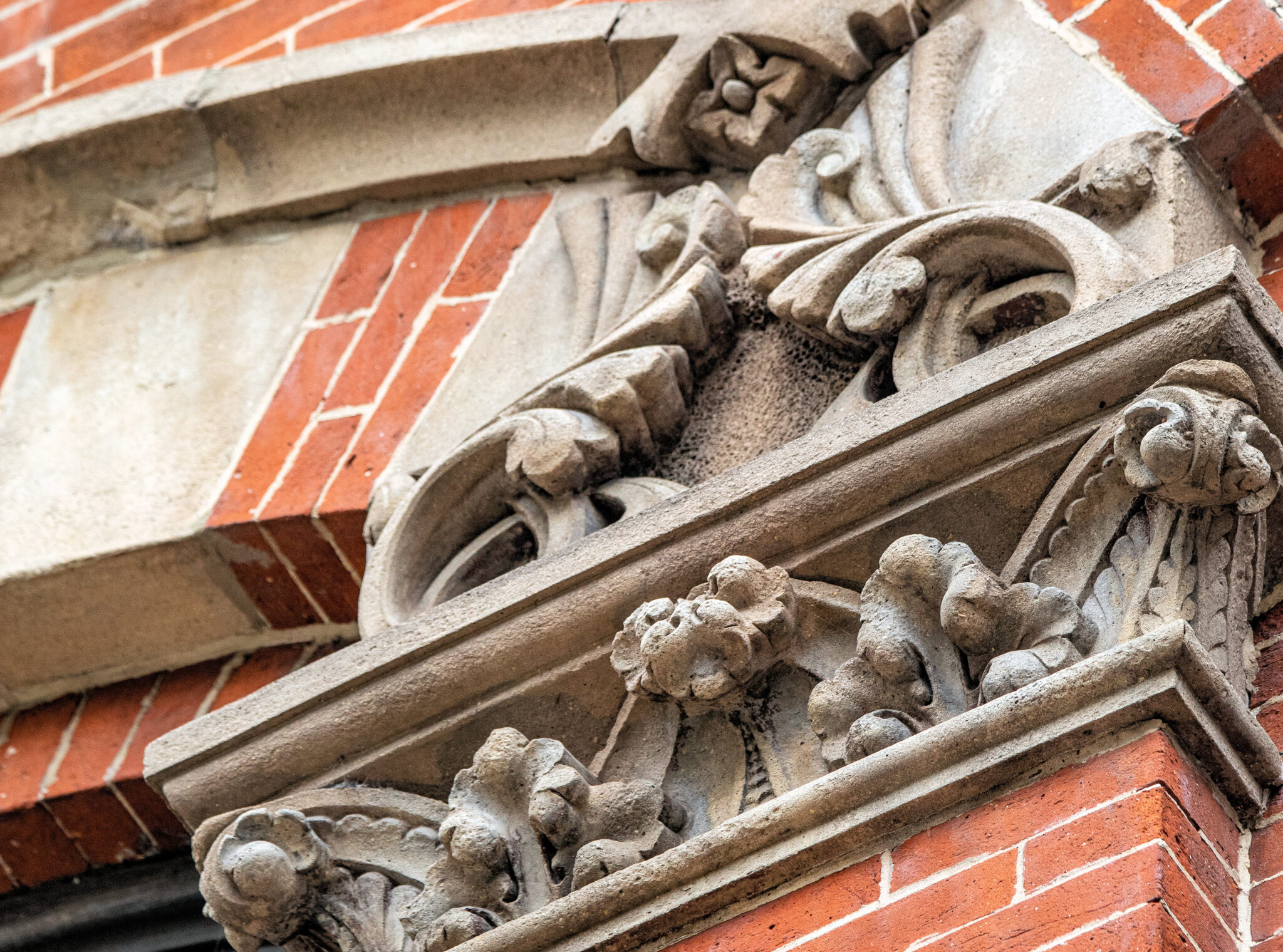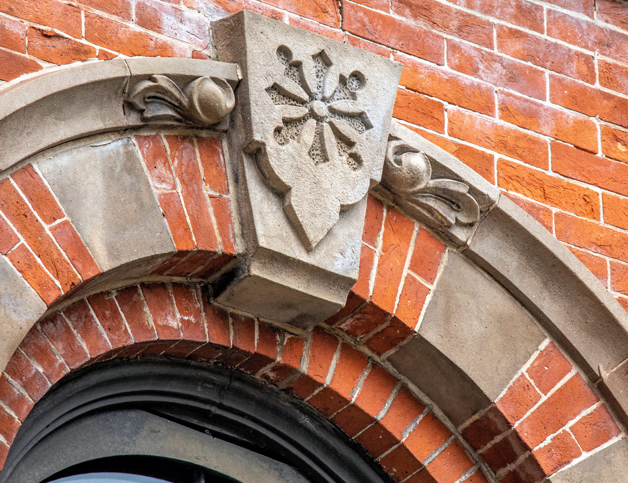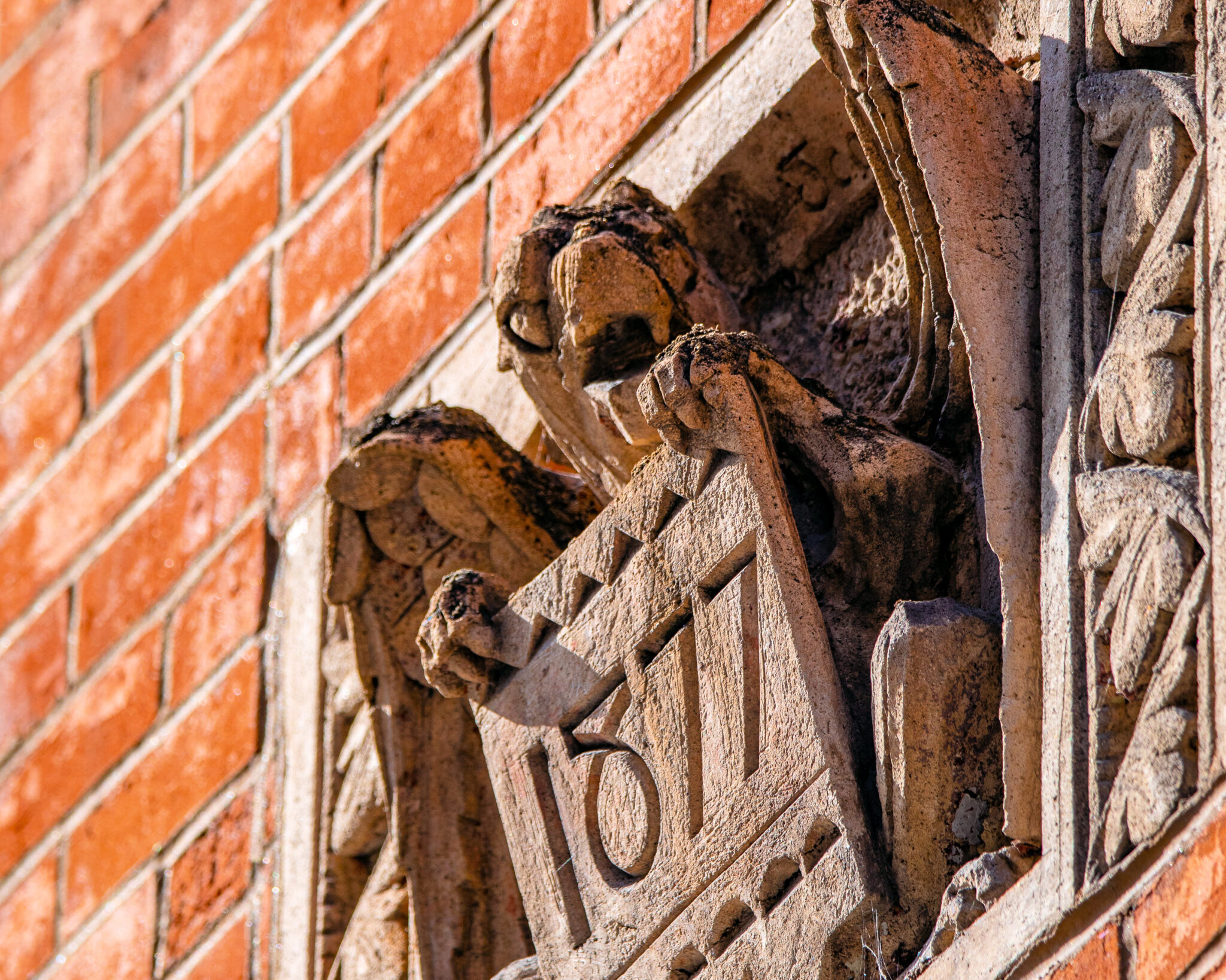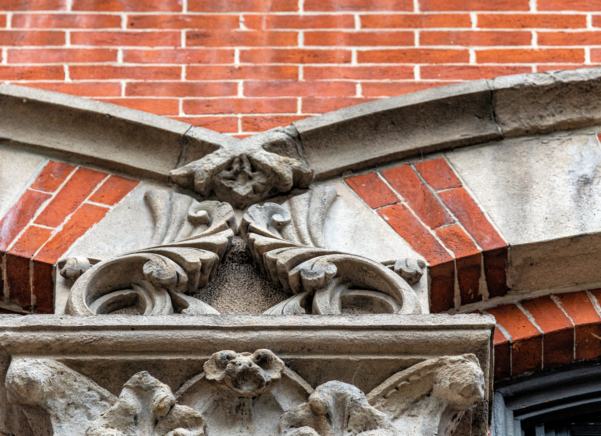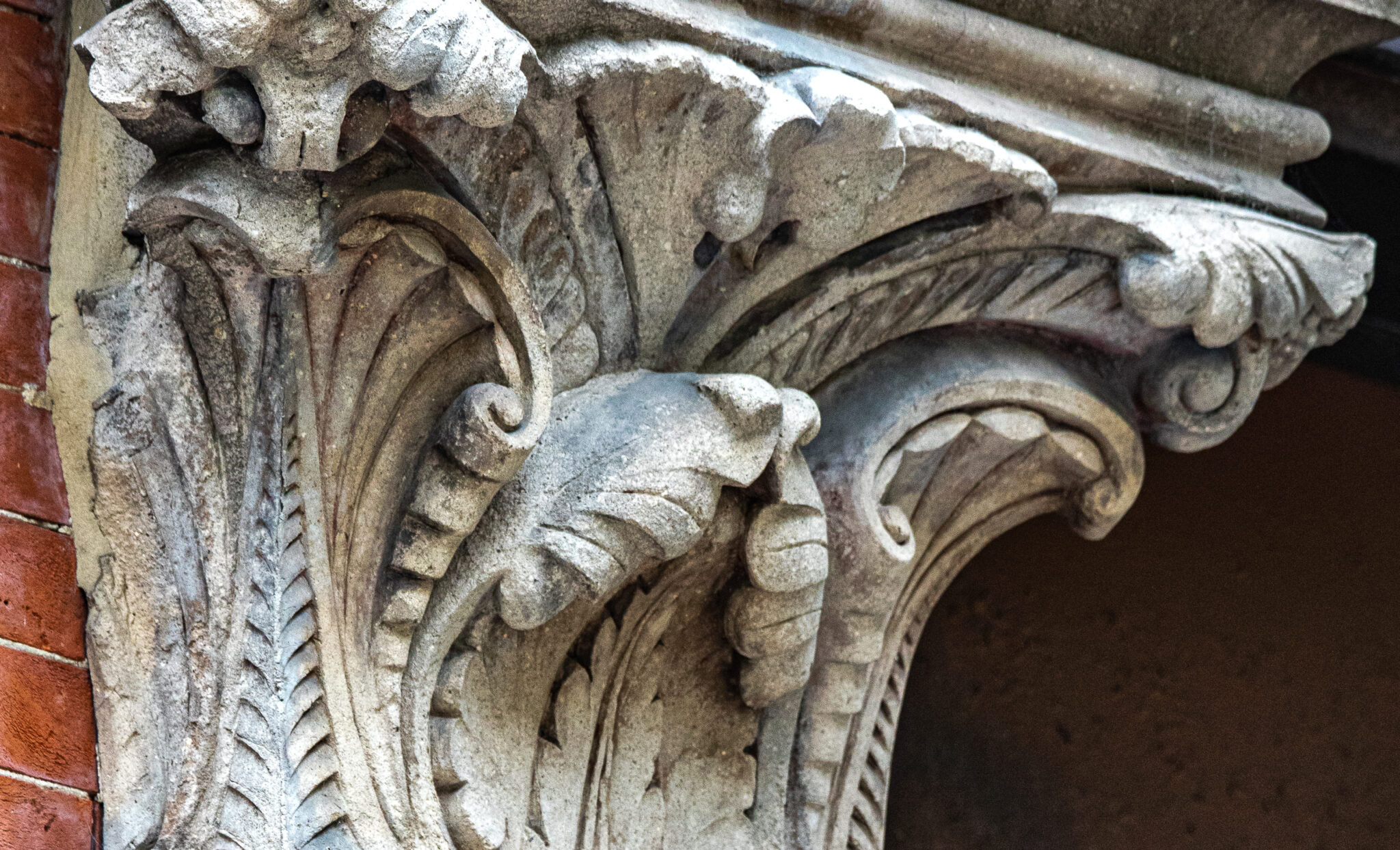 note: the ornament i photographed is original to the house. the other design elements that look similar were recreated – either in cast concrete or stone.