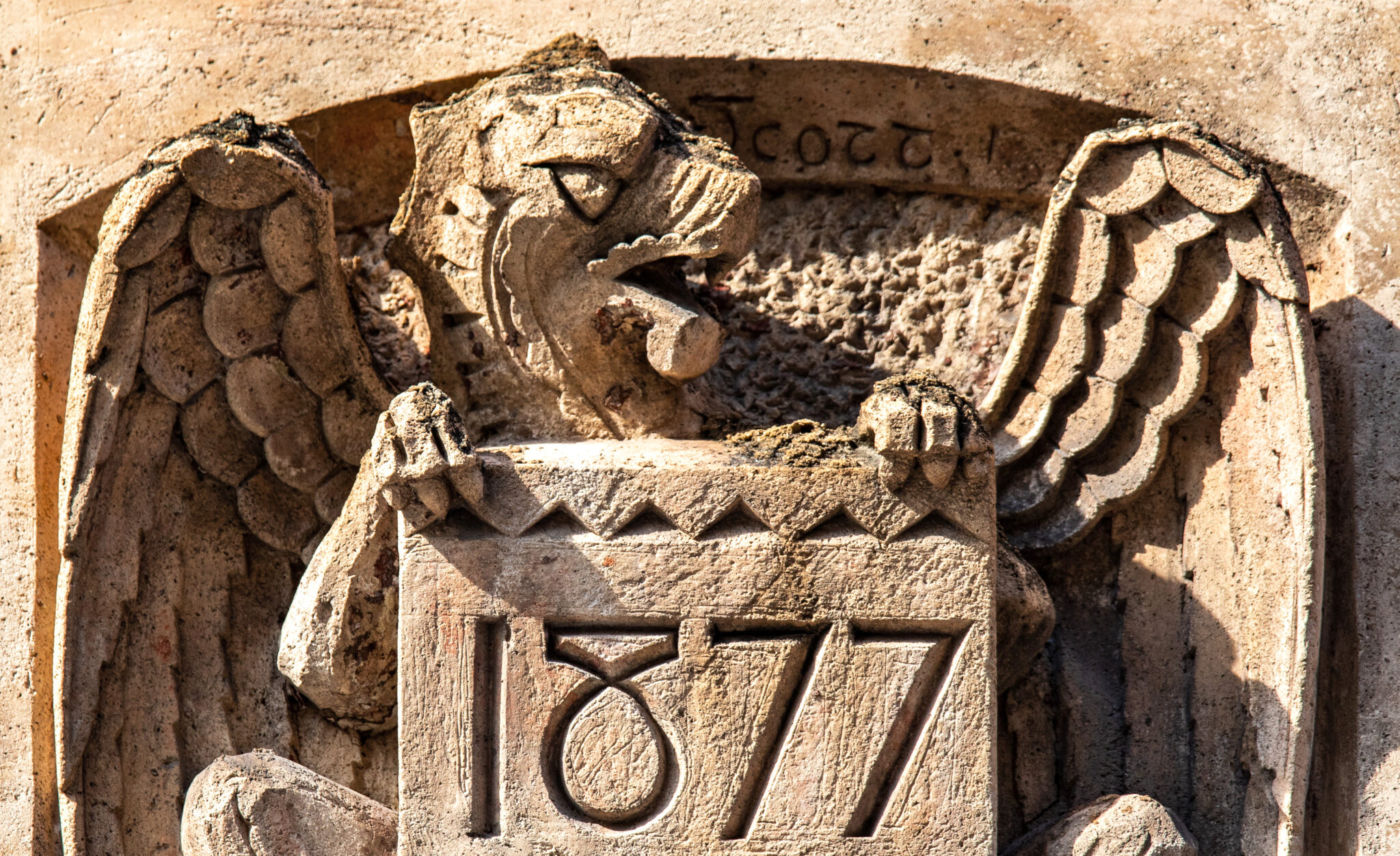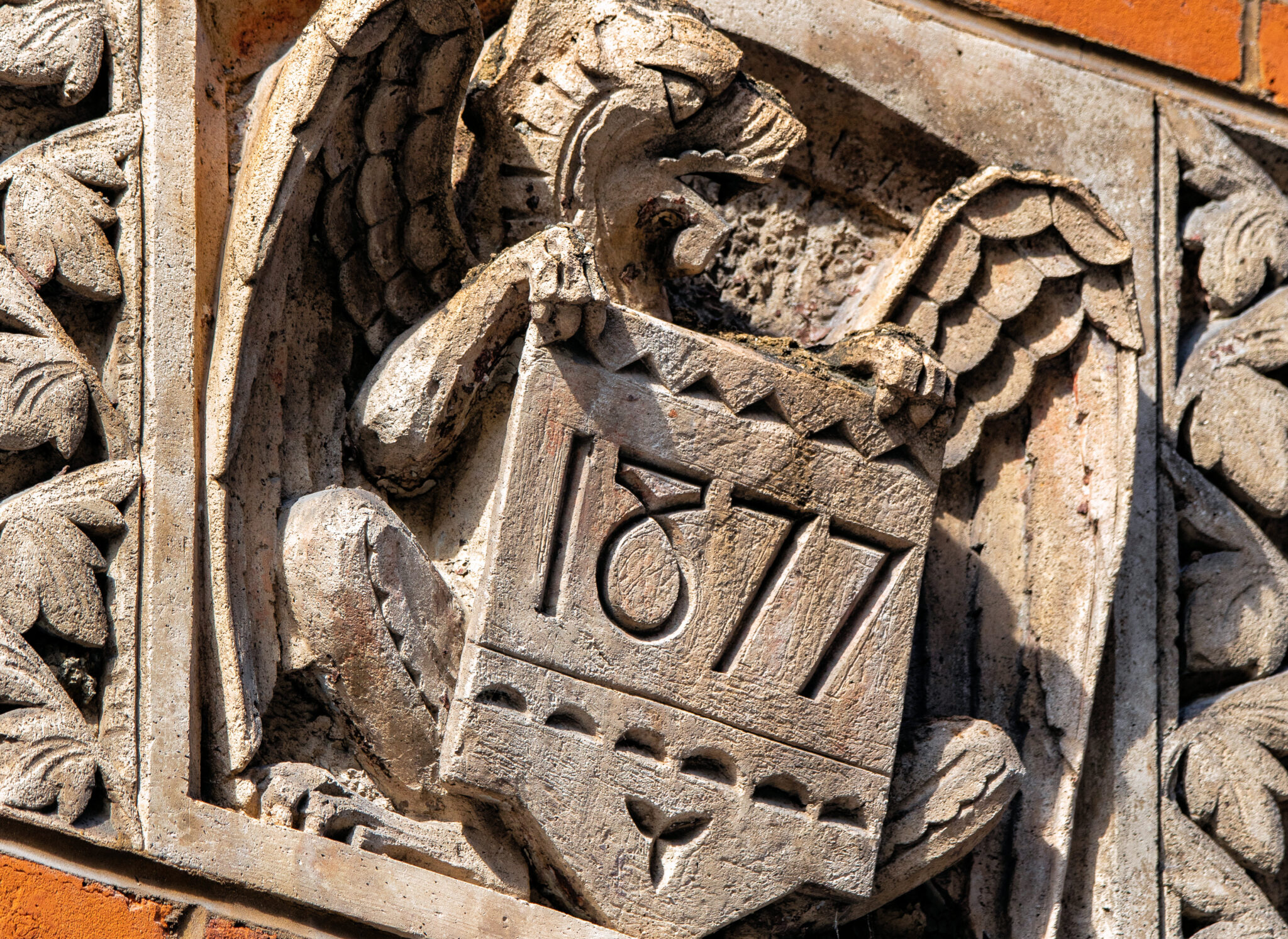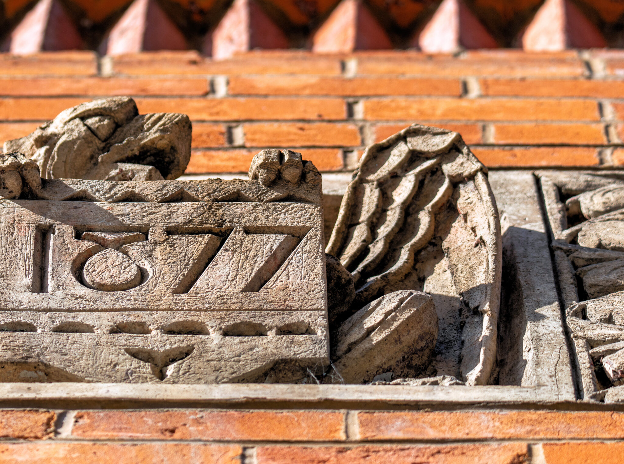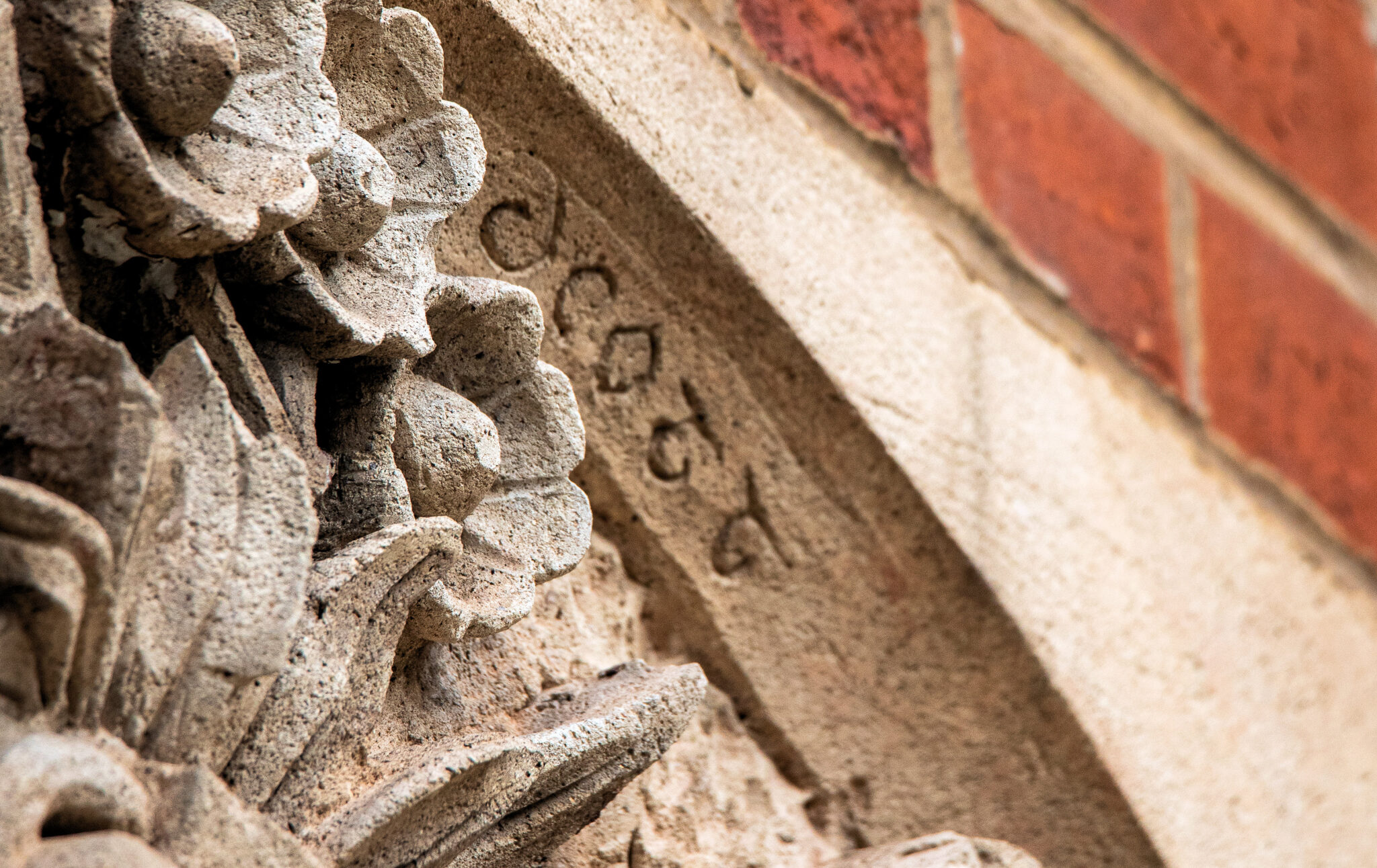 note: the ornament i photographed is original to the house. the other design elements that look similar were recreated – either in cast concrete or stone.
