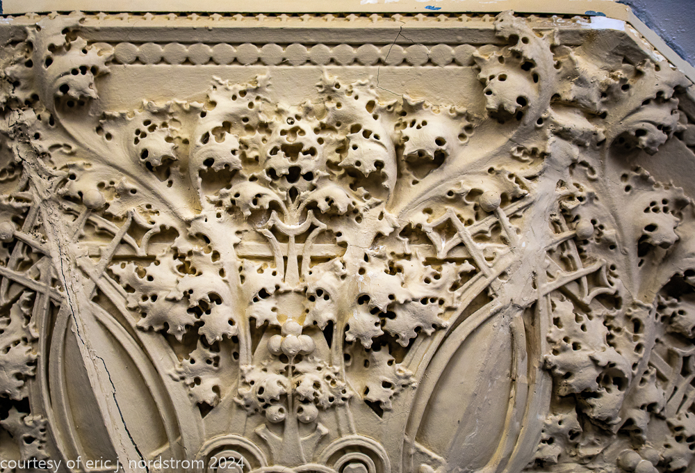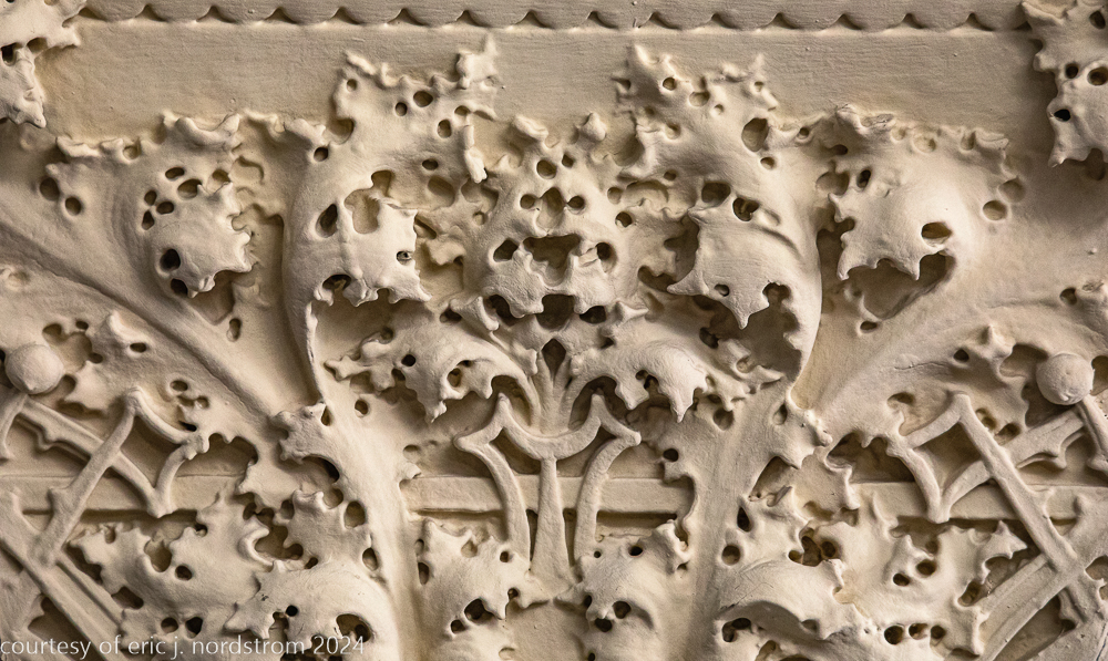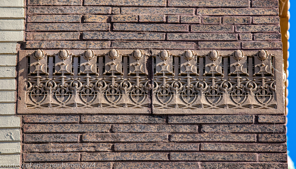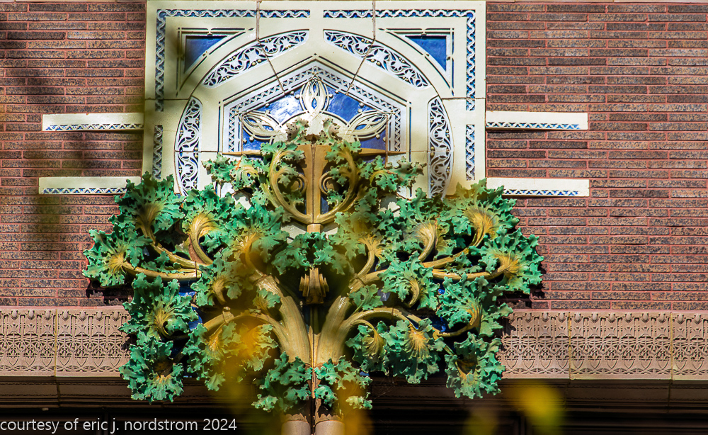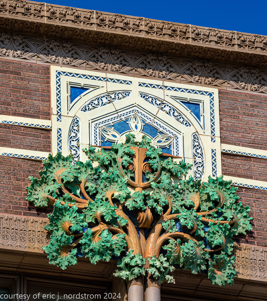 sullivan’s terracotta ornament required considerable hand-sculpting by kristian schneider to achieve the extensive undercuts within the ornament, which was a distinctive feature not seen in sullivan’s bank buildings built around the same time period.