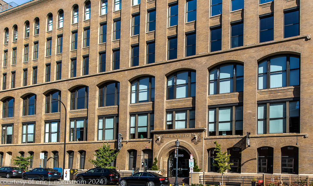 fall 2024 exterior images of kees and colburn’s 9-story deere and webber company warehouse (1910), located at 800 n. washington avenue, minneapolis, mn.