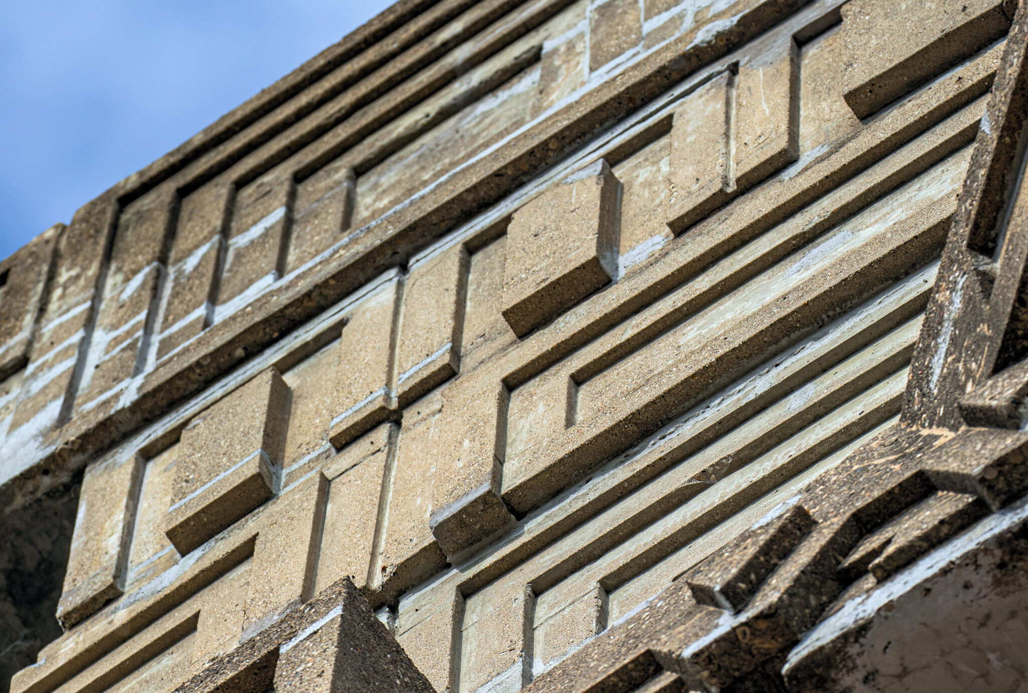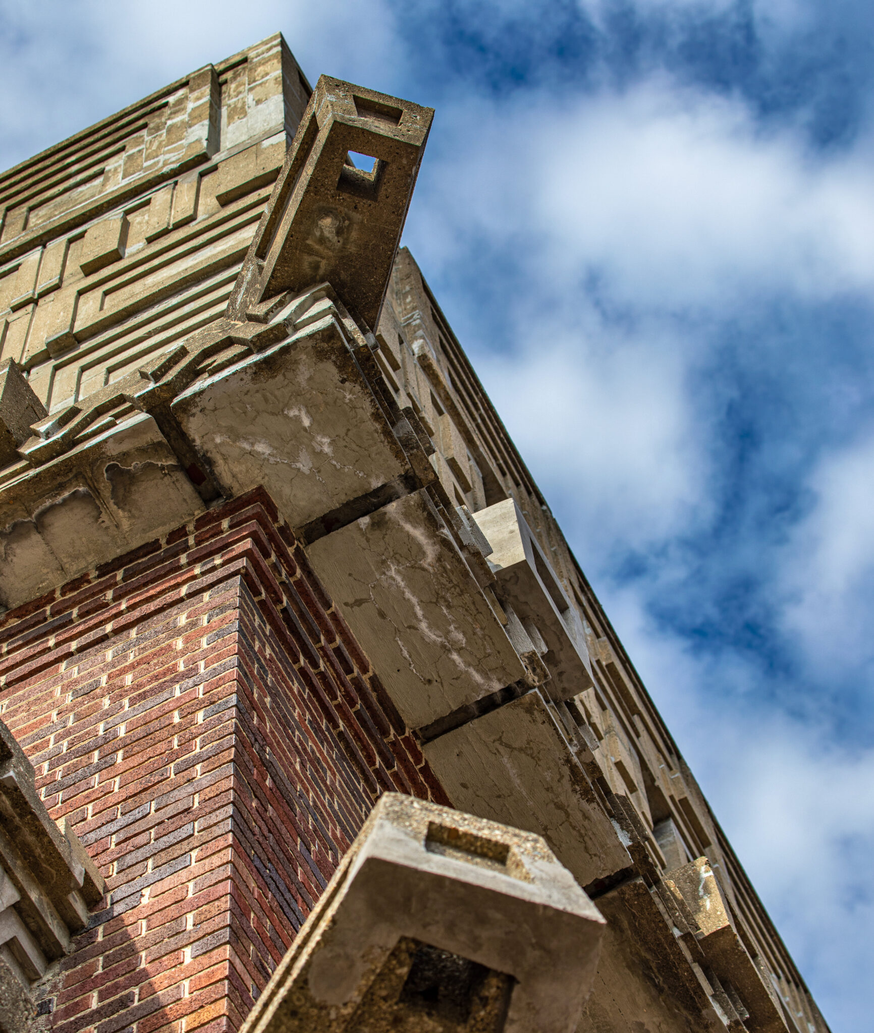 the cast concrete panels were erected by a small crew of masons overseen by general contractor john daughhetee.