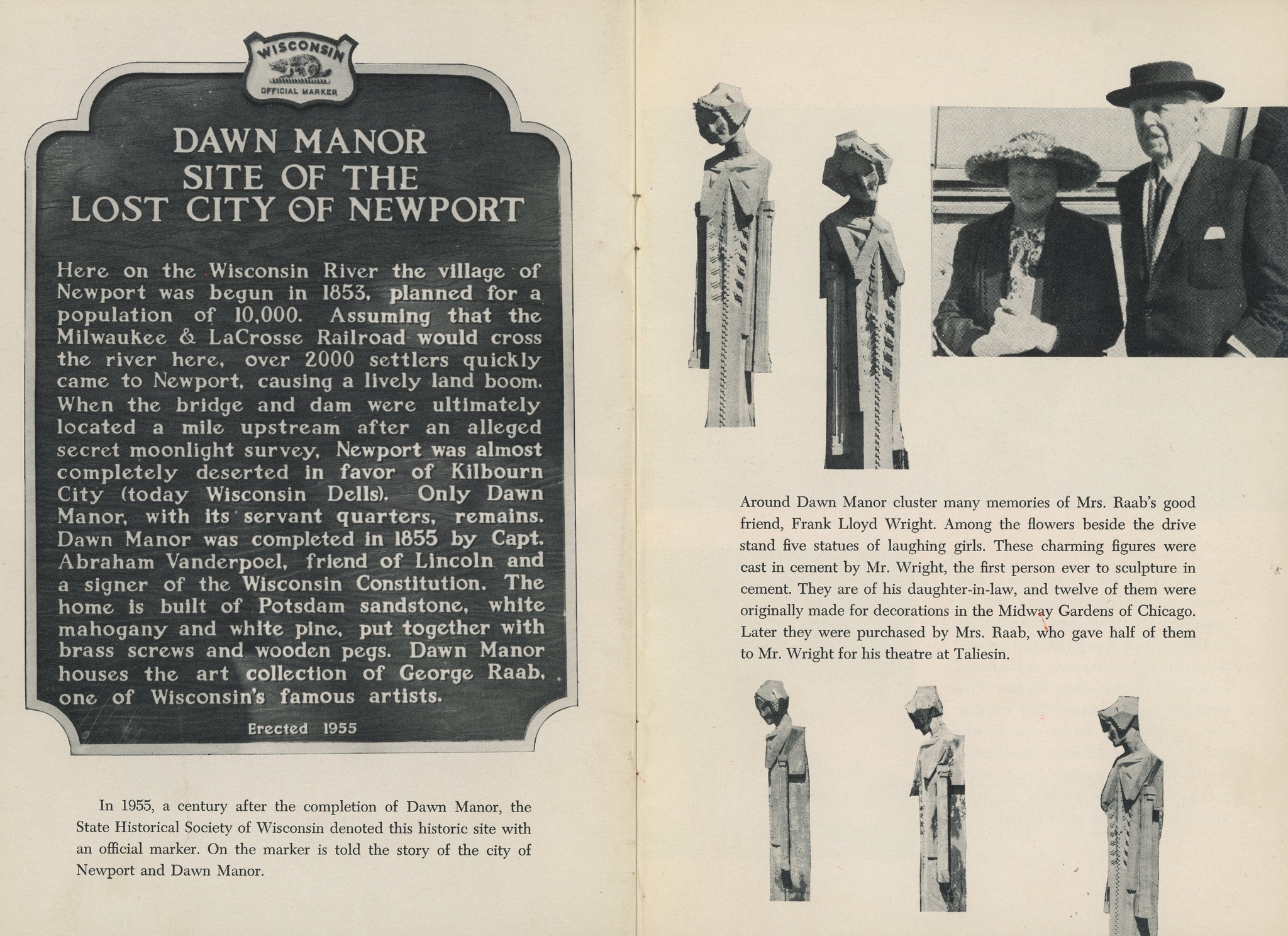 finally, in october 1929, midway gardens was closed permanently and demolished. a testament to wright’s design, the building was so solidly constructed that tearing it down sent the wrecking company into bankruptcy. the majority of the rubble was bulldozed into lake michigan to be used as a breakwall. several of the sprites and cement blocks survived the demolition because the original sculptor, iannelli, managed to retrieve a few segments. also, demolition contractor, william j. newman, took several sculptures and cement blocks to his farm in wisconsin. many years later when wright heard of their survival, he purchased them and they remained with his estate. other sculptures that escaped demolition can be found in private collections and museums.