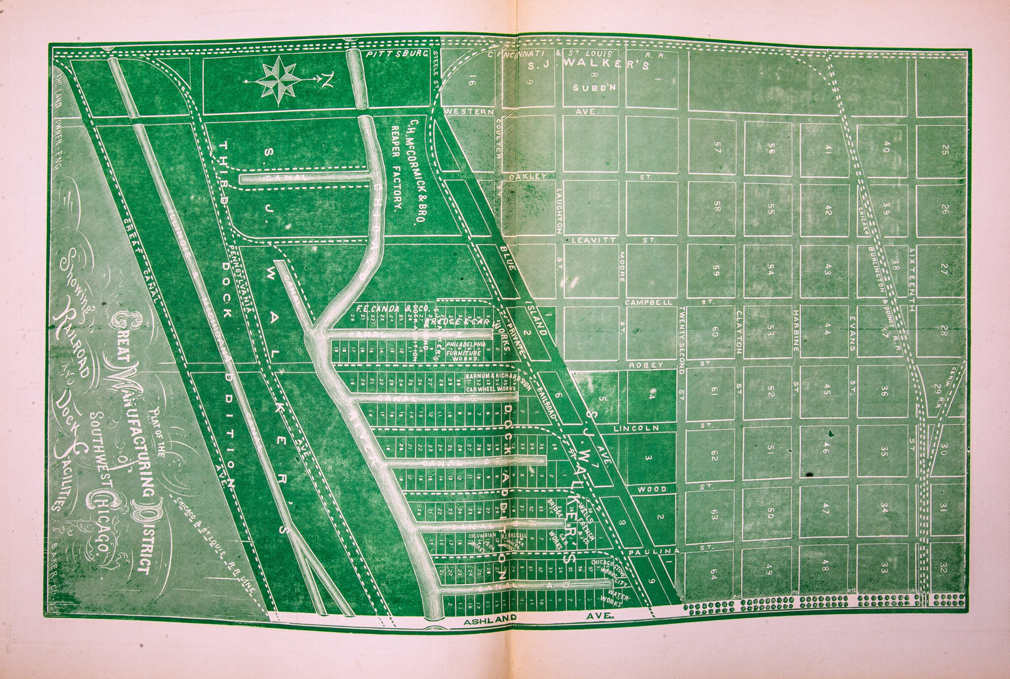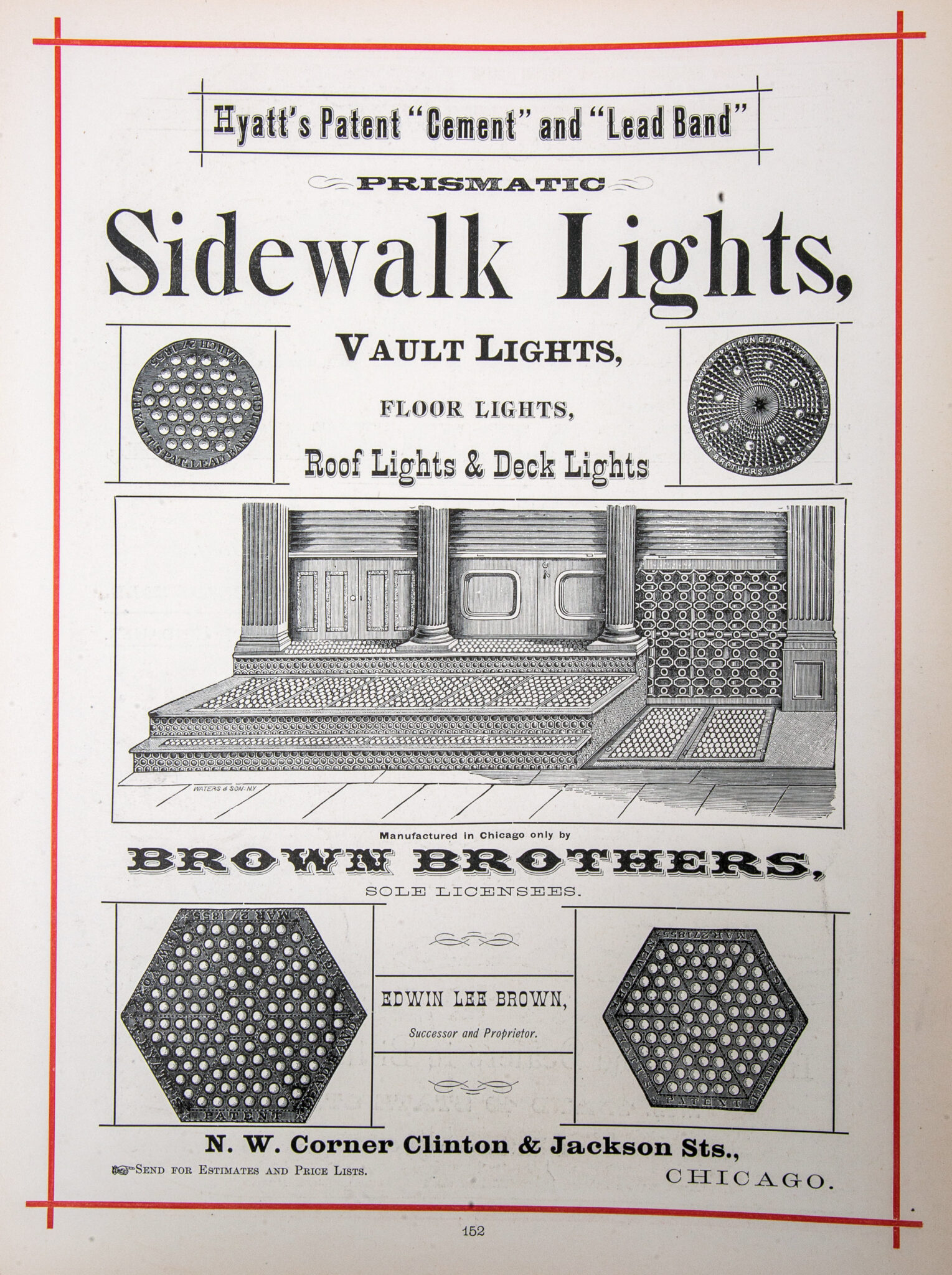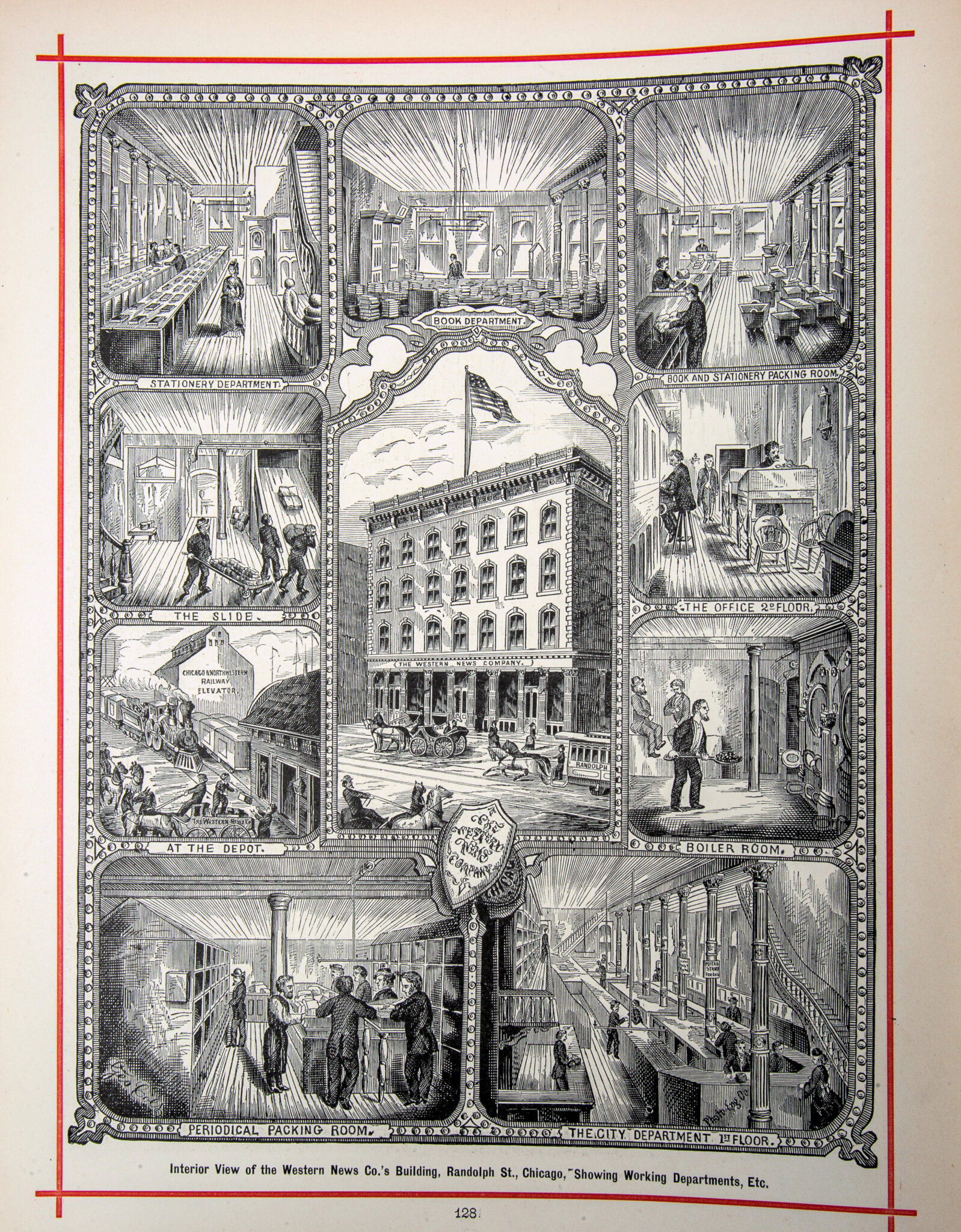 scanned pages (including cover and advertisements) from a recently found and exceptionally rare oversized hardbound book entitled “the merchants and manufacturers of chicago : being a complete history of our mercantile and manufacturing interests, and their progress since the fire : illustrated with upwards of one hundred fine wood engravings, printed with chas. eneu johnson & co.’s fine wood cut ink.”