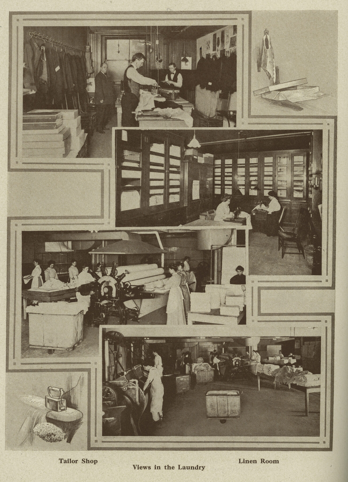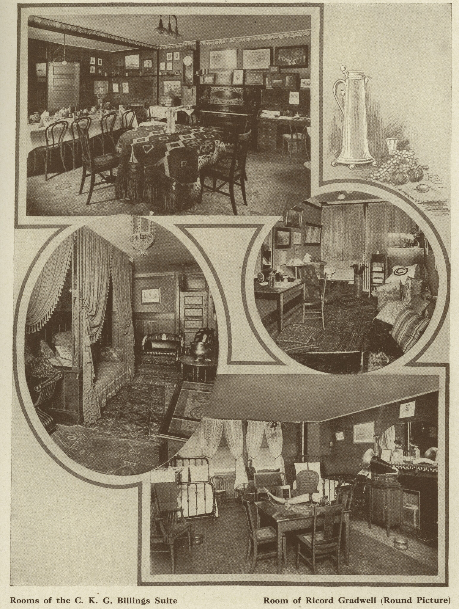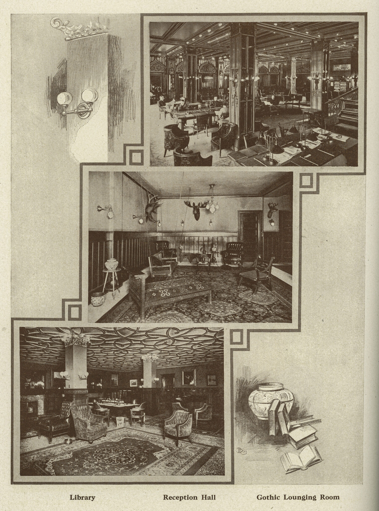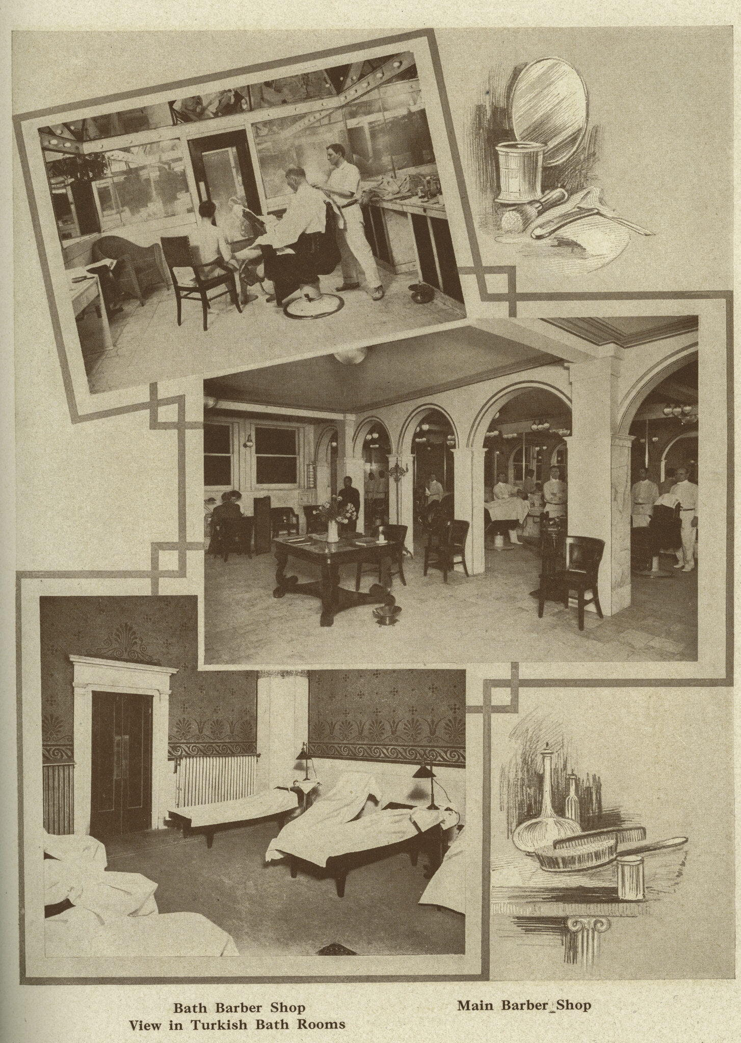 the inclusion of suites and rooms of notable guests offer a unique and personal touch against the backdrop of the more photogenic and noisy grand spaces (e.g., main dining room, library, lounging room, billiards room, etc.). the utilitarian shops and spaces provided for services and maintenance, round out the visual narrative of bustling activity within the walls of the cojoined buildings.