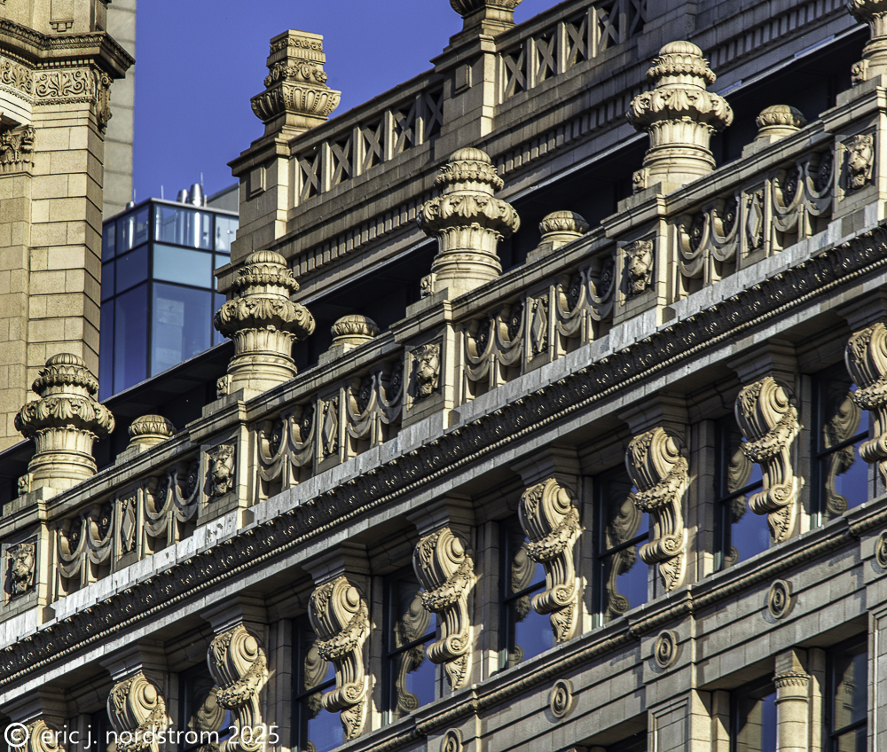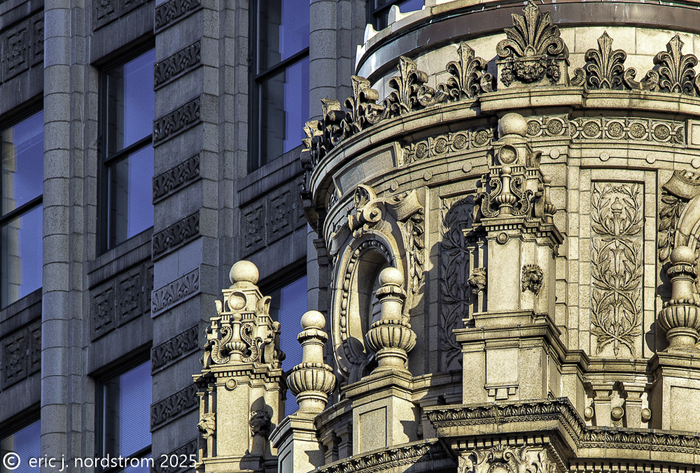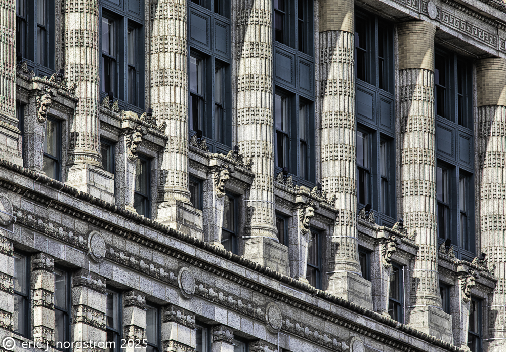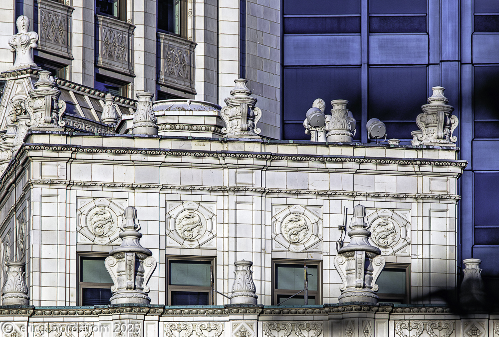 2024-2025 photographic images from bldg. 51 archive’s chicago architectural ornament survey (caos) are provided below. the ever-expanding photo-documentation project (over 500,000 images) focuses on systematically recording any and all architectural ornament located on historically important 19th and early 20th century extant buildings located in downtown chicago and surrounding neighborhoods.