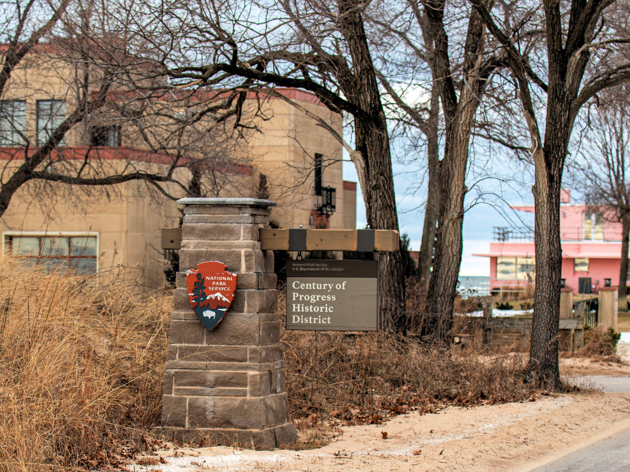 the century of progress architectural district is a historic district in beverly shores, indiana. the district is on lake shore drive within the indiana dunes national park. the district comprises five buildings, all from the homes of tomorrow exhibition of the 1933 century of progress world’s fair which took place in chicago. intended to display the future of housing, the century of progress homes reflect a variety of designs, experimental materials and new technologies. on june 30, 1986, the district was listed on the national register of historic places as the beverly shores–century of progress architectural district.