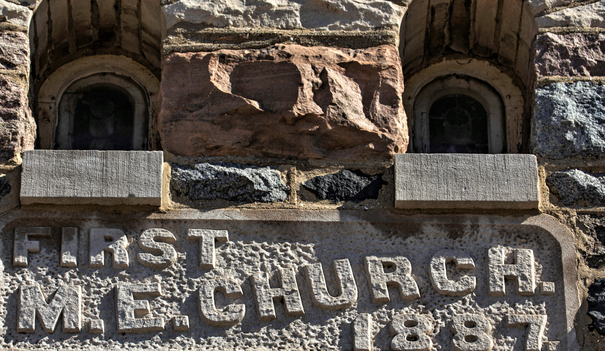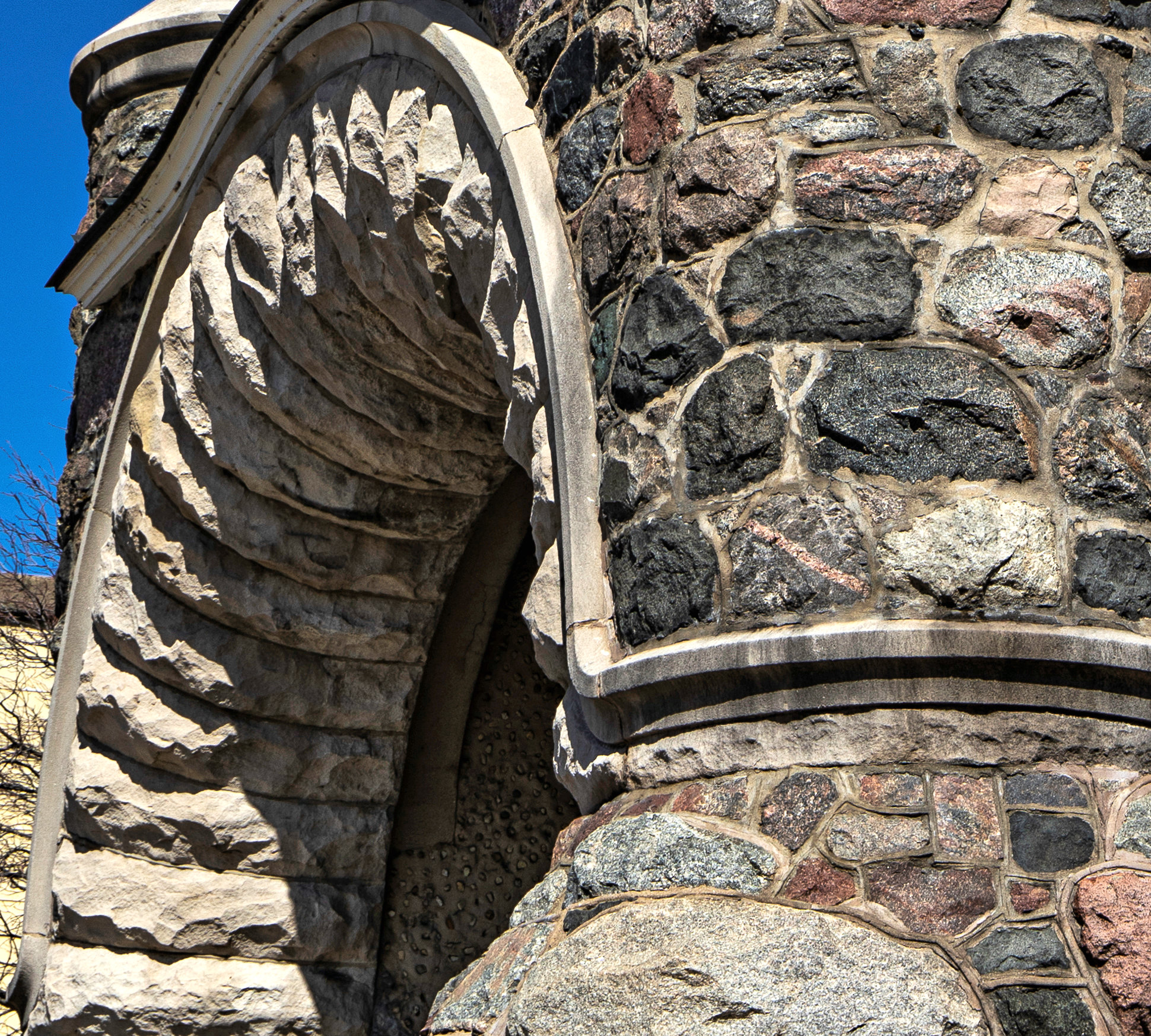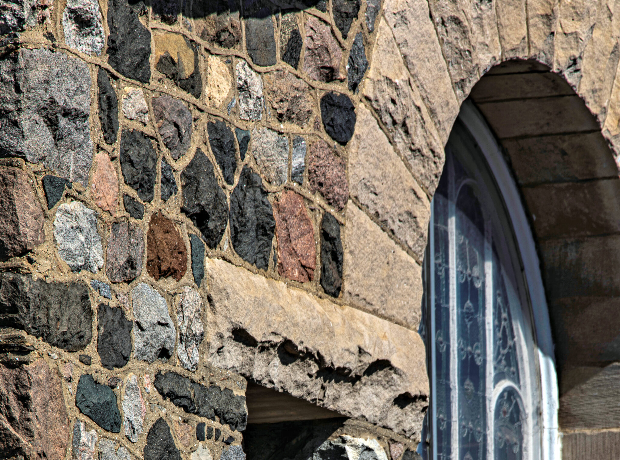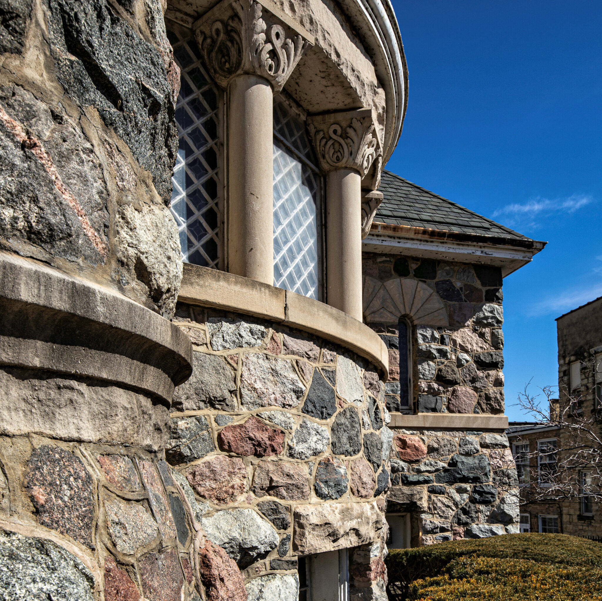 detailed photographic survey of solon spencer beman’s first methodist church of batavia, located at 8 north batavia avenue, batavia, il. the richardsonian romanesque style church’s exterior is comprised of multi-coloed rough-faced stones or boulders, harvested from local building contractor i.s. stephens’s mill creek farm in batavia.