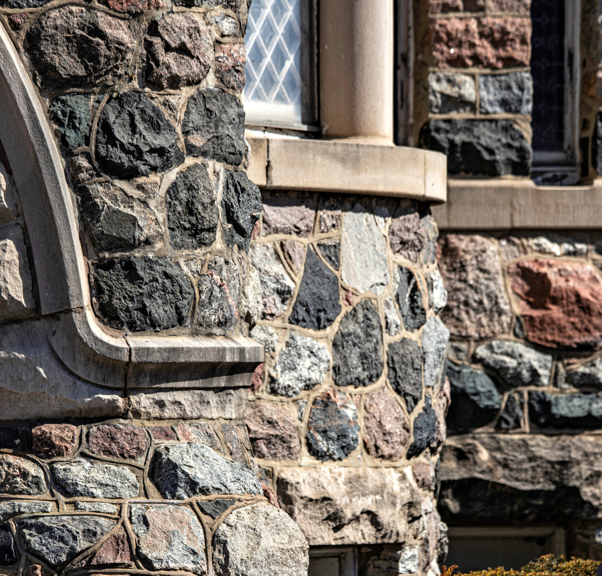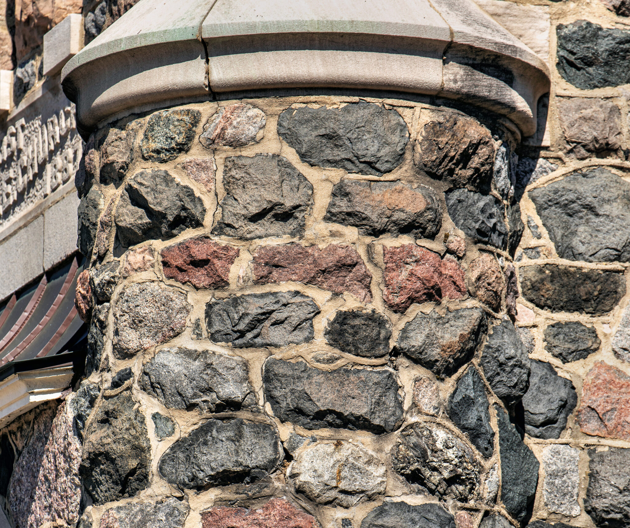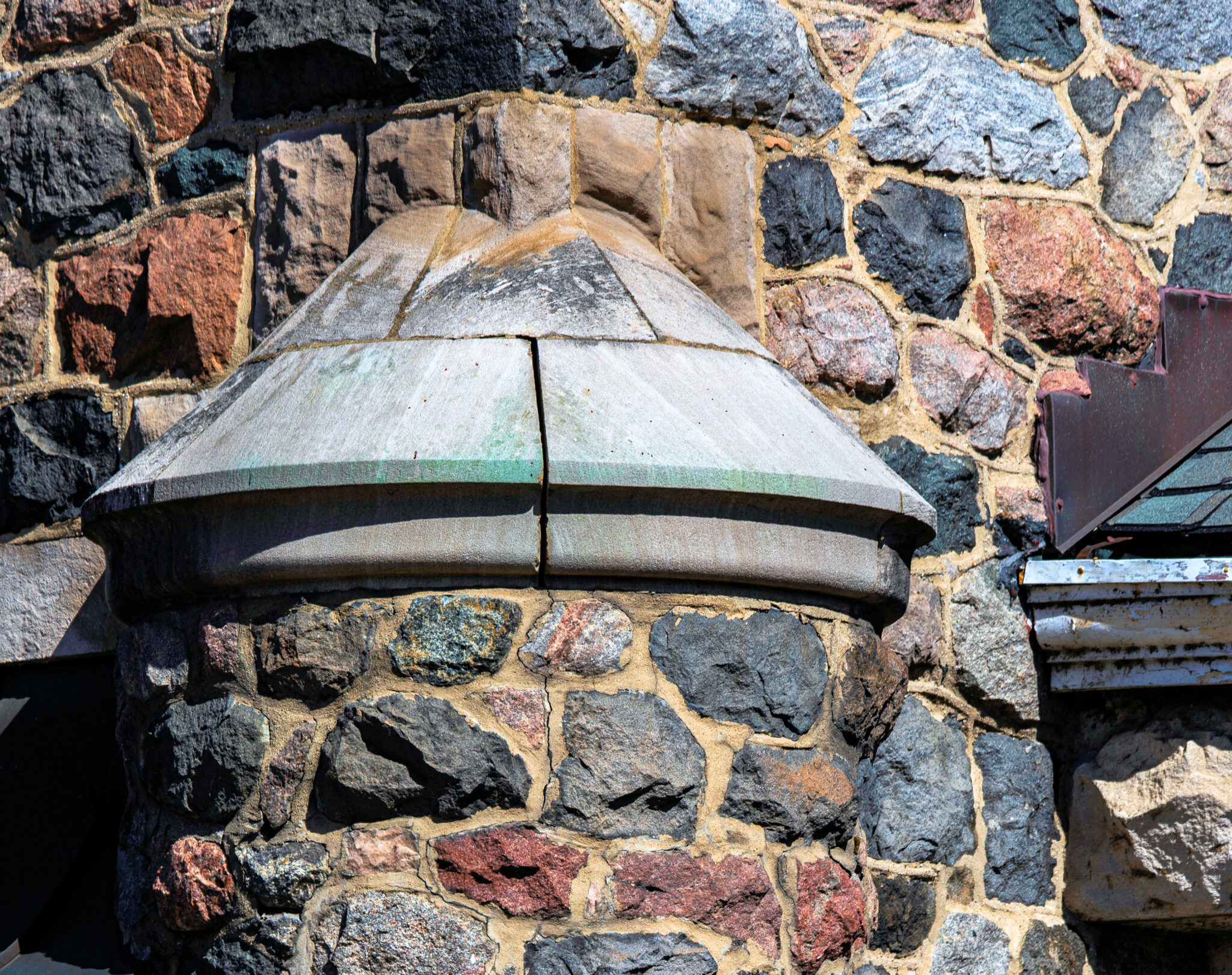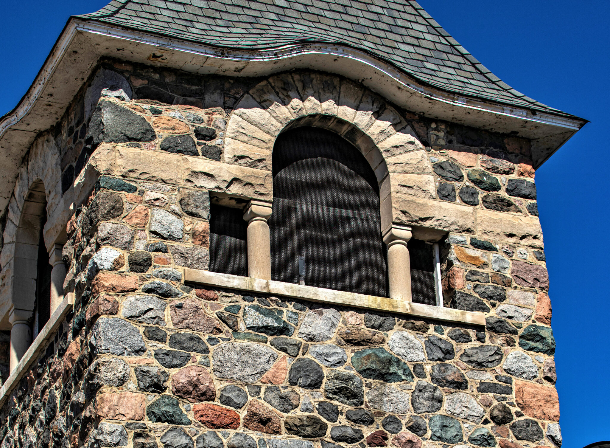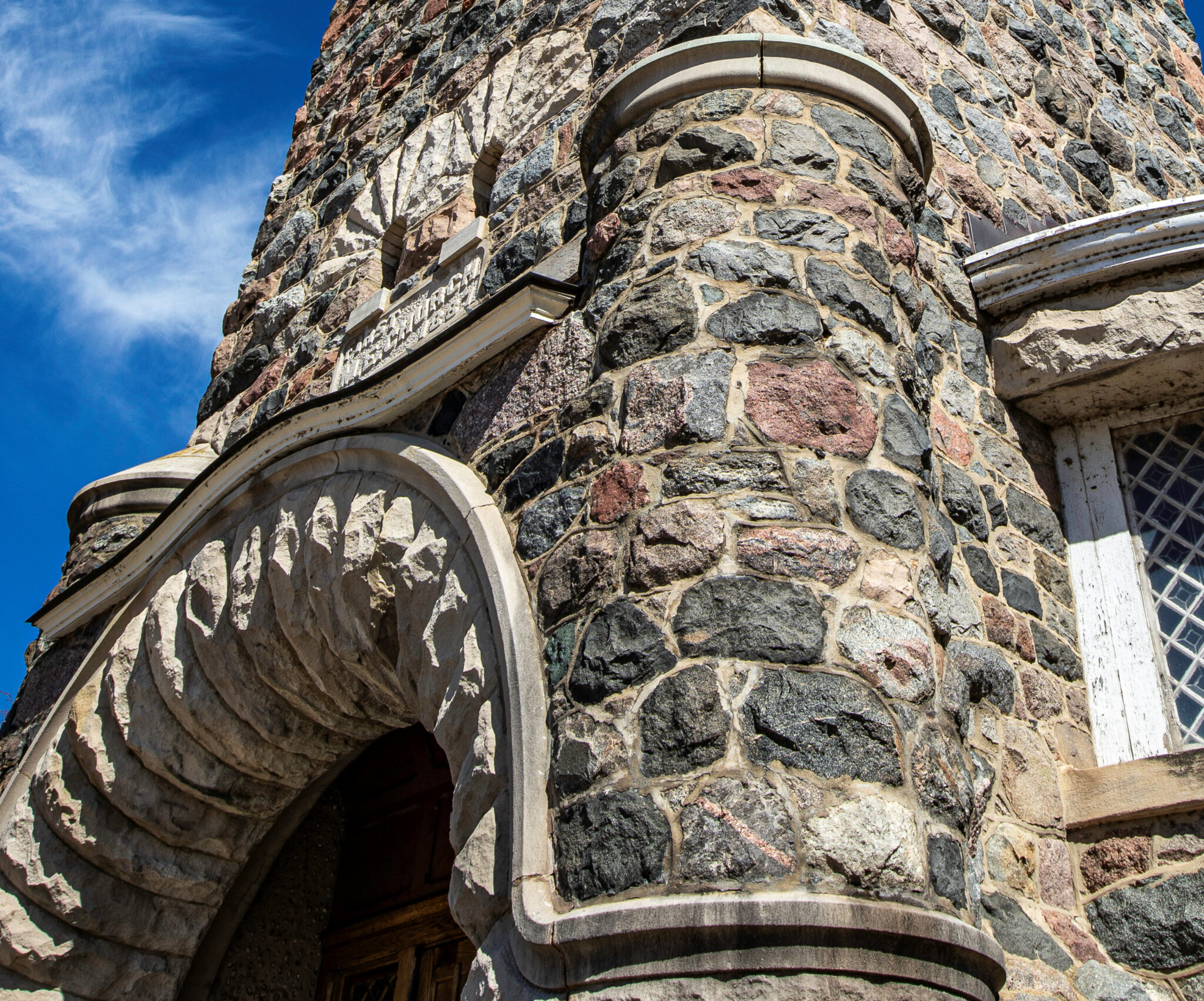 detailed photographic survey of solon spencer beman’s first methodist church of batavia, located at 8 north batavia avenue, batavia, il. the richardsonian romanesque style church’s exterior is comprised of multi-coloed rough-faced stones or boulders, harvested from local building contractor i.s. stephens’s mill creek farm in batavia.
