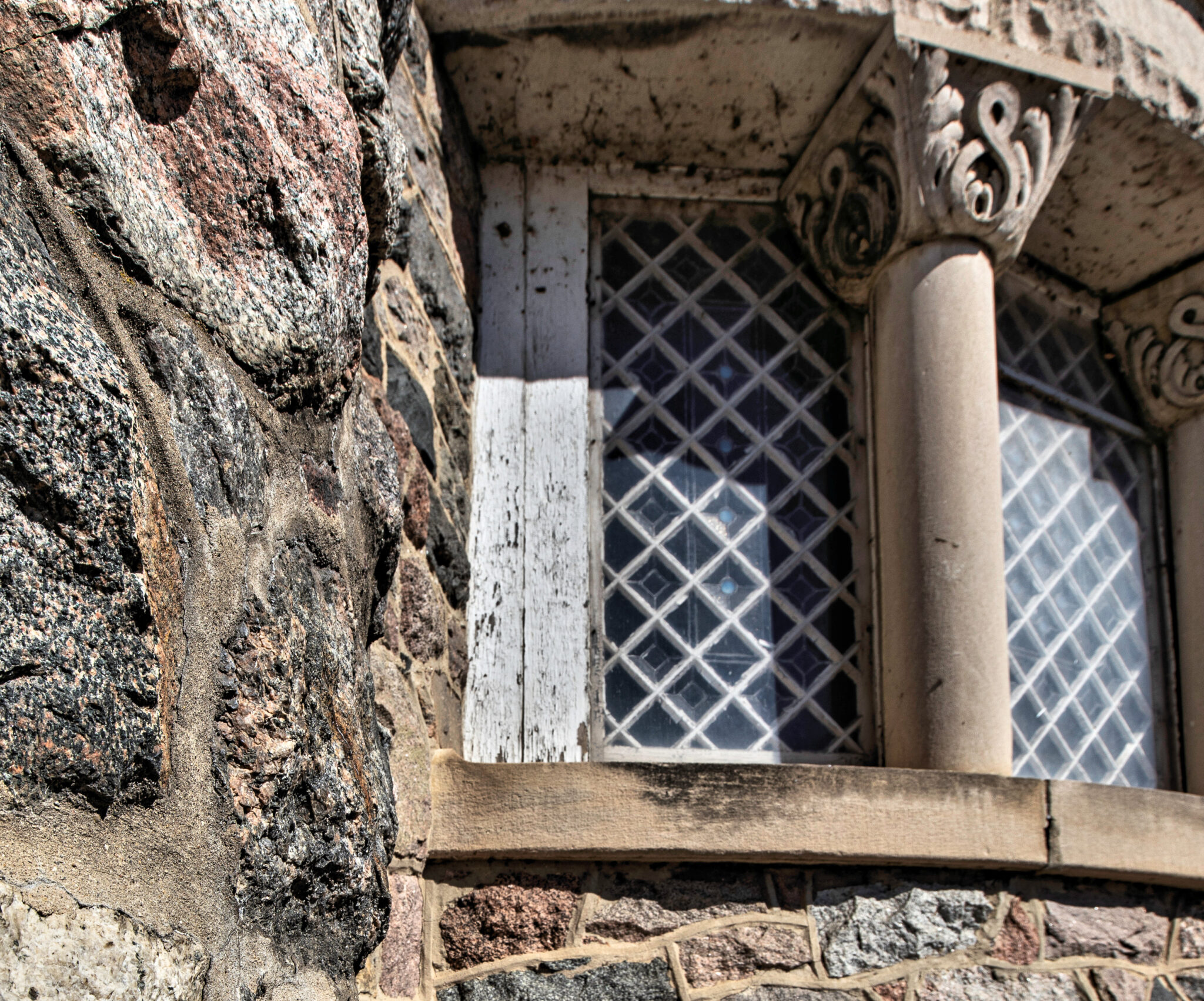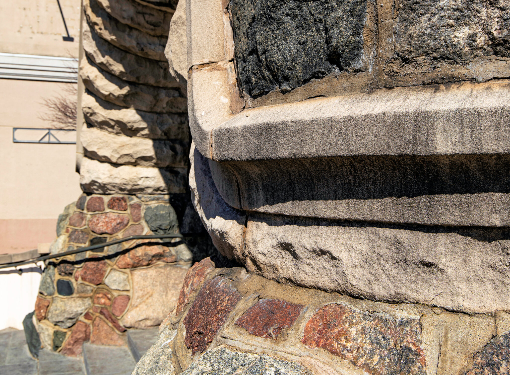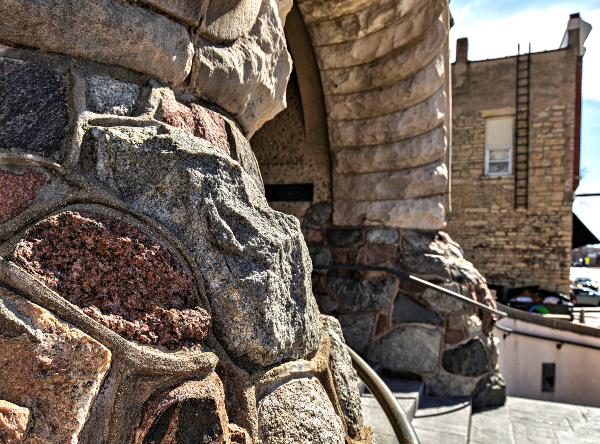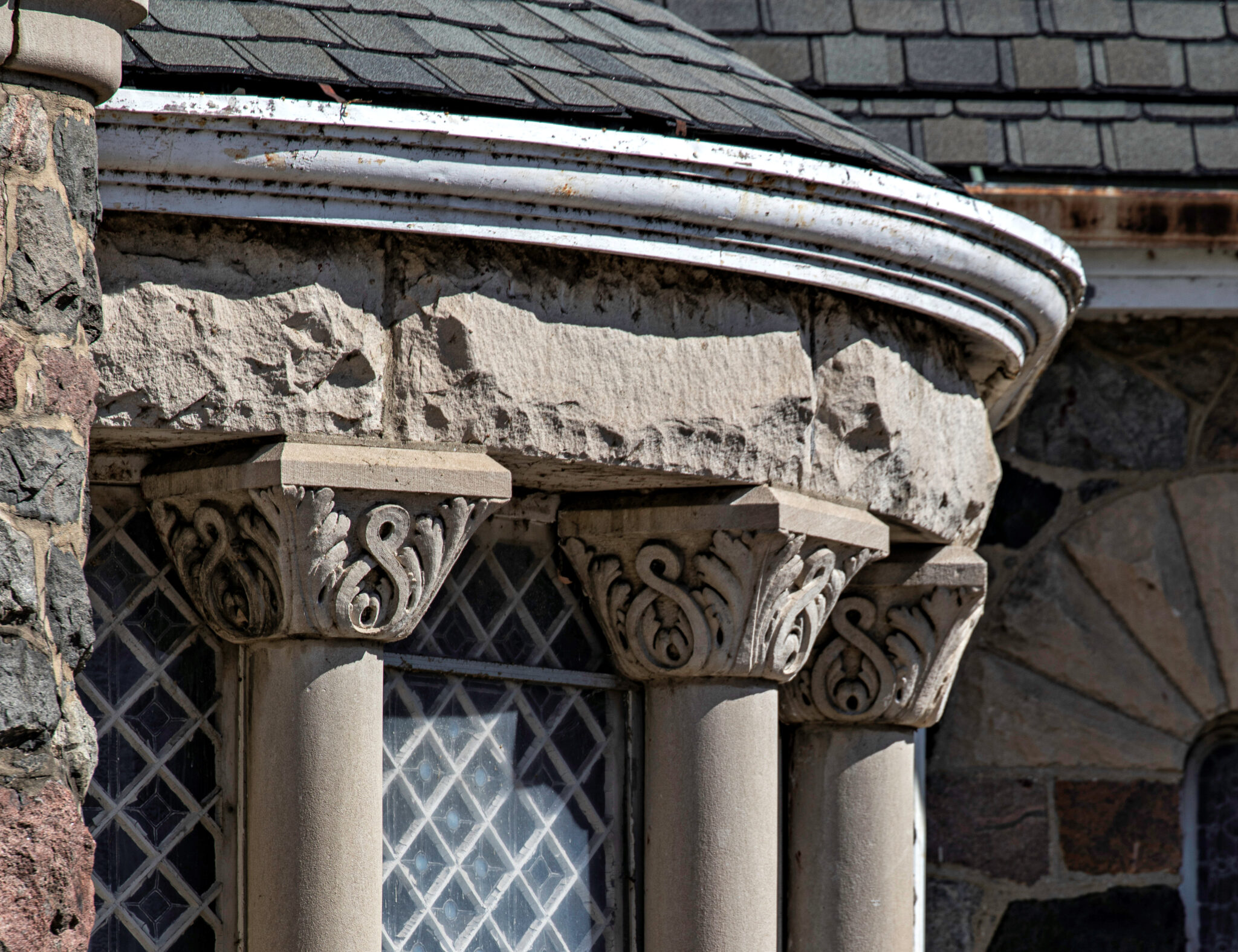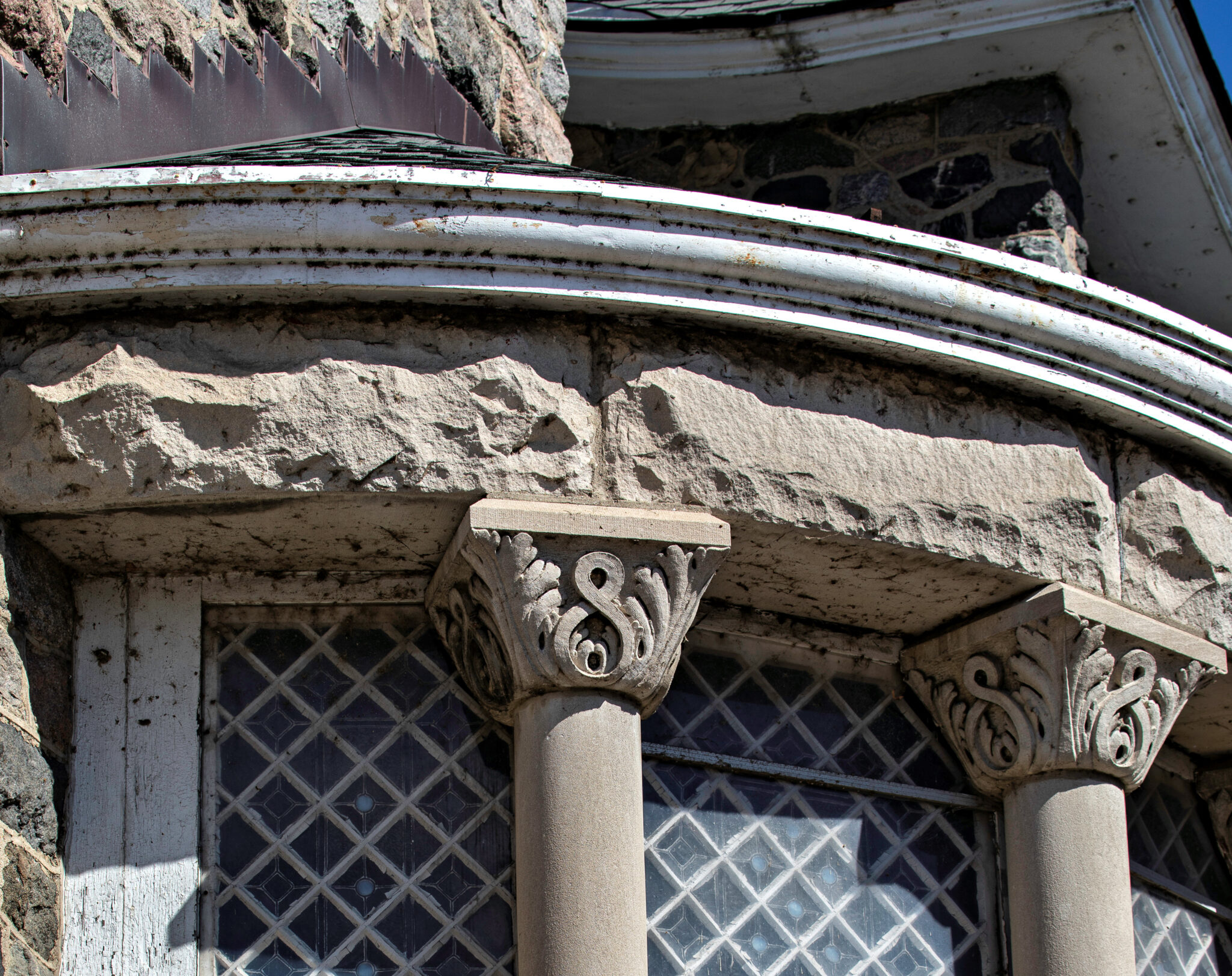 detailed photographic survey of solon spencer beman’s first methodist church of batavia, located at 8 north batavia avenue, batavia, il. the richardsonian romanesque style church’s exterior is comprised of multi-coloed rough-faced stones or boulders, harvested from local building contractor i.s. stephens’s mill creek farm in batavia.