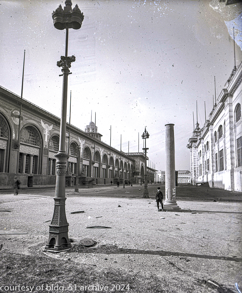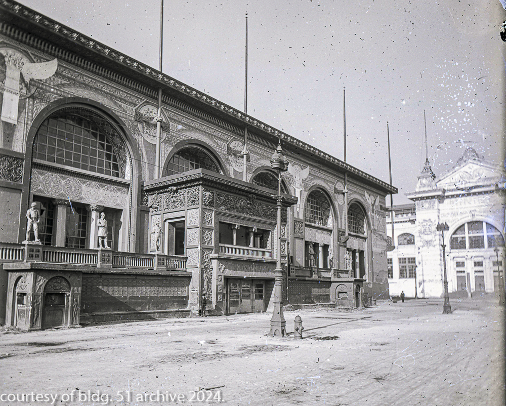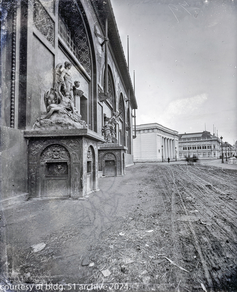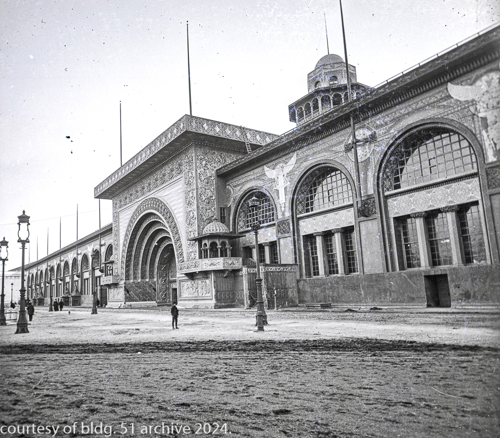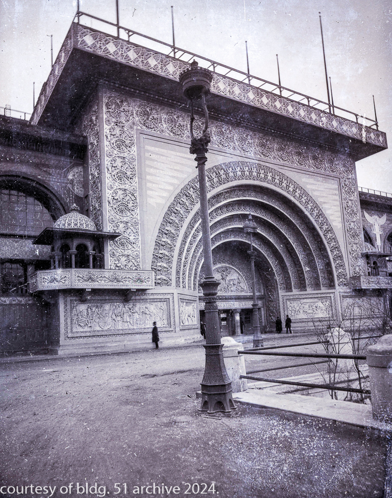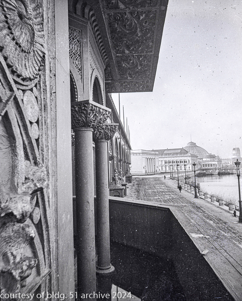 the transportation building’s ornament is in the early stages of declination from deferred maintenance, which is expected, given the impermanence of the materials used in its construction and the fair had “officially” closed weeks earlier, on october 30th, 1893.
