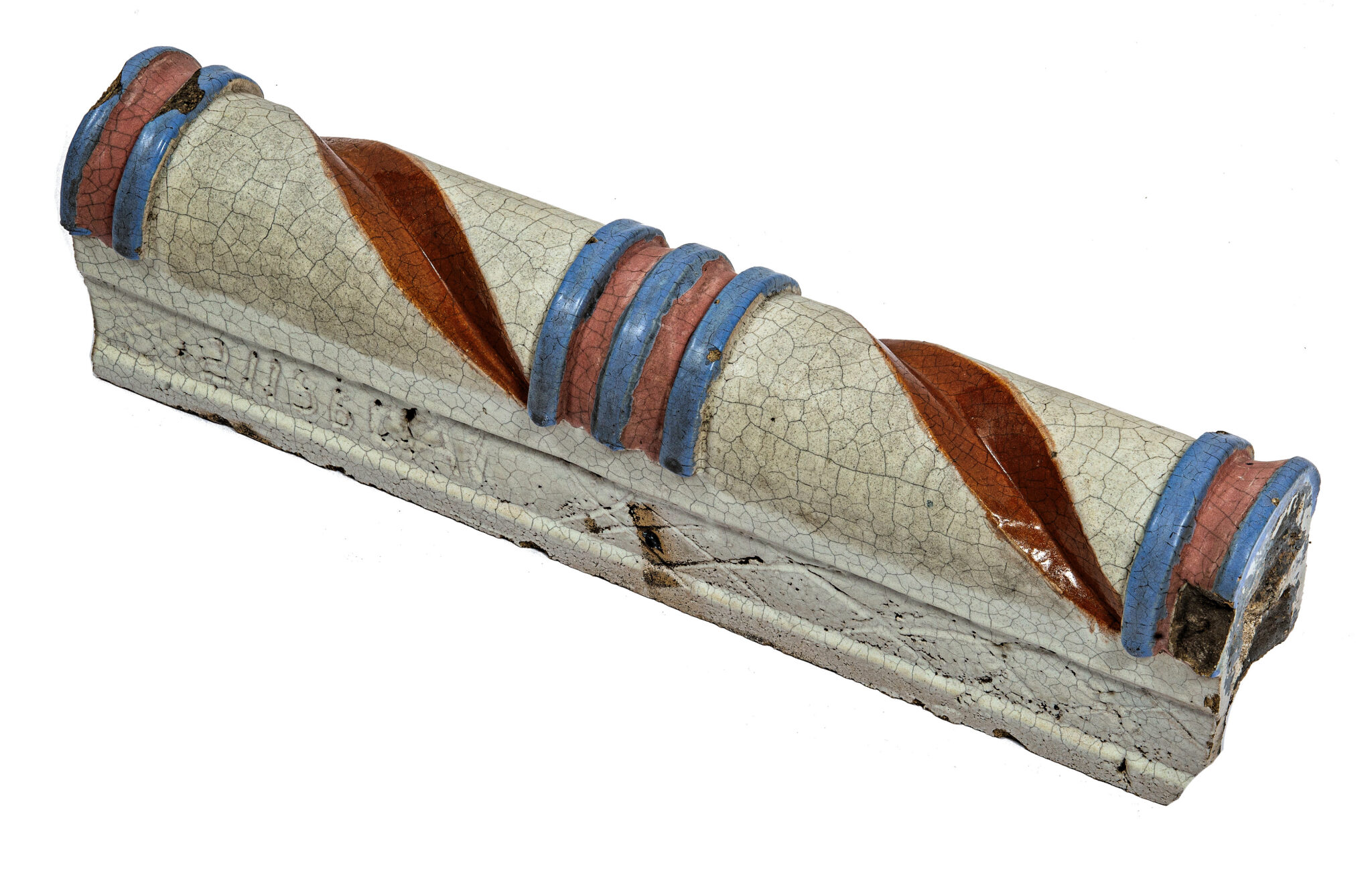 the semi-circular column segment was removed from the cornice during renovations performed on the building during the 1970’s. the warehouse was designated a historic building in 1979 and a chicago landmark in 1999. the terra cotta segment was executed by the northwestern terra cotta company, chicago, il.