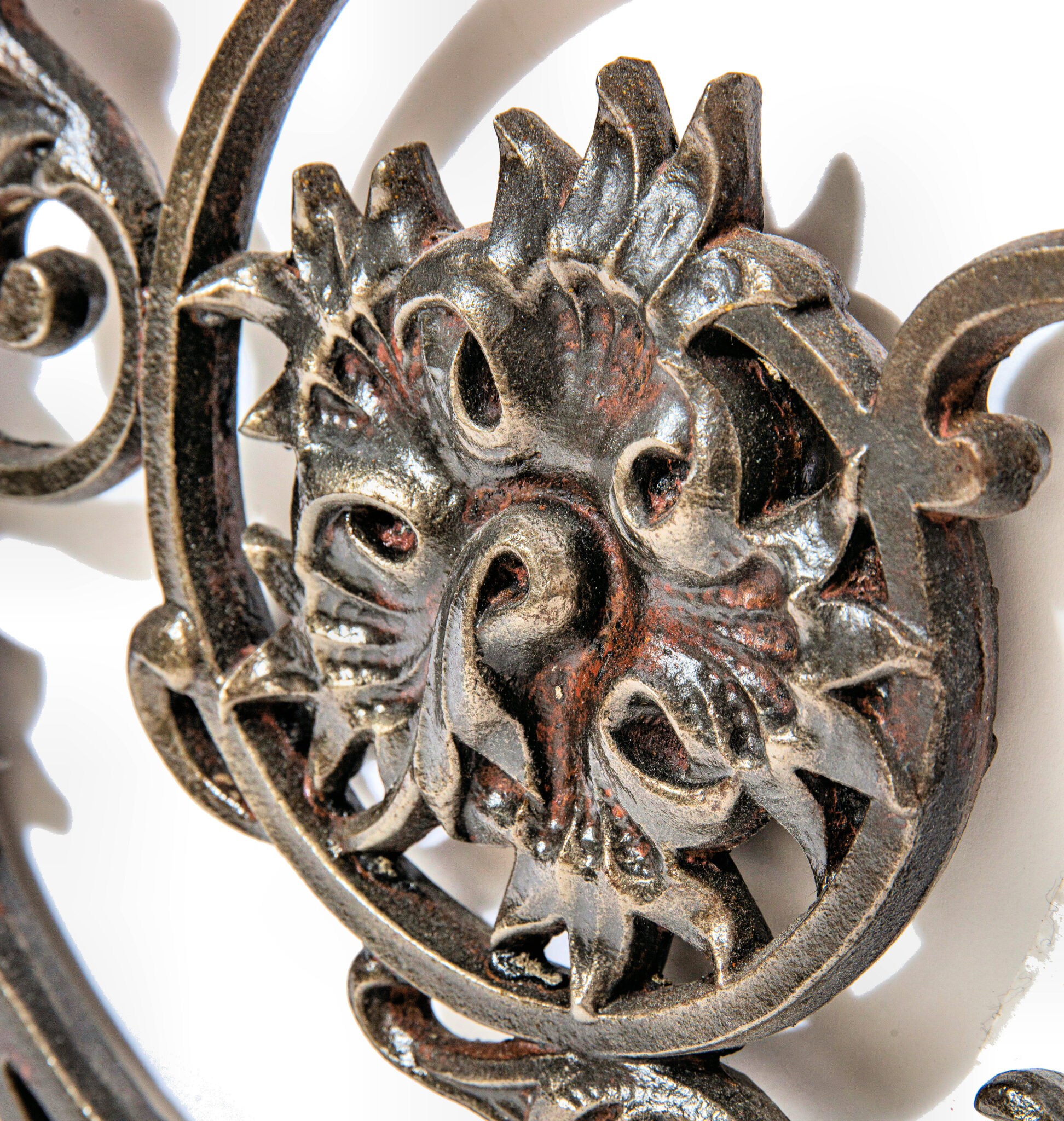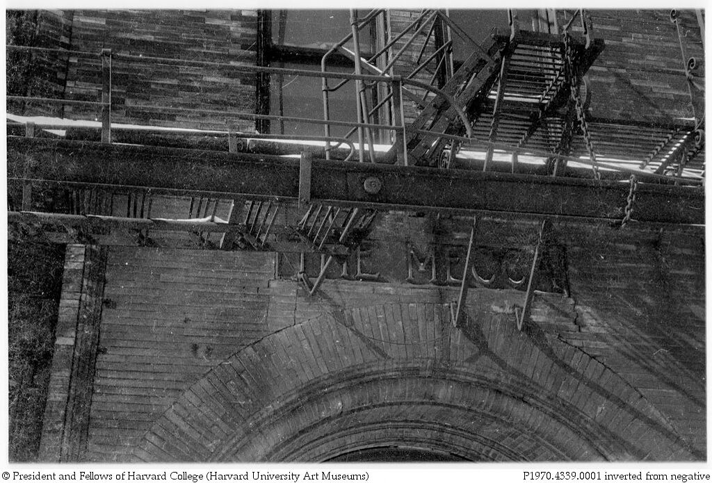 the exact fabricator or foundry is not known. the building’s ironwork was finished with applied black paint – not bower-barff, which is unusual, given the number of chicago buildings of this size or bigger that readily embraced the use of bower-barff or copper-plating for ornamental iron and hardware. given my research on the matter, i suspect it was either a cost-cutting measure, or the foundry didn’t have the skill and/or equipment to finish their iron using bower-barff – at least at the time the iron was executed for the mecca.