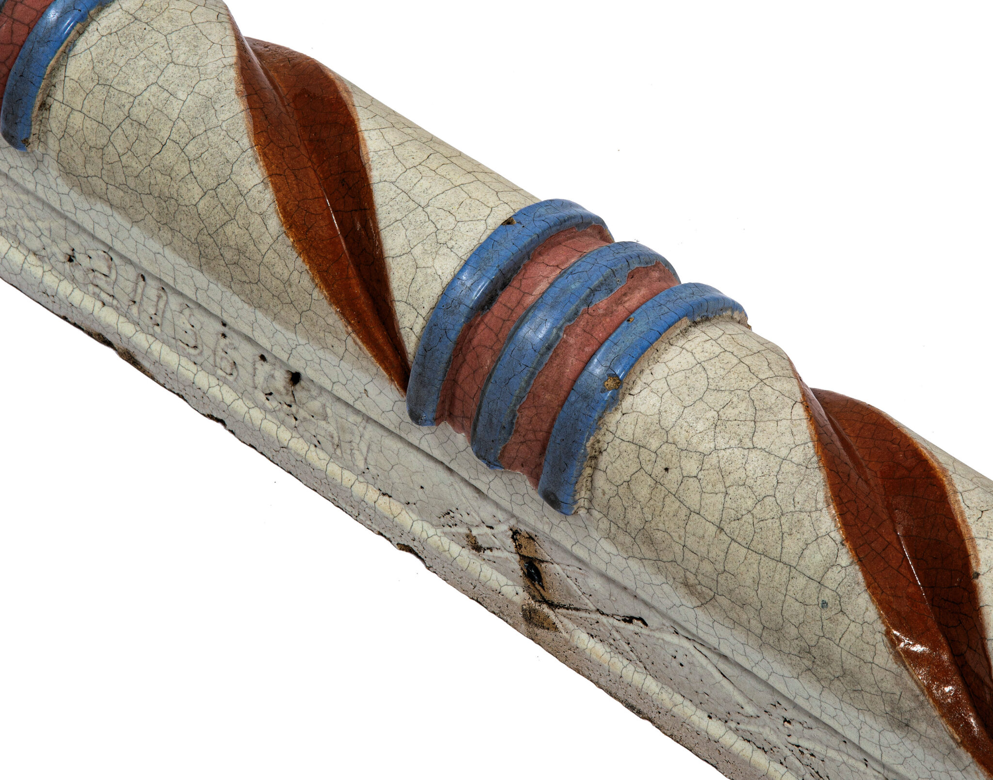 the semi-circular column segment was removed from the cornice during renovations performed on the building during the 1970’s. the warehouse was designated a historic building in 1979 and a chicago landmark in 1999. the terra cotta segment was executed by the northwestern terra cotta company, chicago, il.