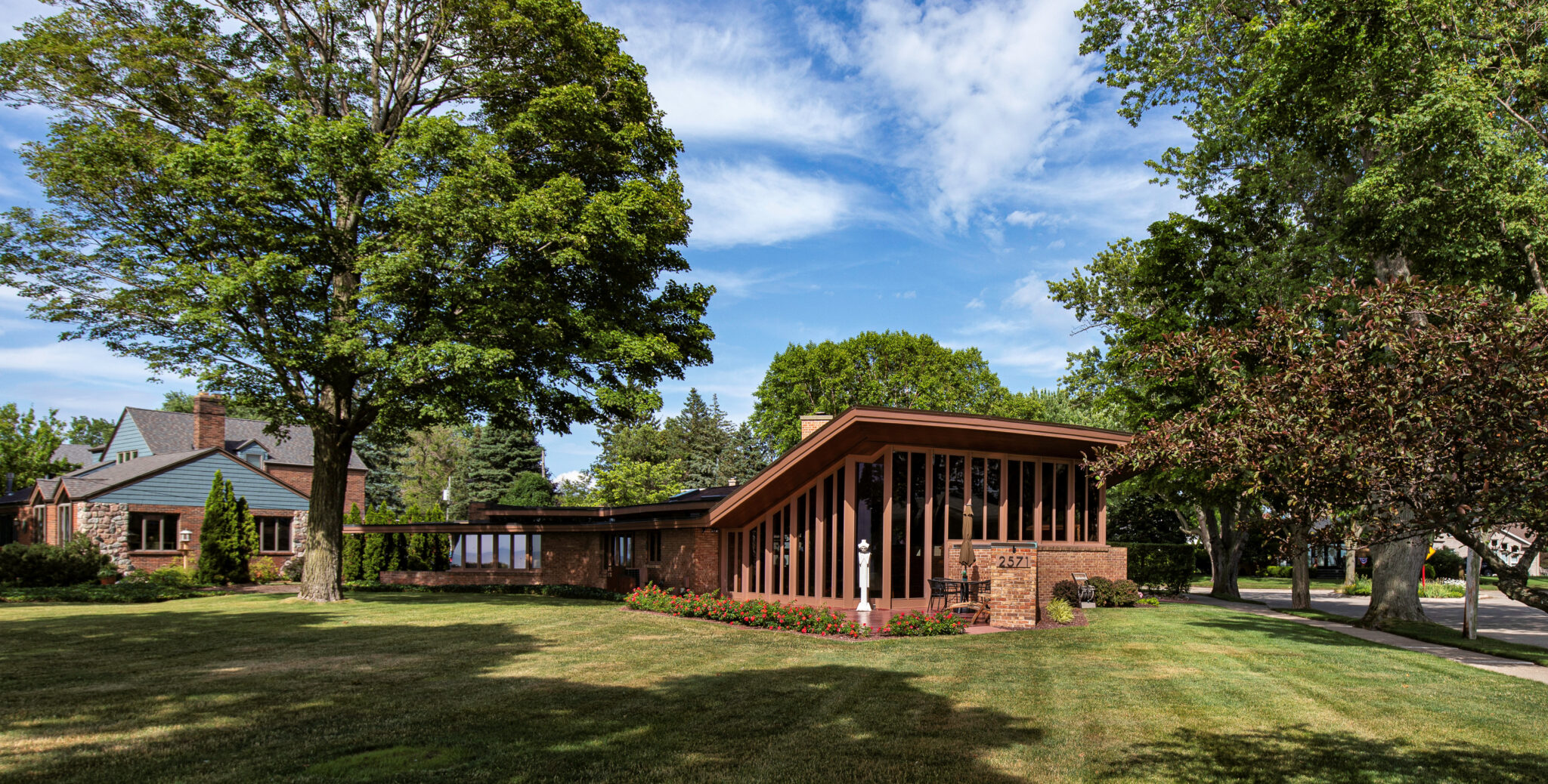 exterior images of frank lloyd wright’s doctor ina m. harper house (1950-51), located at 2571 old lake shore drive, st. joesph, mi.