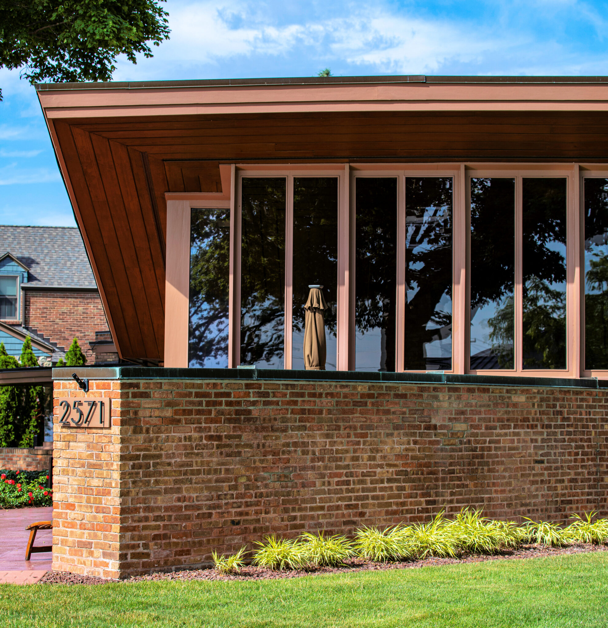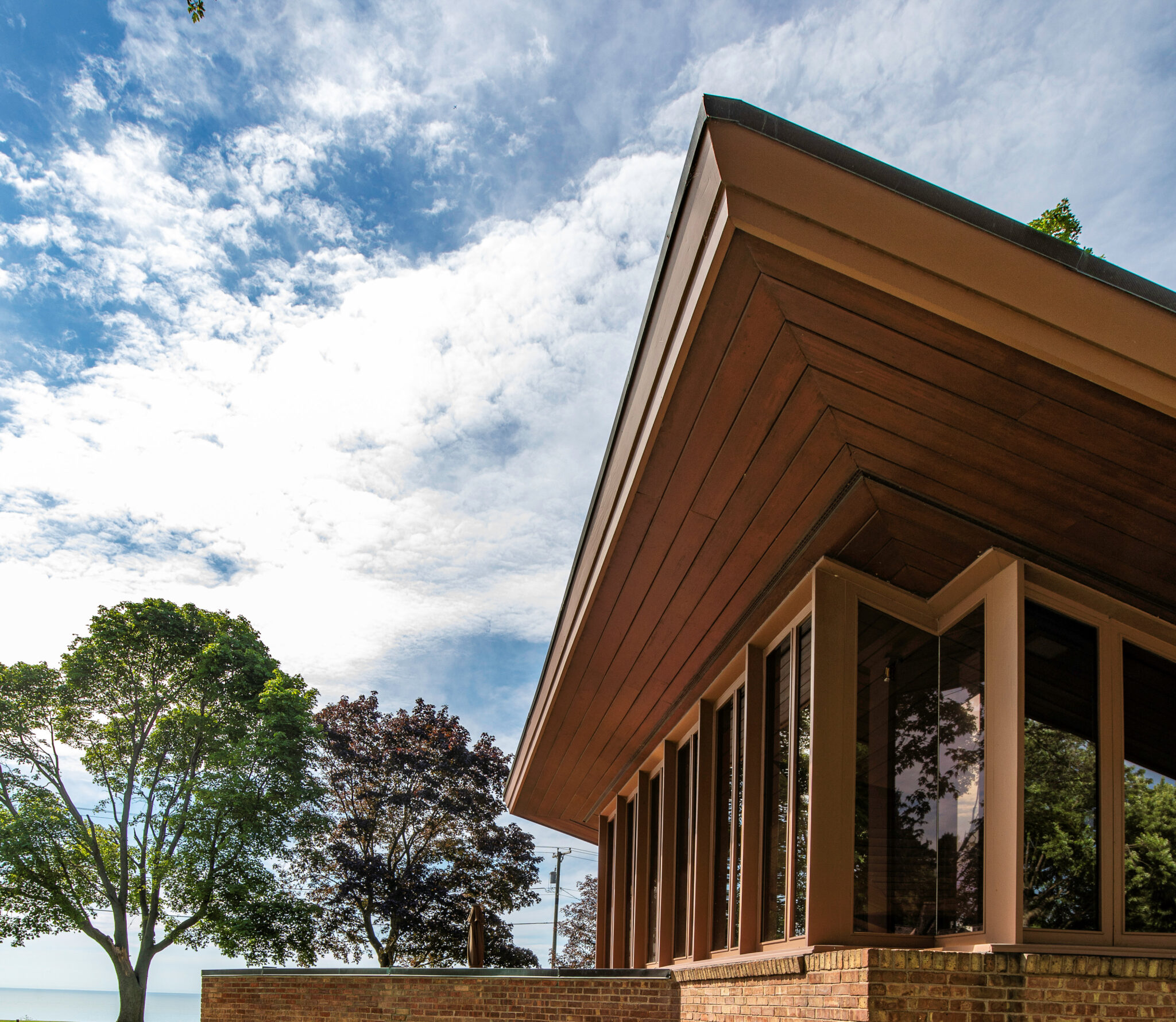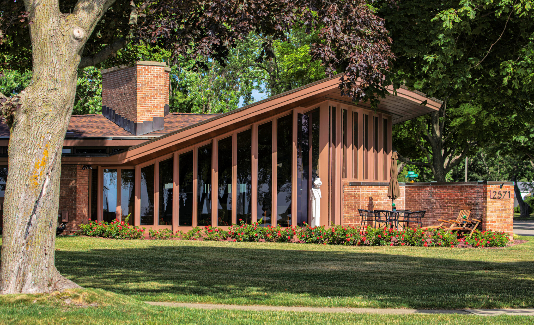 exterior images of frank lloyd wright’s doctor ina m. harper house (1950-51), located at 2571 old lake shore drive, st. joesph, mi.