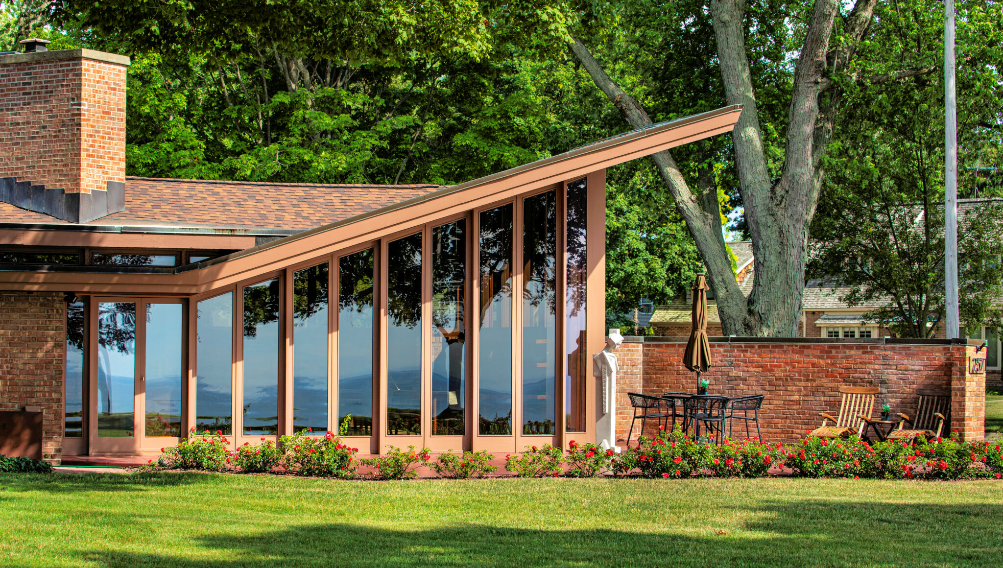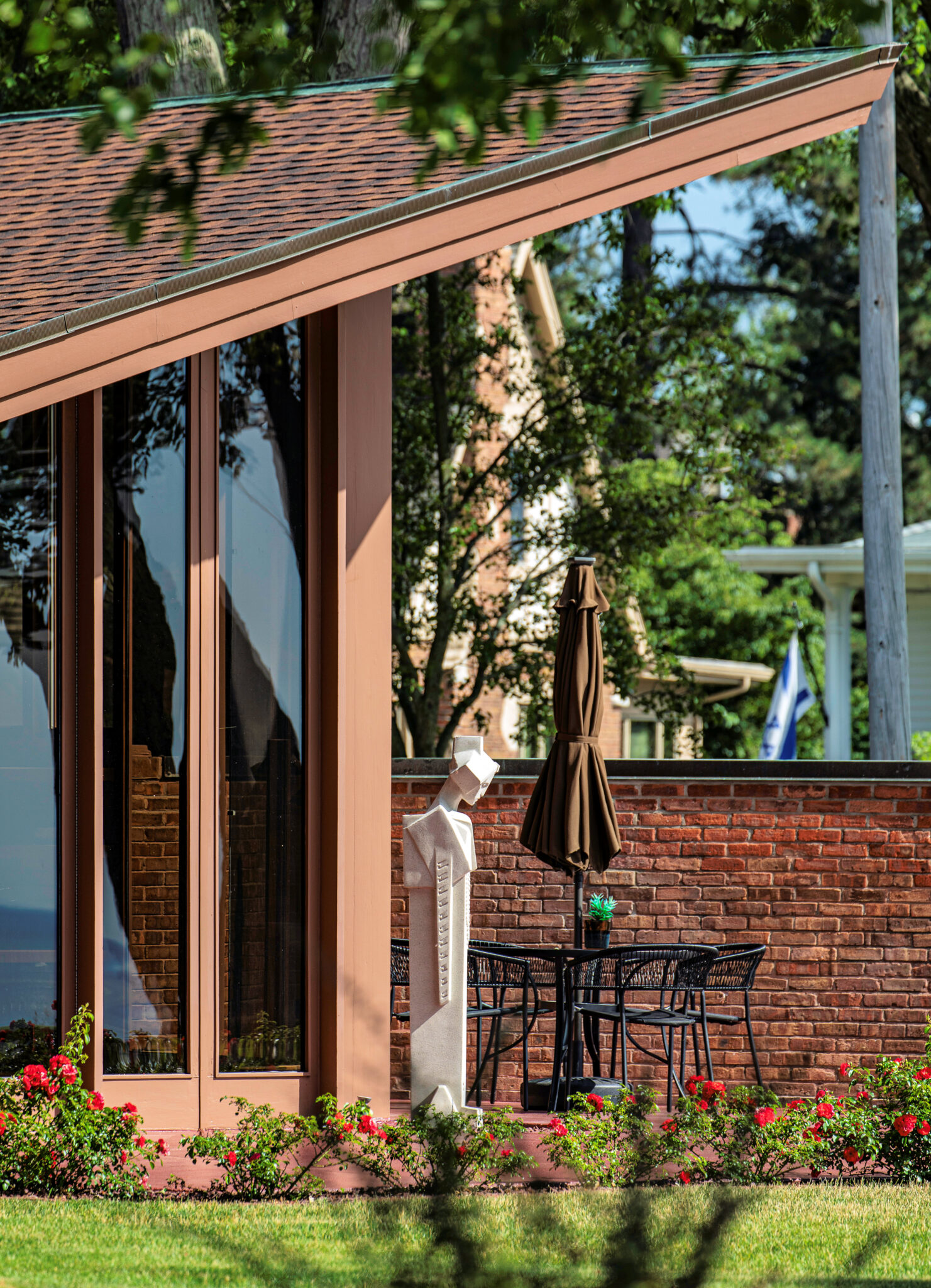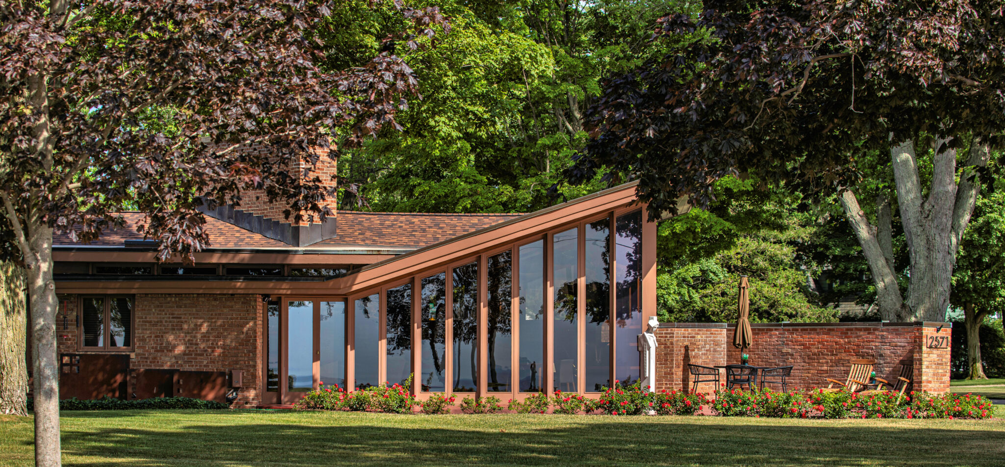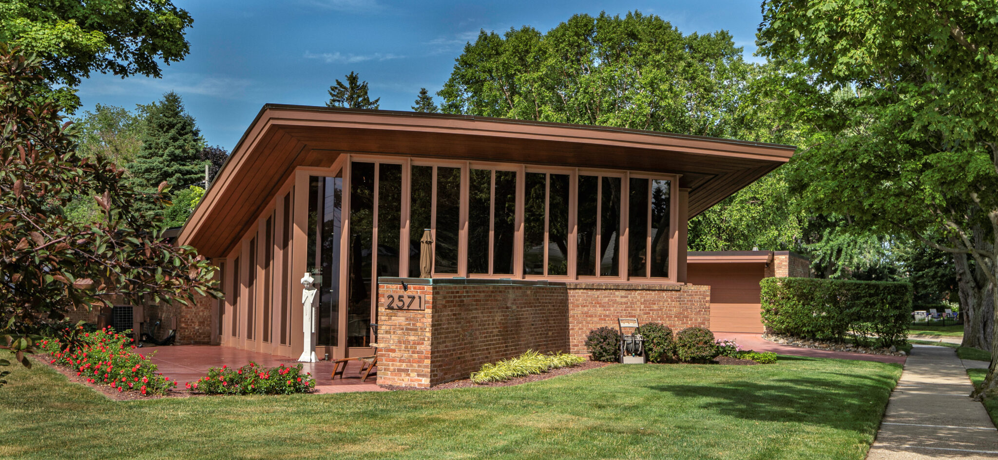 exterior images of frank lloyd wright’s doctor ina m. harper house (1950-51), located at 2571 old lake shore drive, st. joesph, mi.