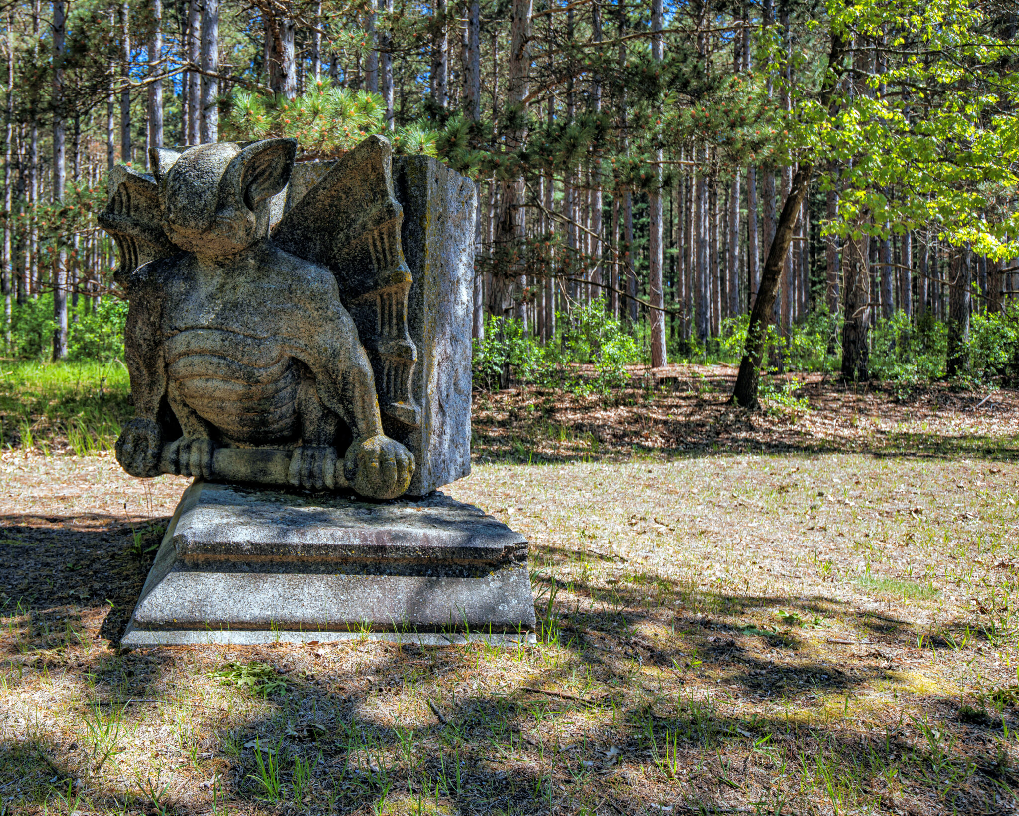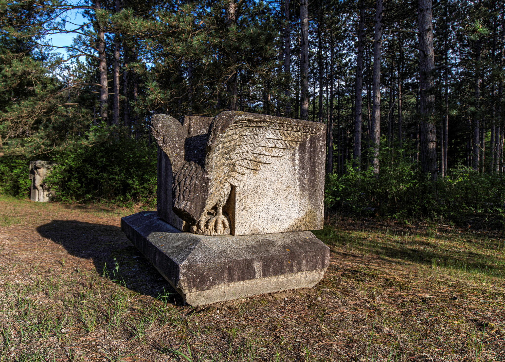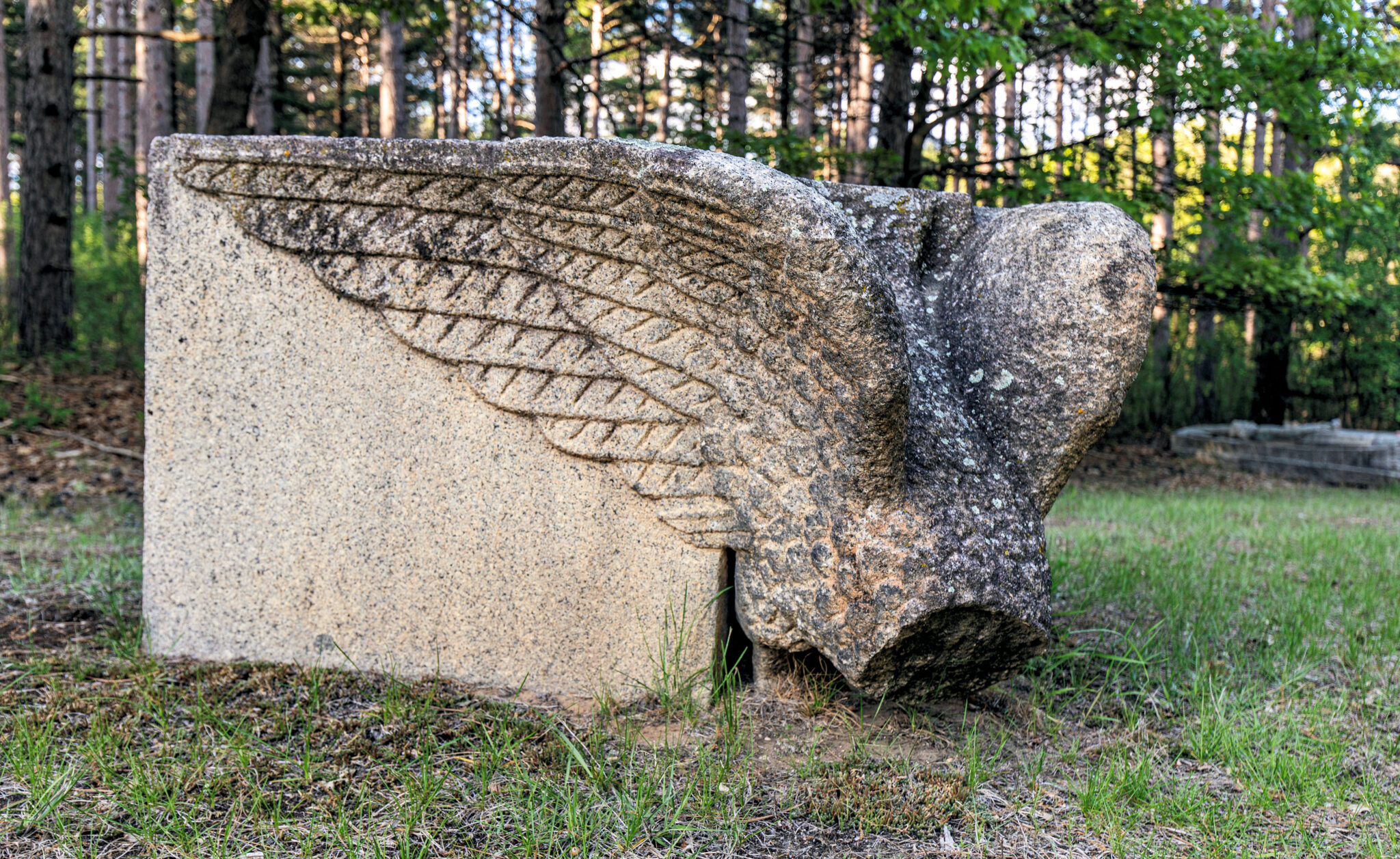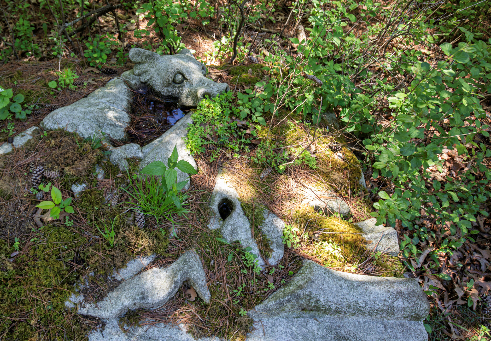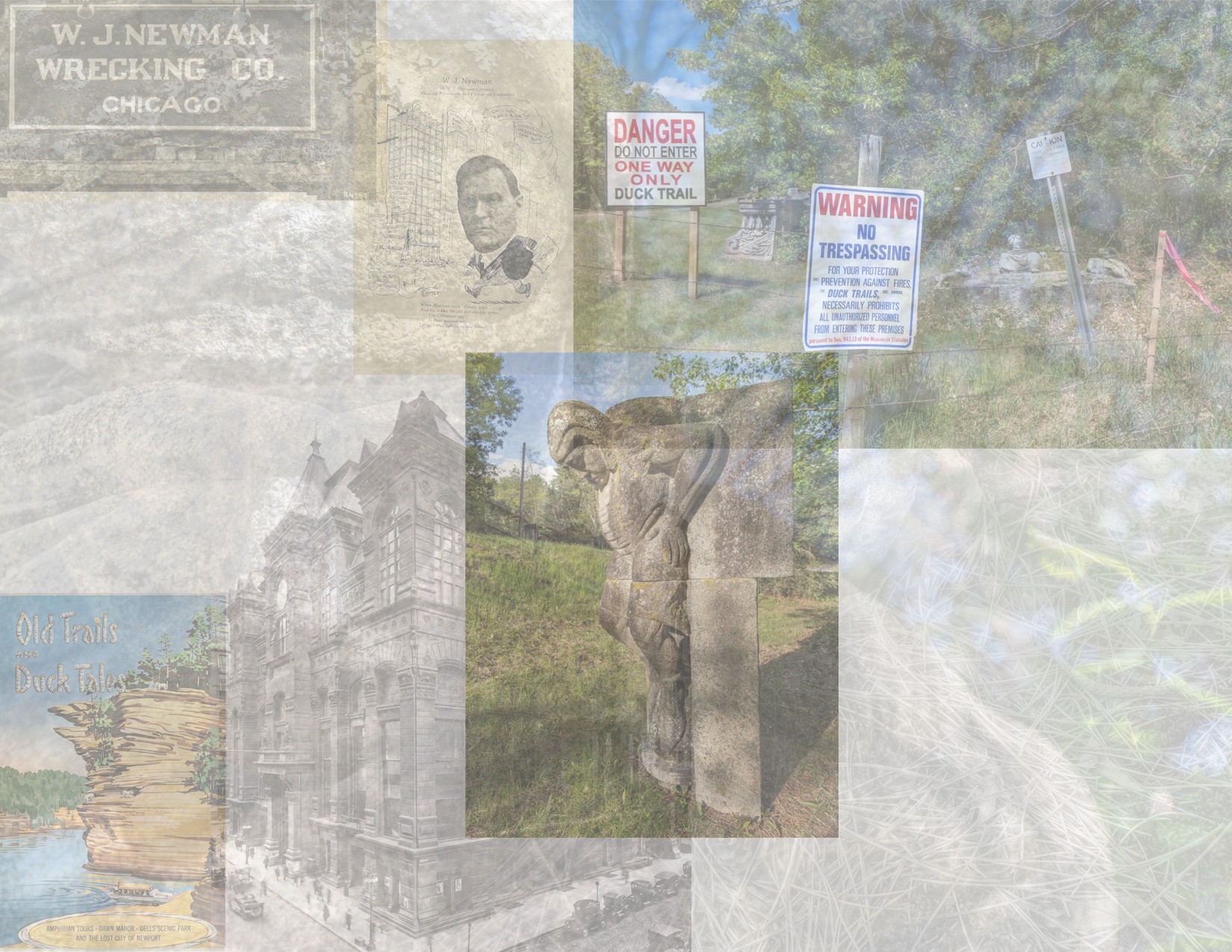 i suspect the balance of salvaged board of trade ornament was placed their by newman, which was located near his cottage along the duck boat trail overlooking lake delton.