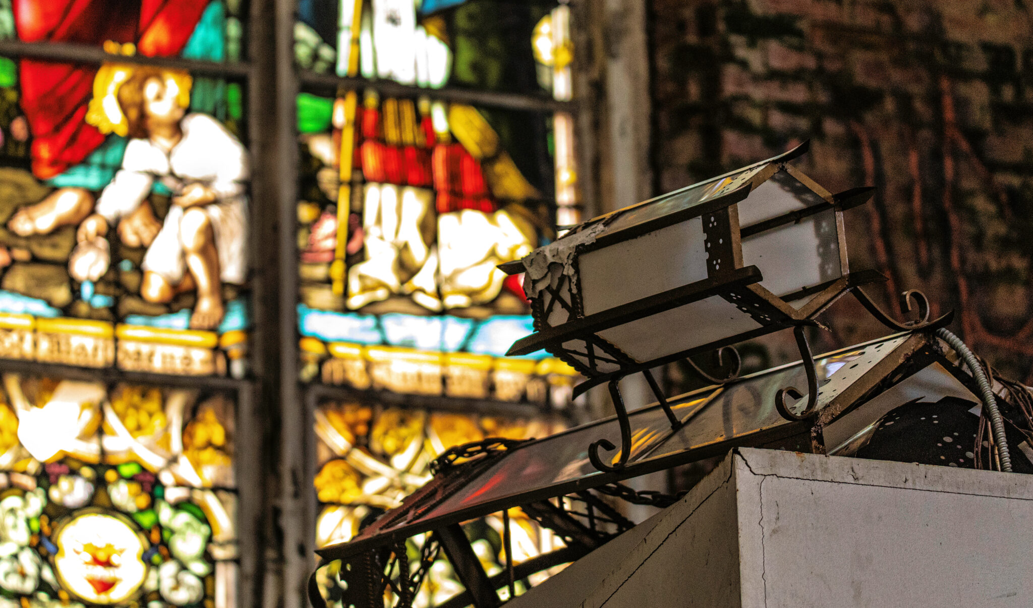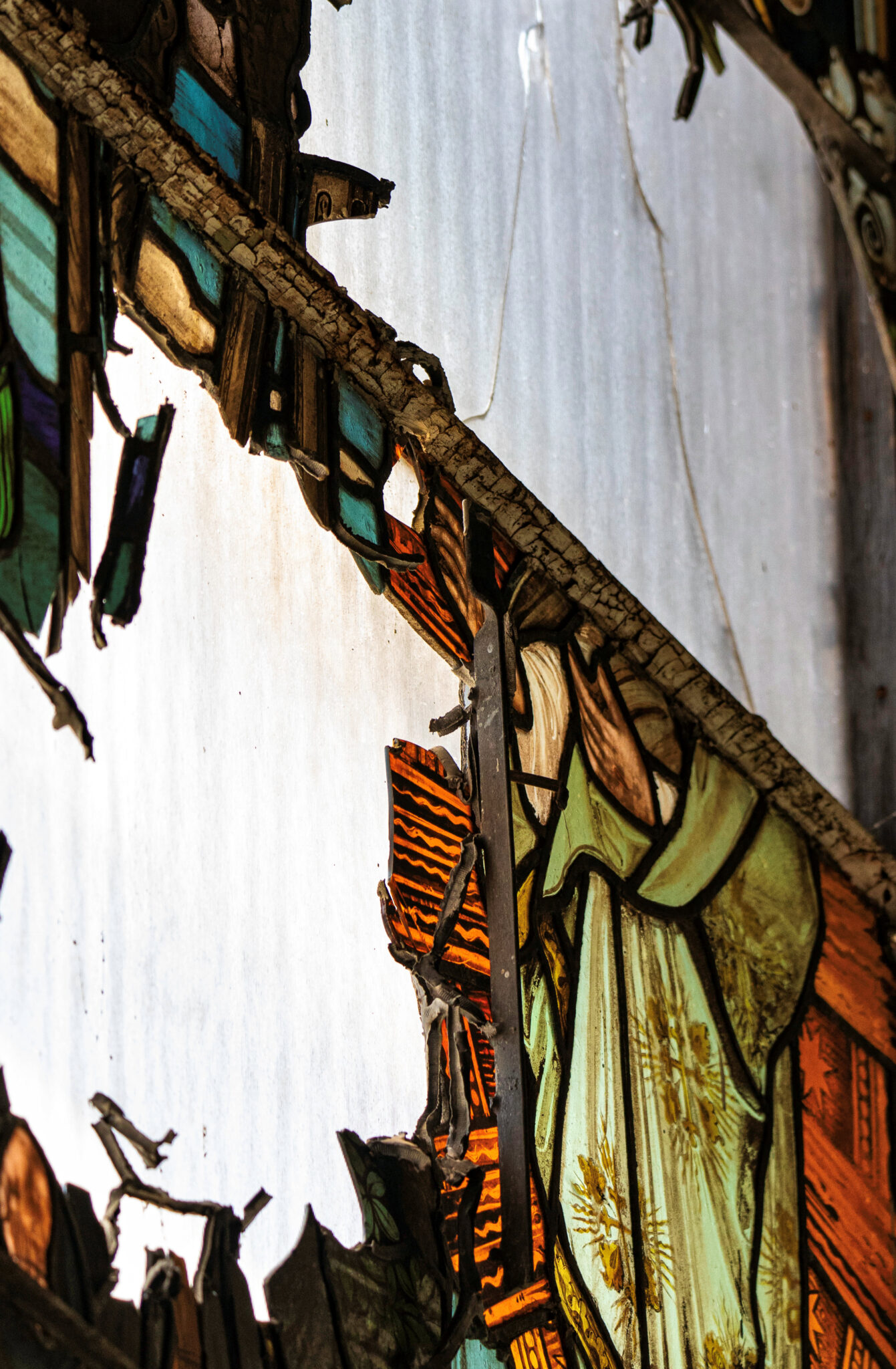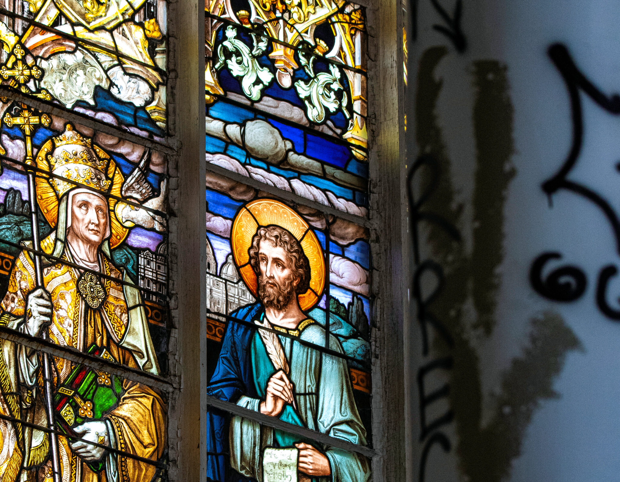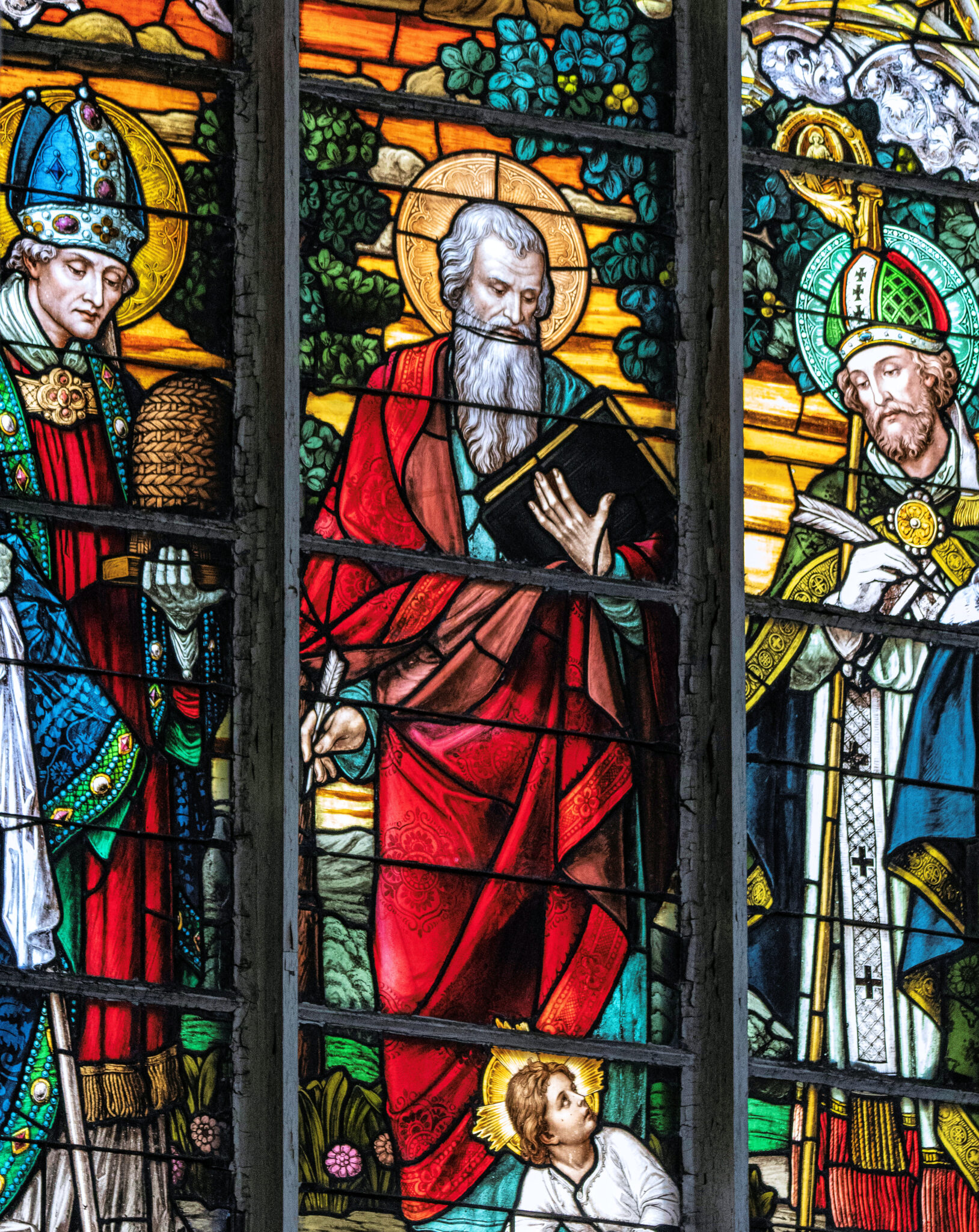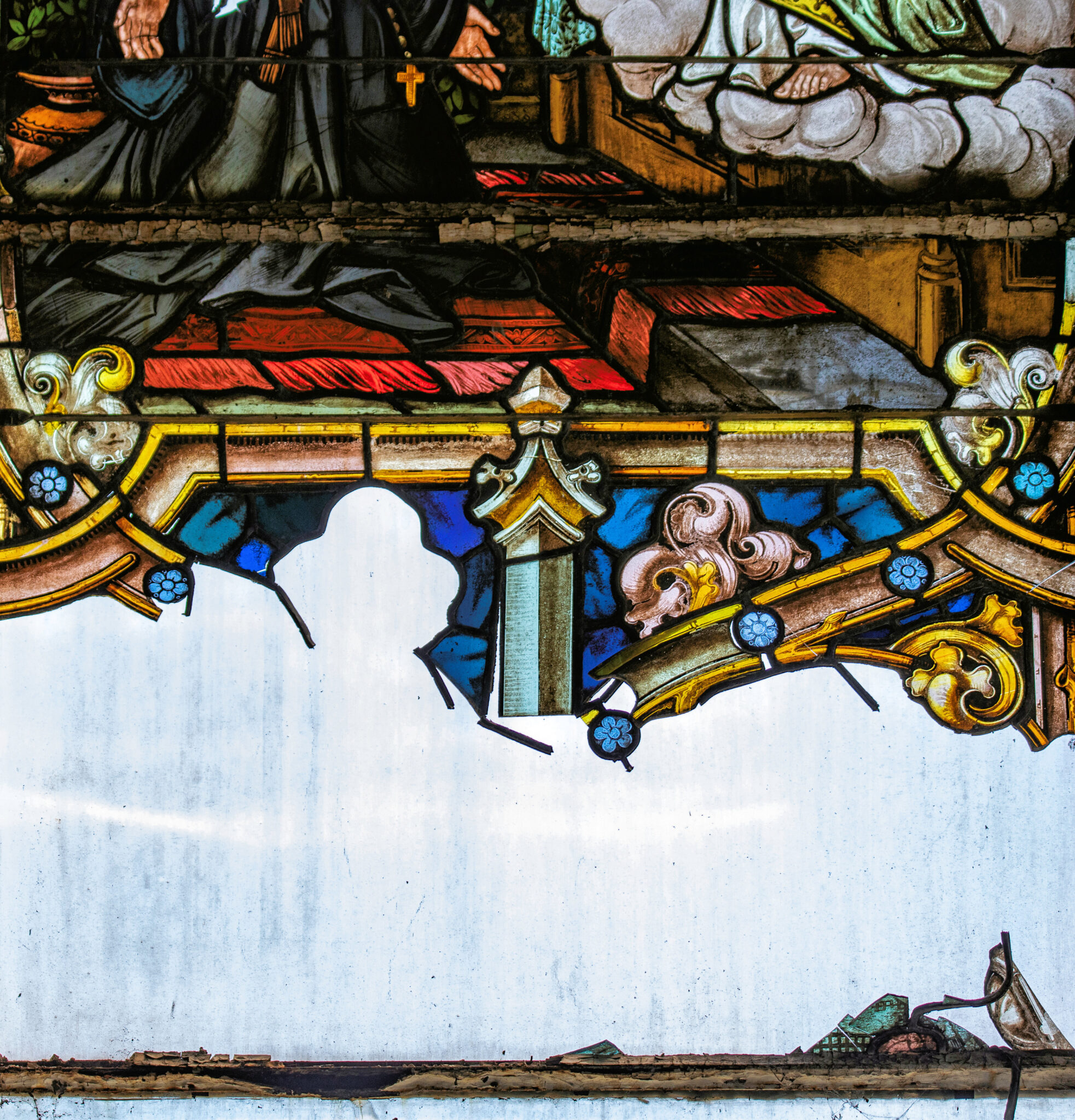 detailed photographic documentation of leaded glass windows within henry j. schlack’s endangered gothic style st. martin of tours german catholic church (1895), located at 5848 south princeton avenue, chicago, il.