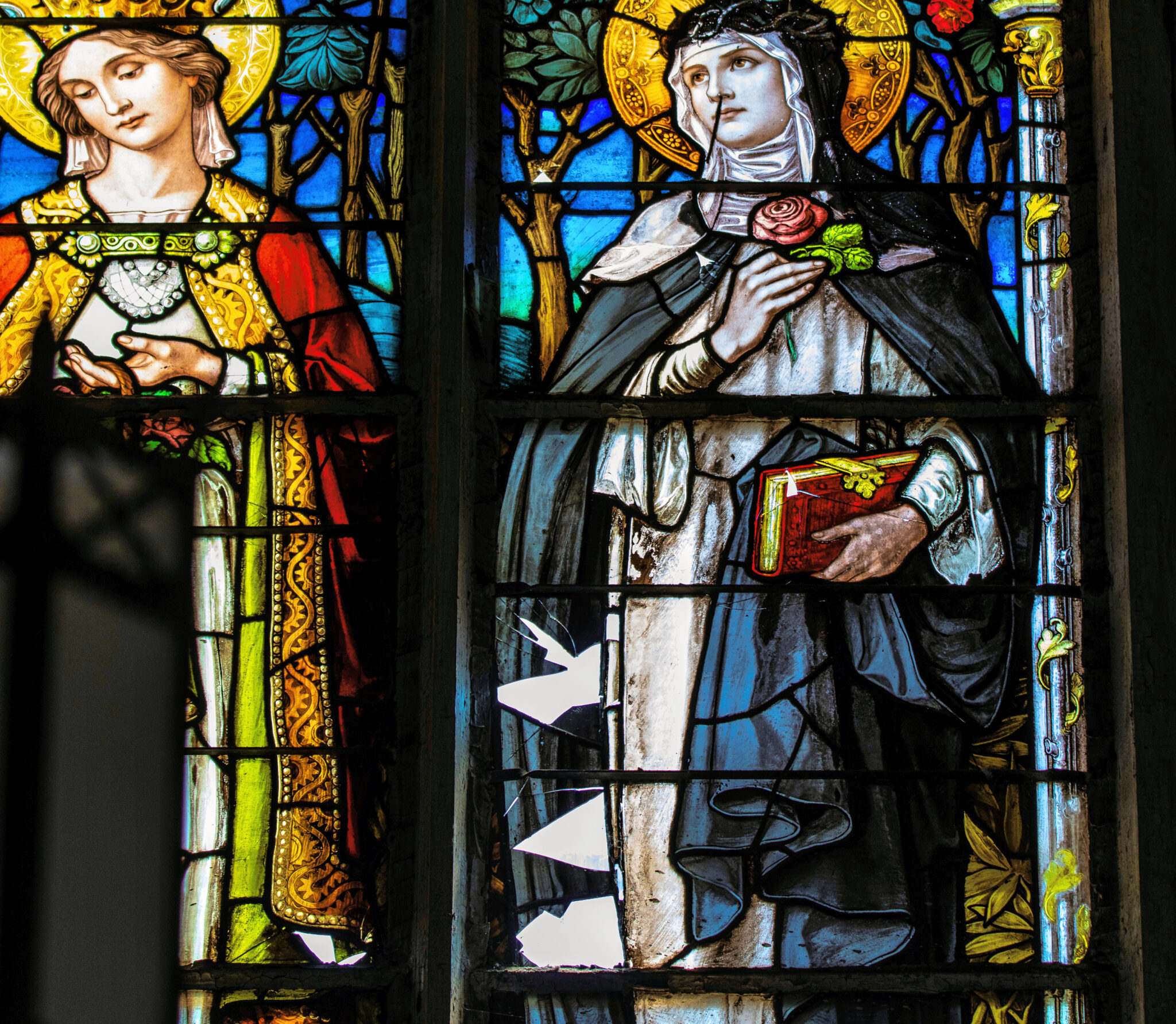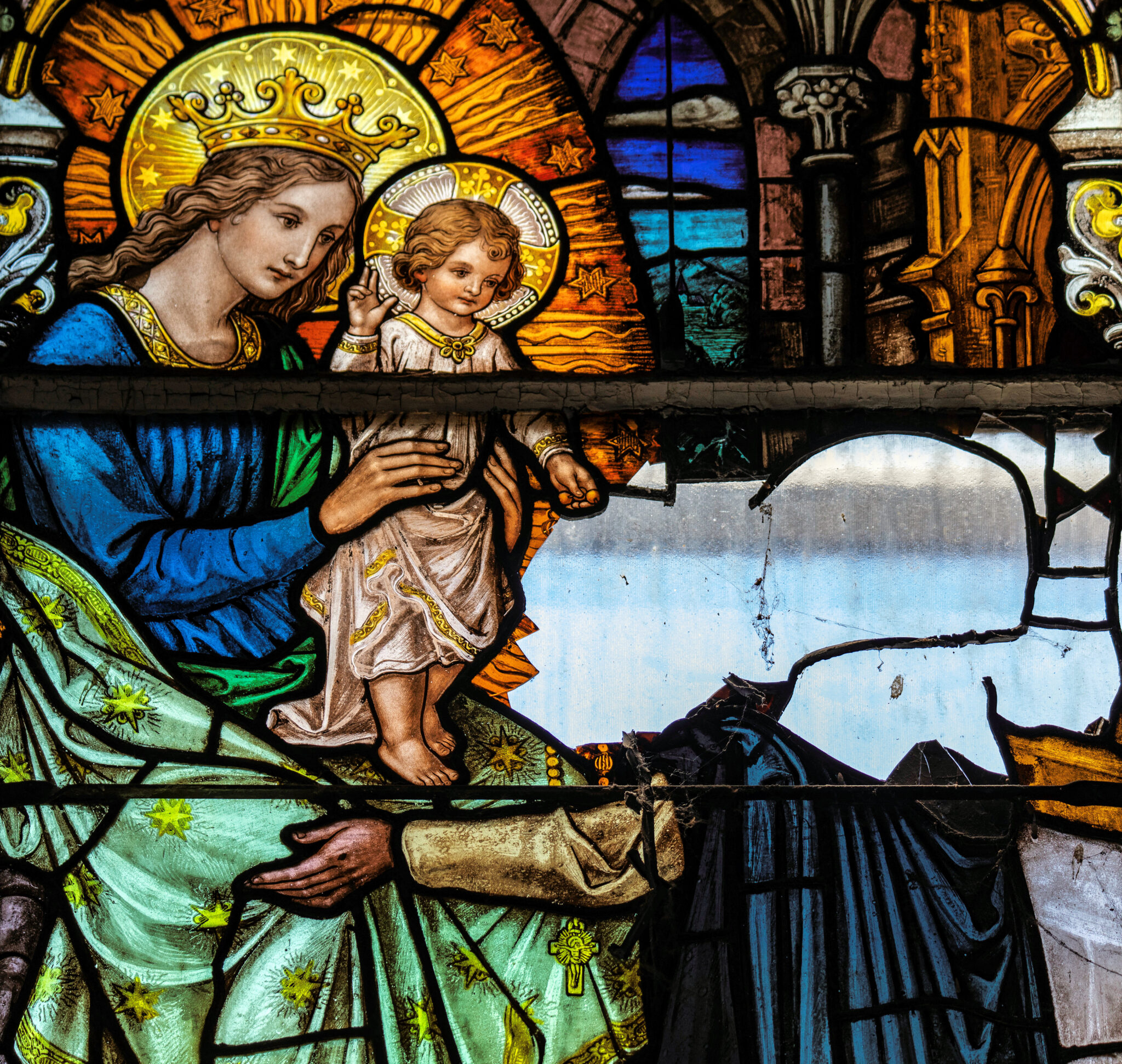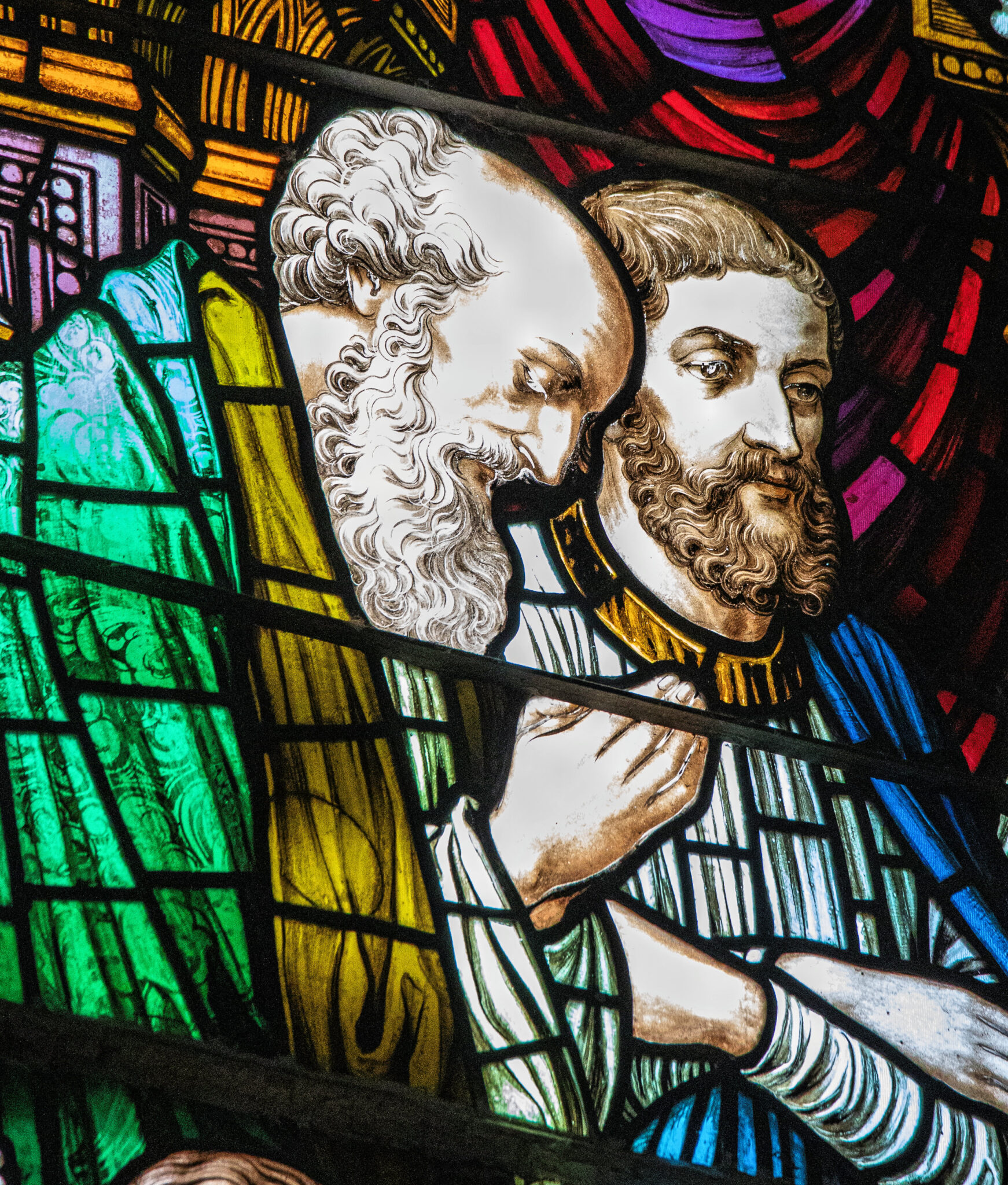 zettler studios eventually perfected what became known as the “munich style,” which was a method where religious scenes were painted on larger sheets of glass and then fused to the glass through firing in intense heat. this process allowed for a blending of colors not attainable by the old “medieval style,” in which any change of color in a scene required a separate piece of colored glass that had to be cut to size and fitted in its own leaded framework.