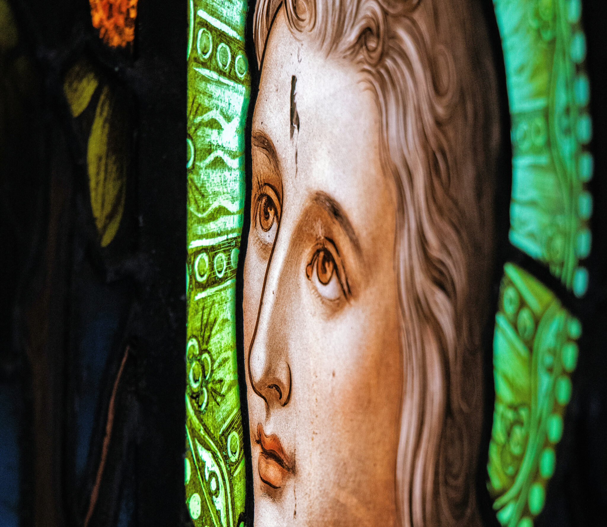 munich style art glass windows contained leaded seams that did not interrupt upon the intricate and heavily detailed scenes portrayed. instead, they were incorporated into the design that made them substantially less noticeable.