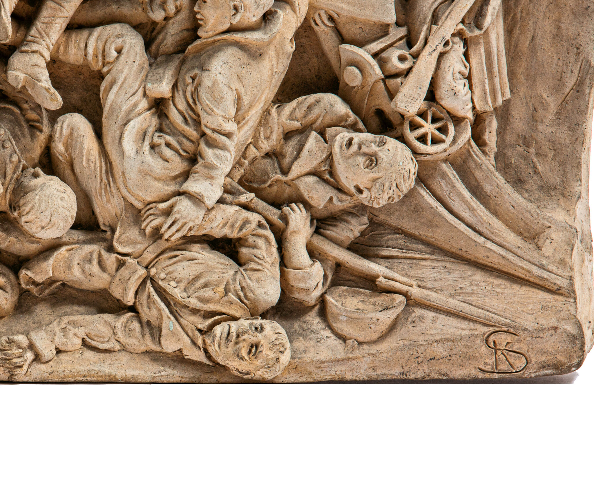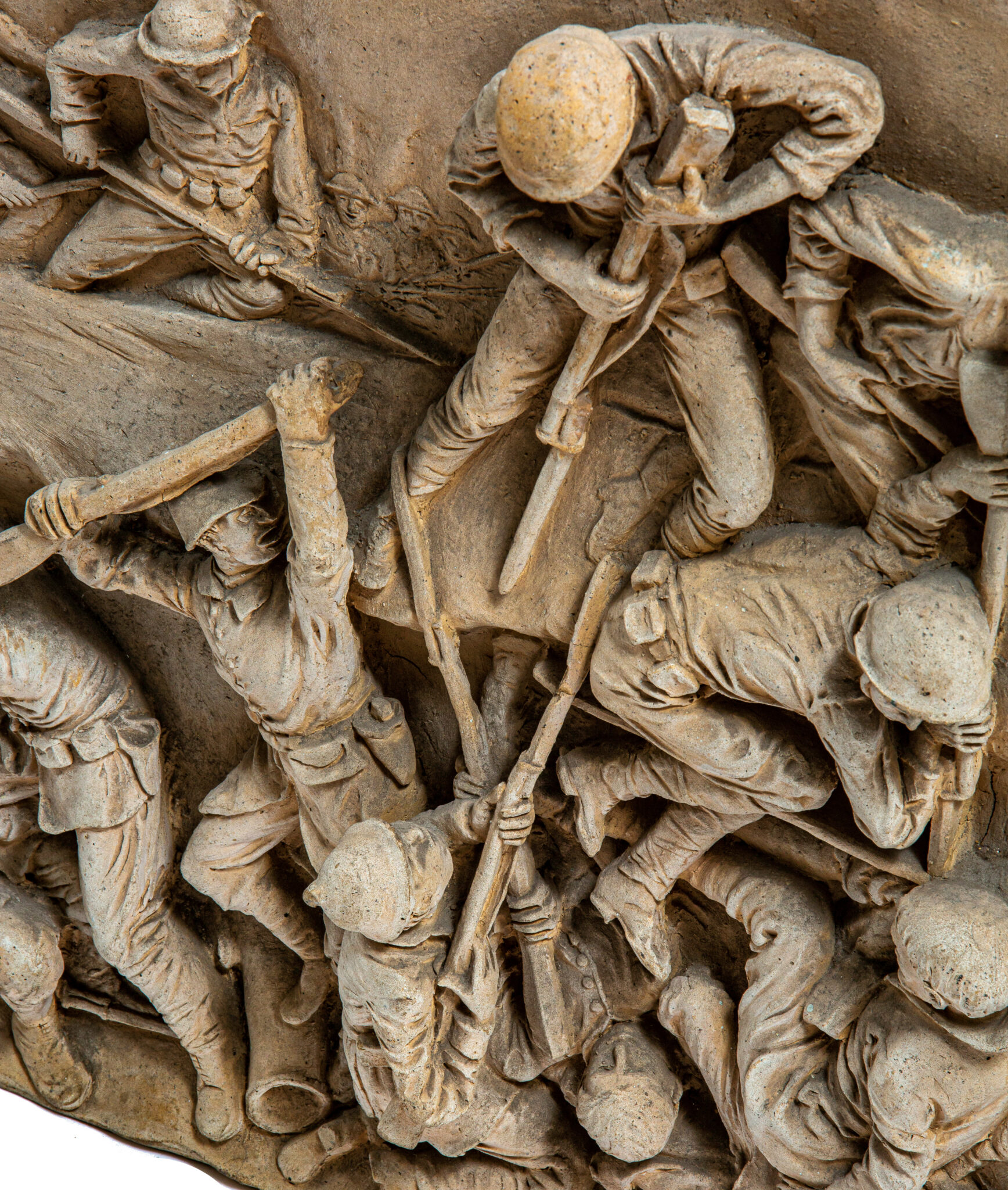 exceptional signed museum quality deep relief clay model and painted easel for school commission by sculptor kristian schneider: